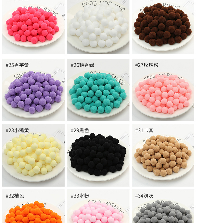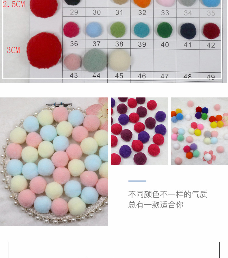 涤纶高弹毛绒球现货色卡,大量现货库存,厂家直销