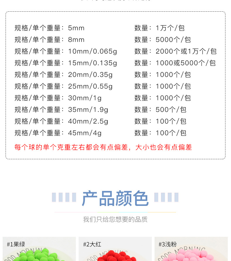 以下A款是丙纶毛绒球色卡