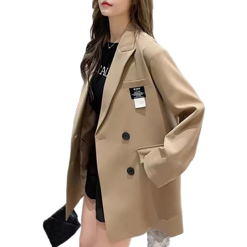 Весенне-осенний дизайн этикетки. Повседневный маленький женский пиджак, свободный высококачественный модный женский пиджак цвета хаки.