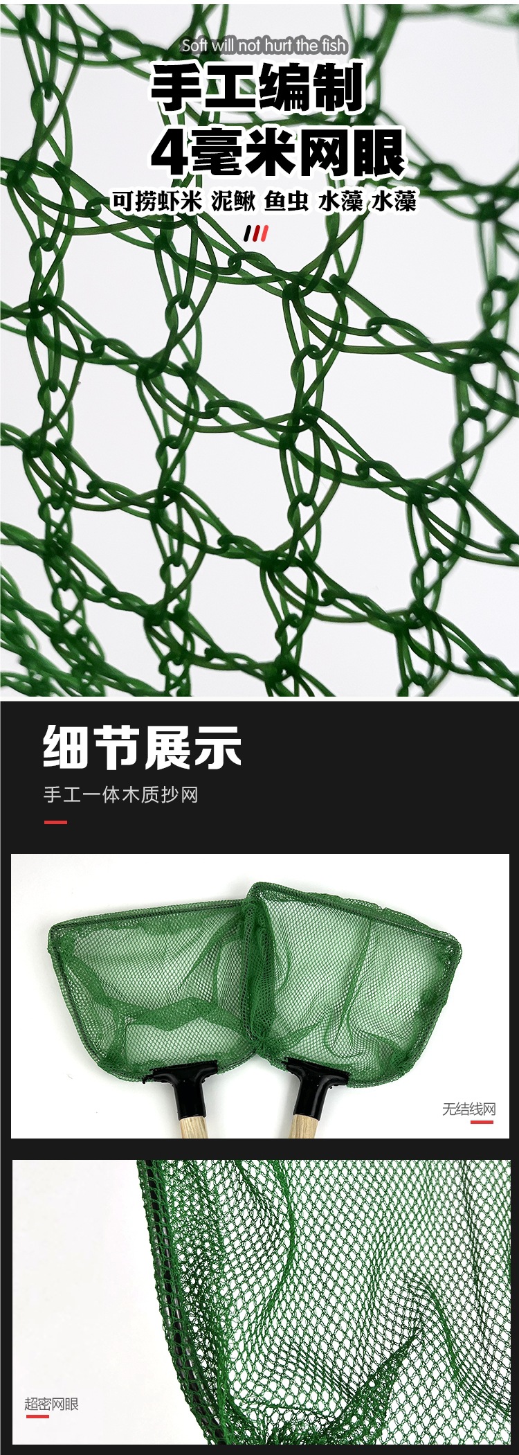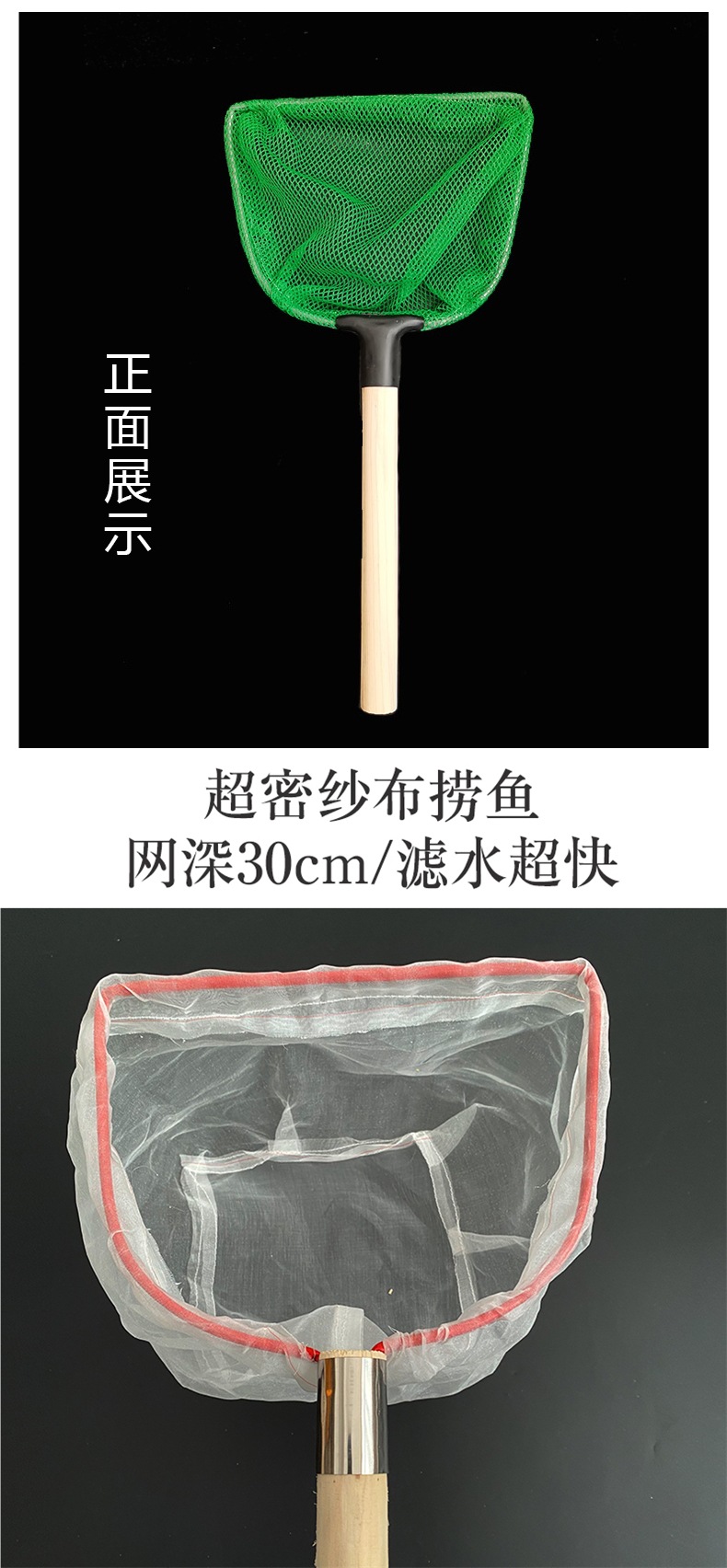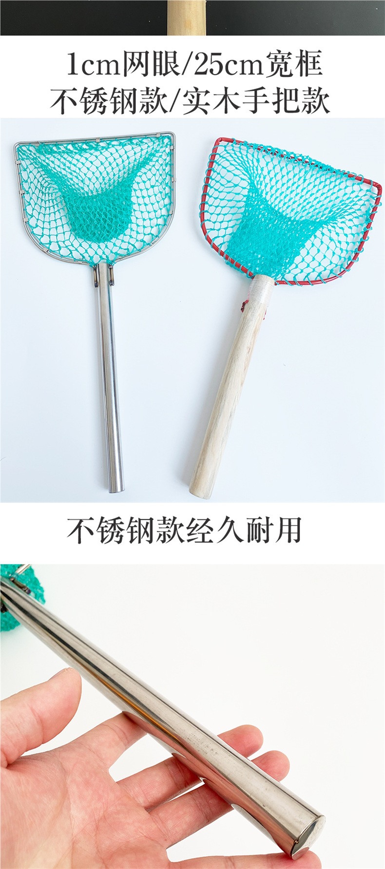 Неглубокая сетка для литья под давлением с деревянной ручкой длиной 30 см.; Ручка из нержавеющей стали длиной 30 см, неглубокая сетка.; Ручка из нержавеющей стали длиной 45 см, неглубокая сетка; Модель с двойной рамой из нержавеющей стали с деревянной ручкой длиной 30 см.; Деревянная ручка 30 см, квадратная, с большим глазком, глубина сетки 15 см.; Деревянная ручка 30 см, круглая рамка, маленькая сетка для глаз, глубина 18 см.; Ручка из нержавеющей стали 30 см, квадратная рамка, маленькое ушко; Ручка из нержавеющей стали 30 см, круглая рамка, маленькое ушко; Ручка из нержавеющей стали 30 см, круглая рамка, большое ушко; Квадратная рамка с деревянной ручкой длиной 50 см и большими глазами (обычно используется для продажи водных продуктов и рыбы); 50см деревянная ручка квадратная рамка маленькое ушко; Ручка из нержавеющей стали длиной 50 см с большими проушинами.; Ручка из нержавеющей стали 50 см, квадратная, с маленьким ушком