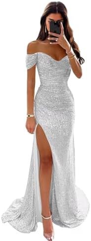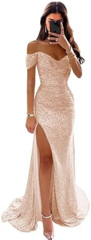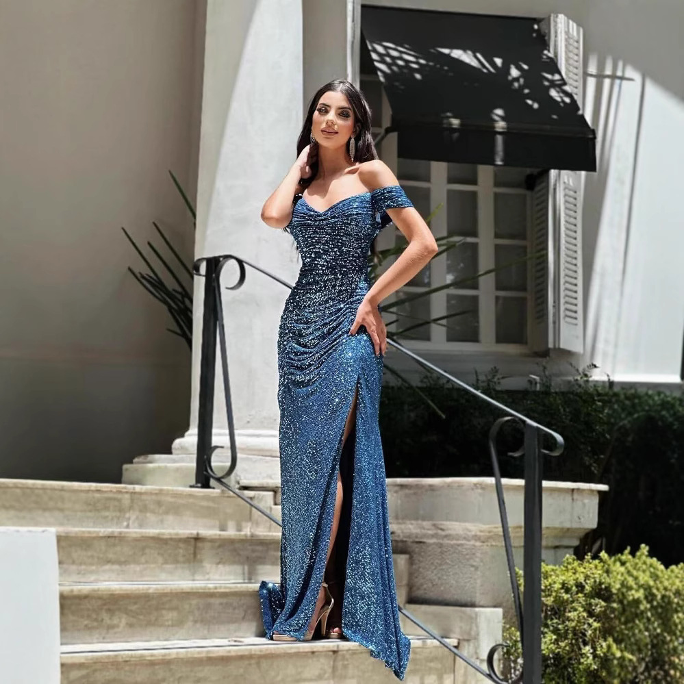 20025 Amazon внешнеторговое трансграничное женское вечернее платье с открытыми плечами и разрезами для выпускного вечера
