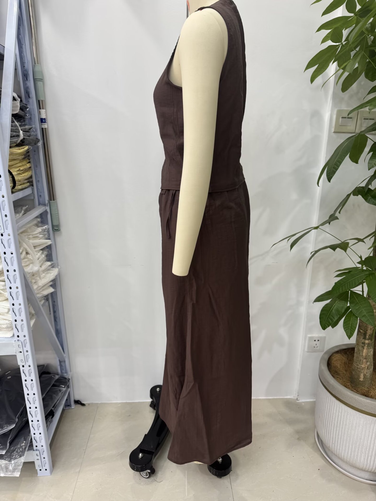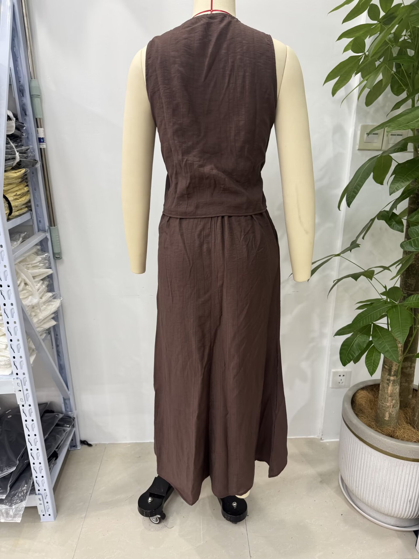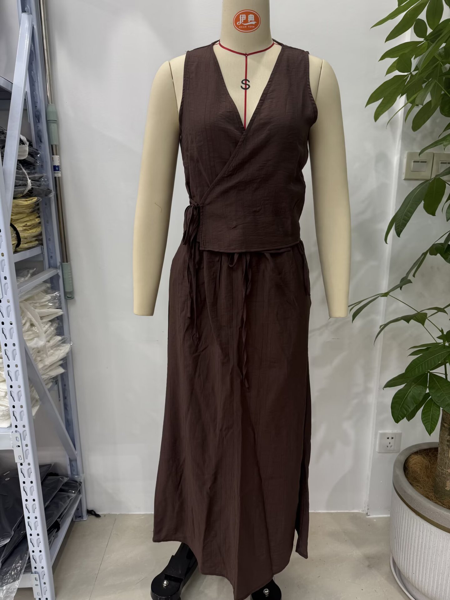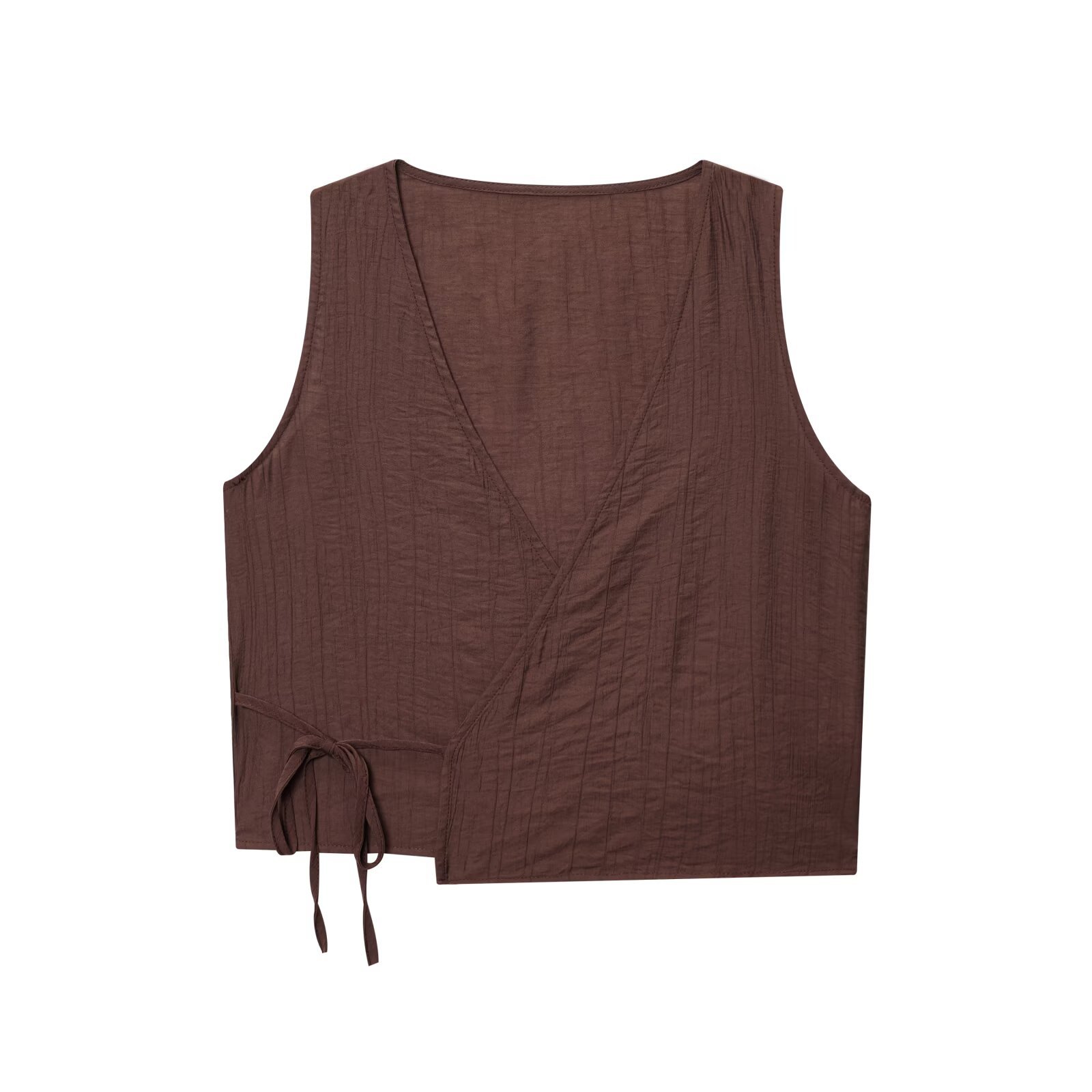 Летний костюм 2025 года в европейском и американском стиле: топ-жилет с V-образным вырезом и эффектом складок + миди-юбка для женщин U1627/28