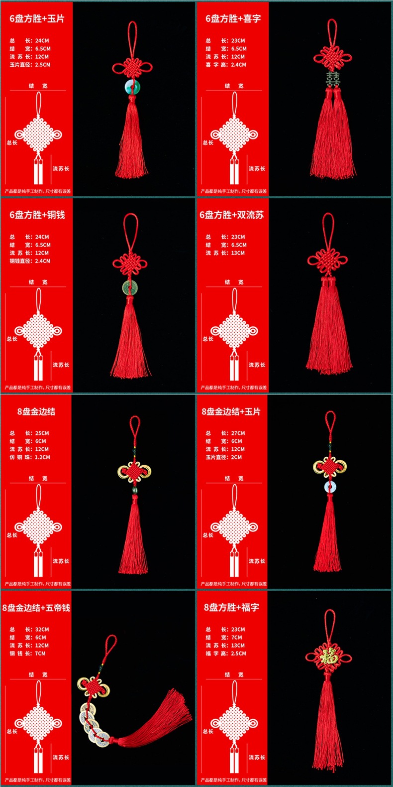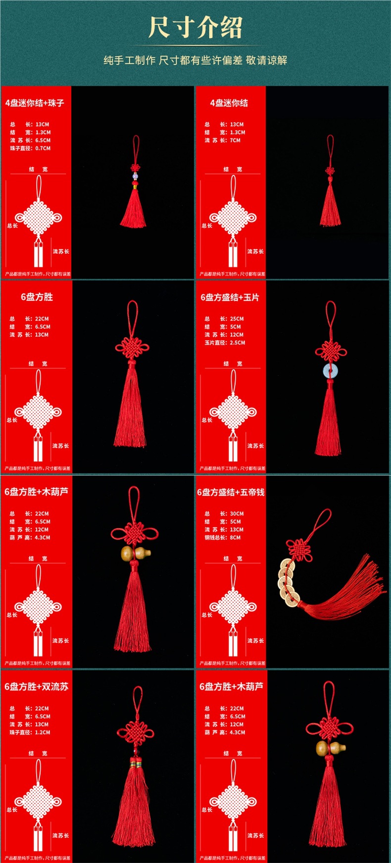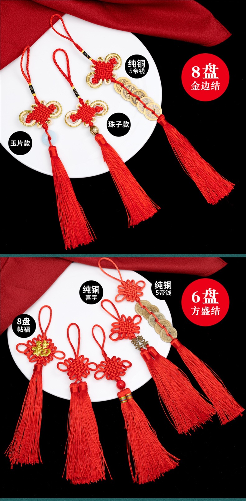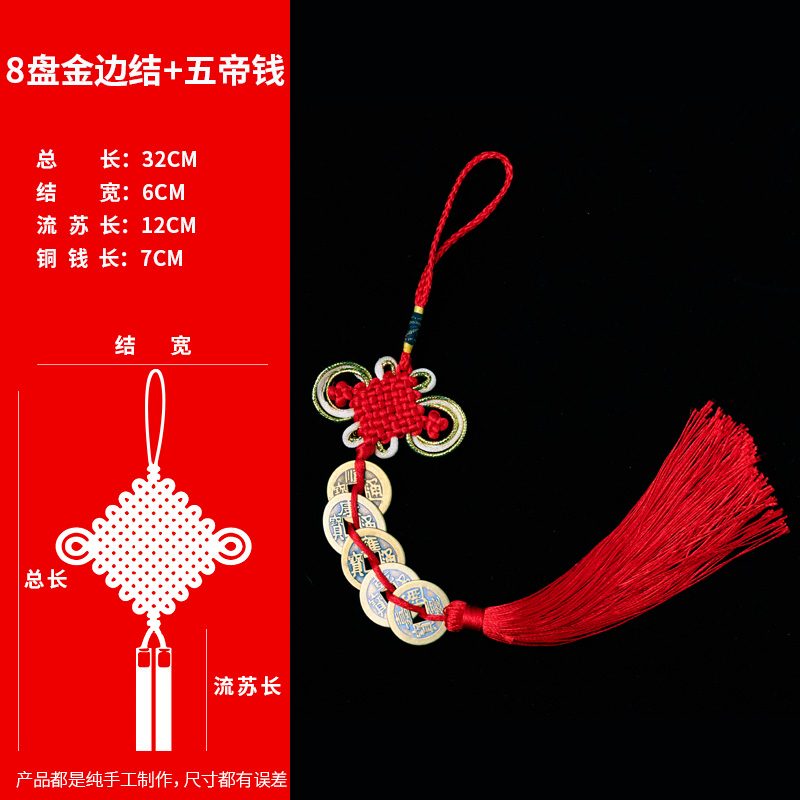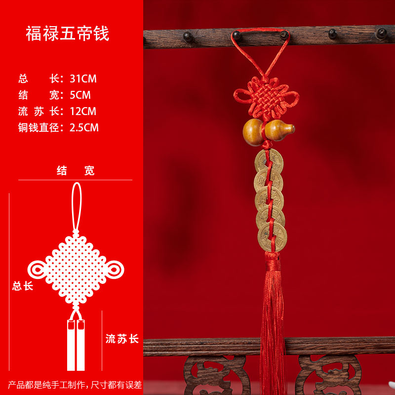 Китайский узелок-кулон, маленький красный декоративный кулон с символом Фу, пряжка мира, пять императоров, медная монета, кисточка, тыква, концентрический узел