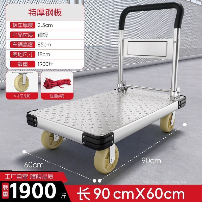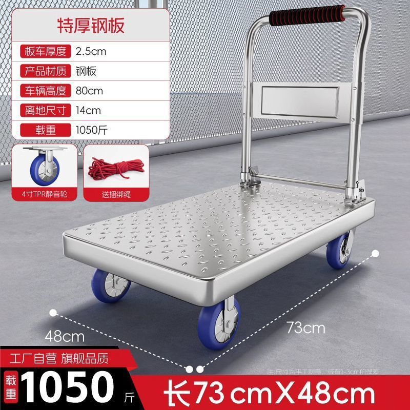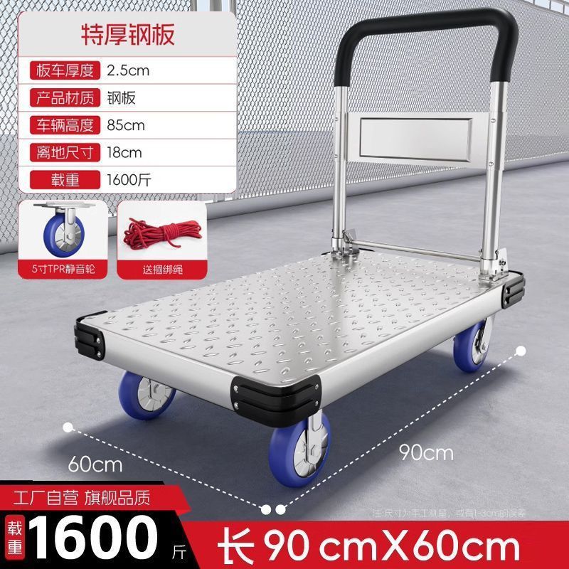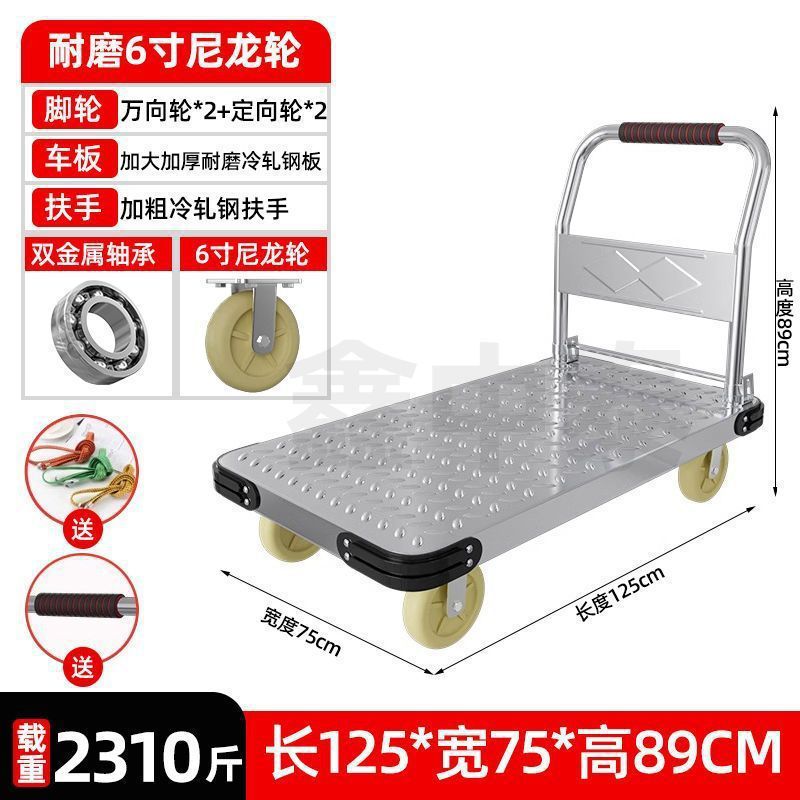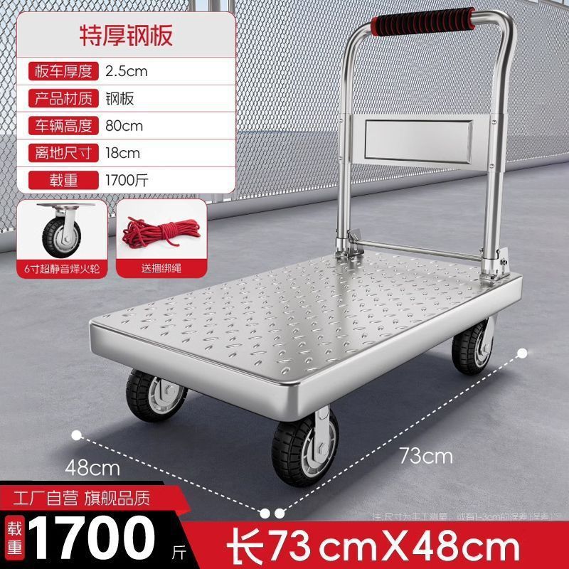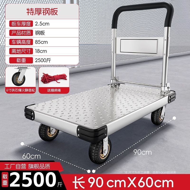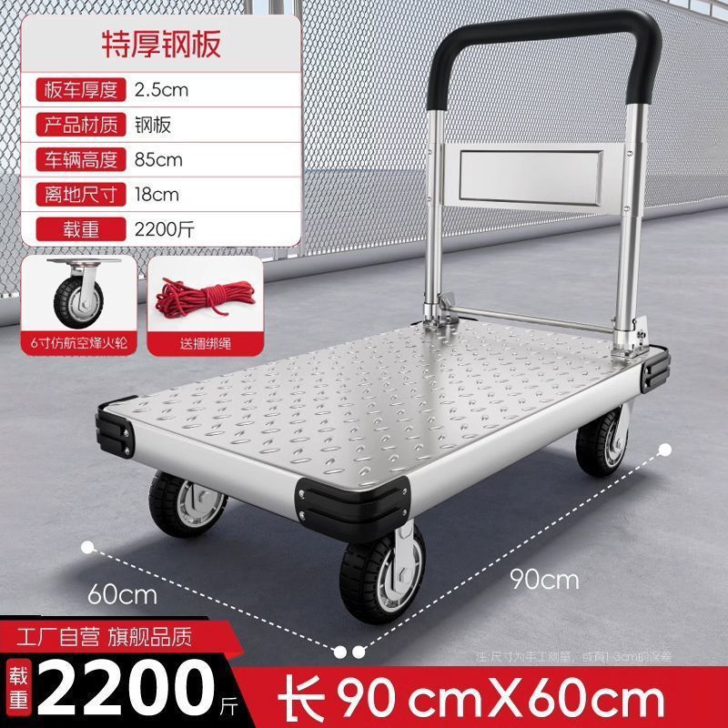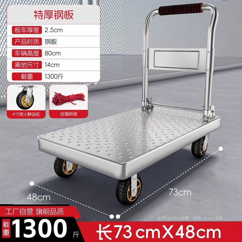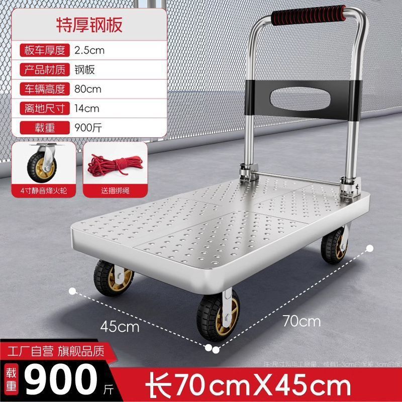 Тележка из утолщенной стальной пластины для перевозки грузов, небольшой прицеп, бытовая транспортная тележка, портативная тележка с плоской платформой, тележка с ручным управлением
