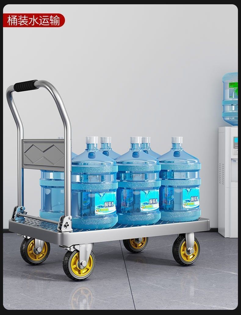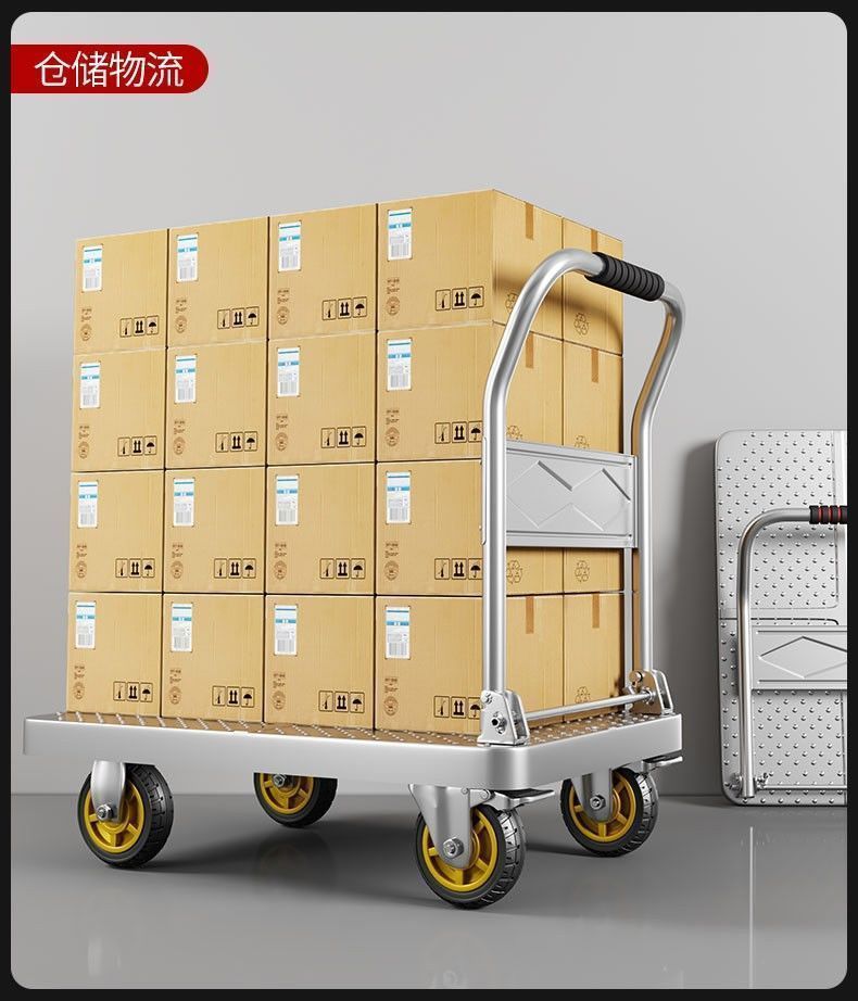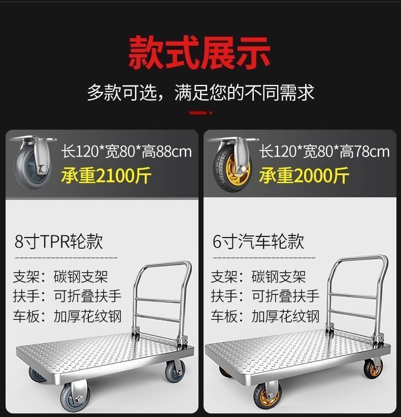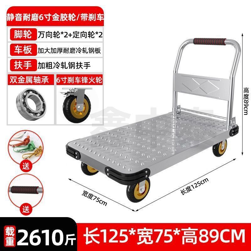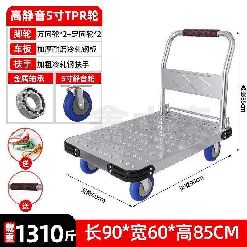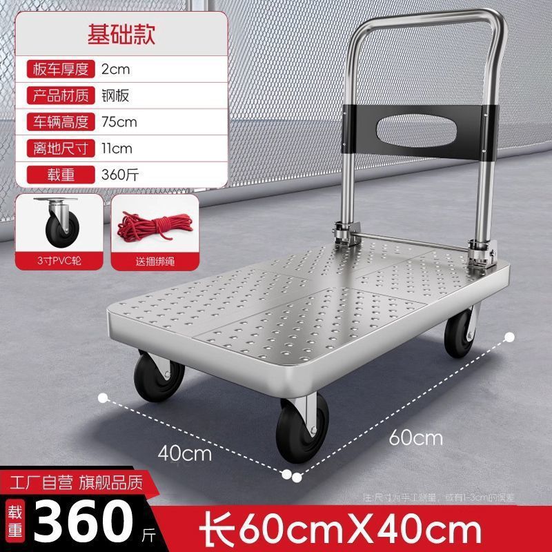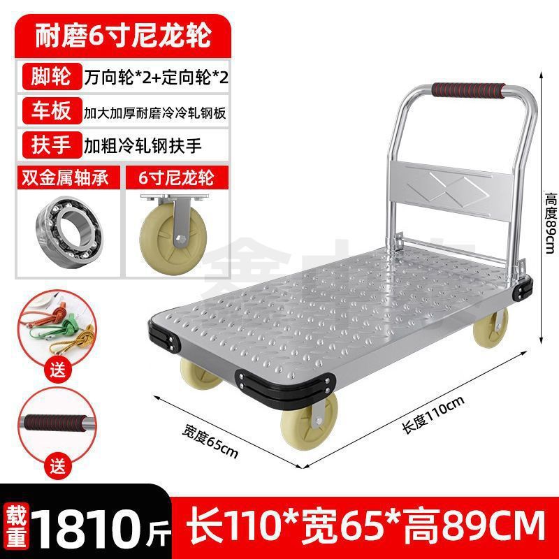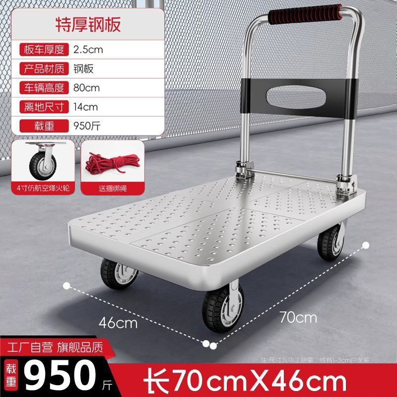 Тележка из утолщенной стальной пластины для перевозки грузов, небольшой прицеп, бытовая транспортная тележка, портативная тележка с плоской платформой, тележка с ручным управлением