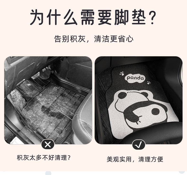 Милые автомобильные коврики с пандой, проволочные кольца, износостойкие и грязеотталкивающие автомобильные коврики, противоскользящие цельные автомобильные защитные коврики с героями мультфильмов