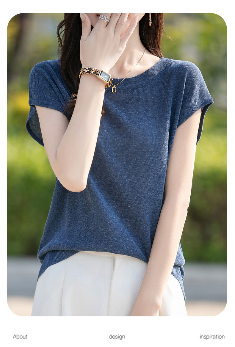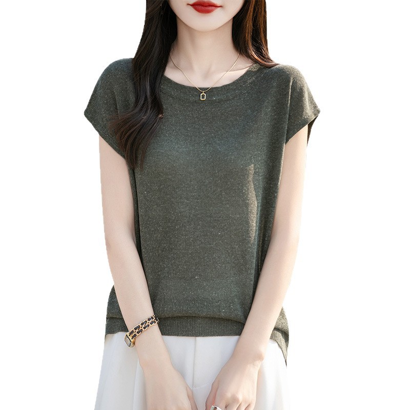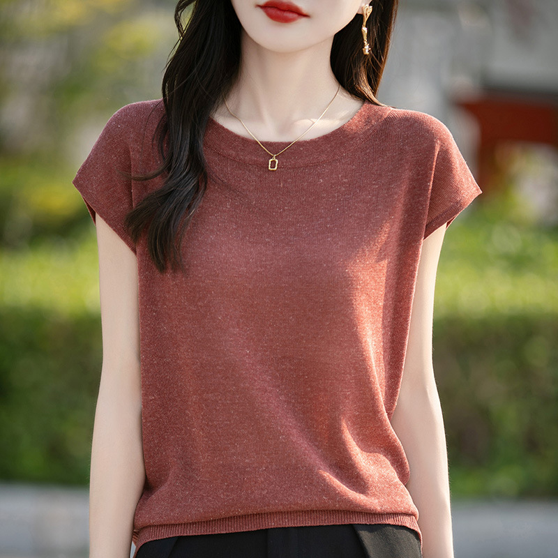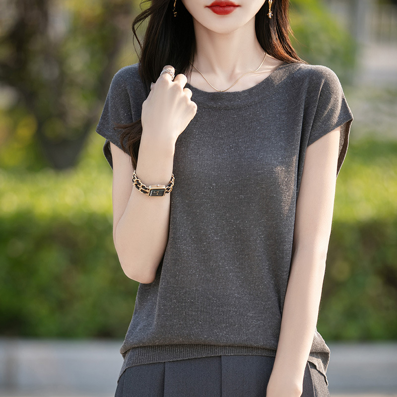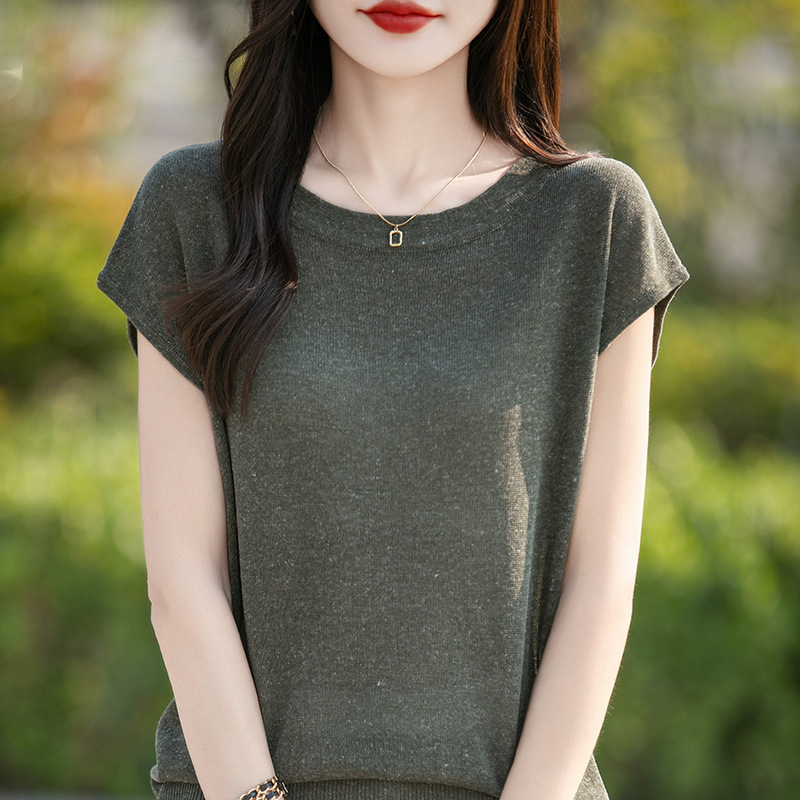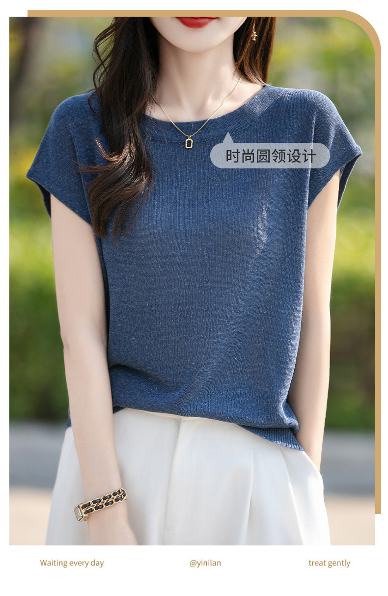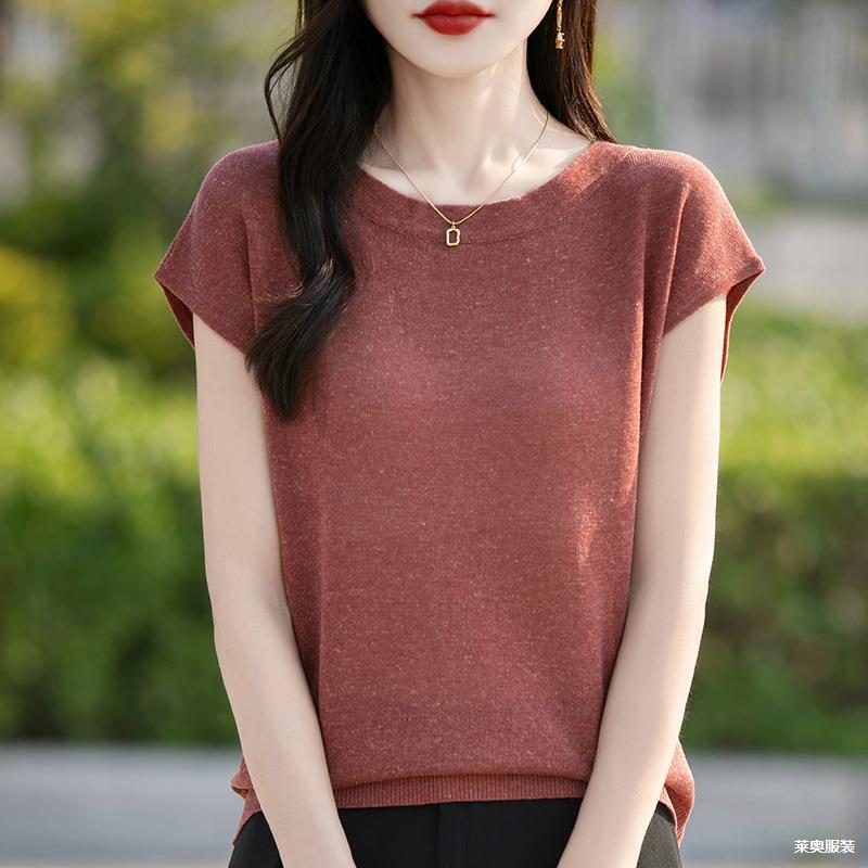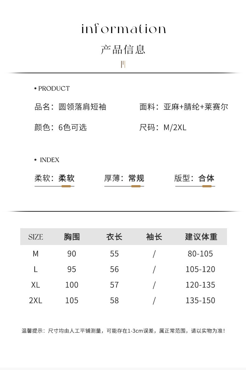 Новая летняя льняная трикотажная женская футболка с короткими рукавами и круглым вырезом из тенселя, тонкая простая свободная футболка для похудения