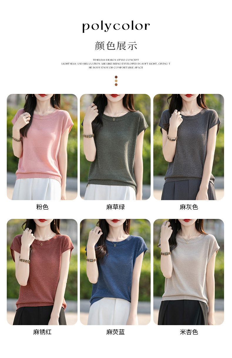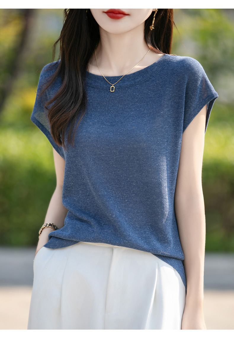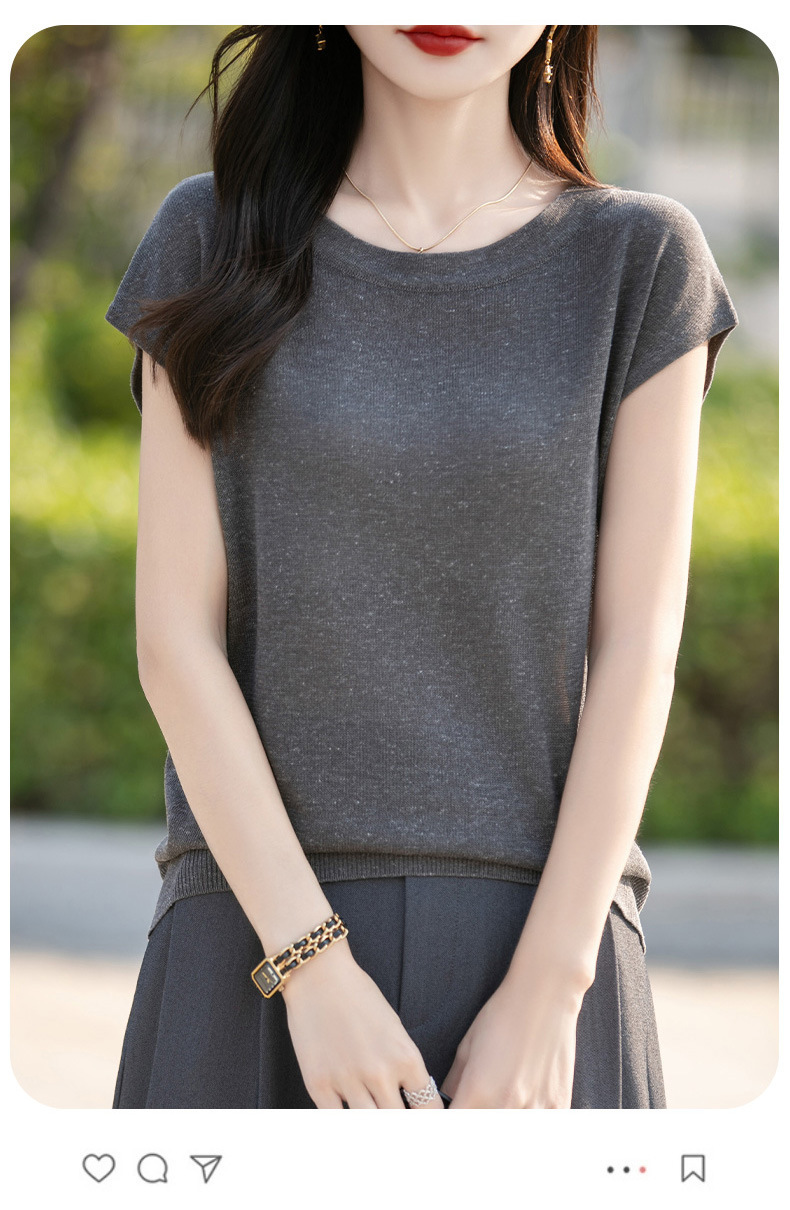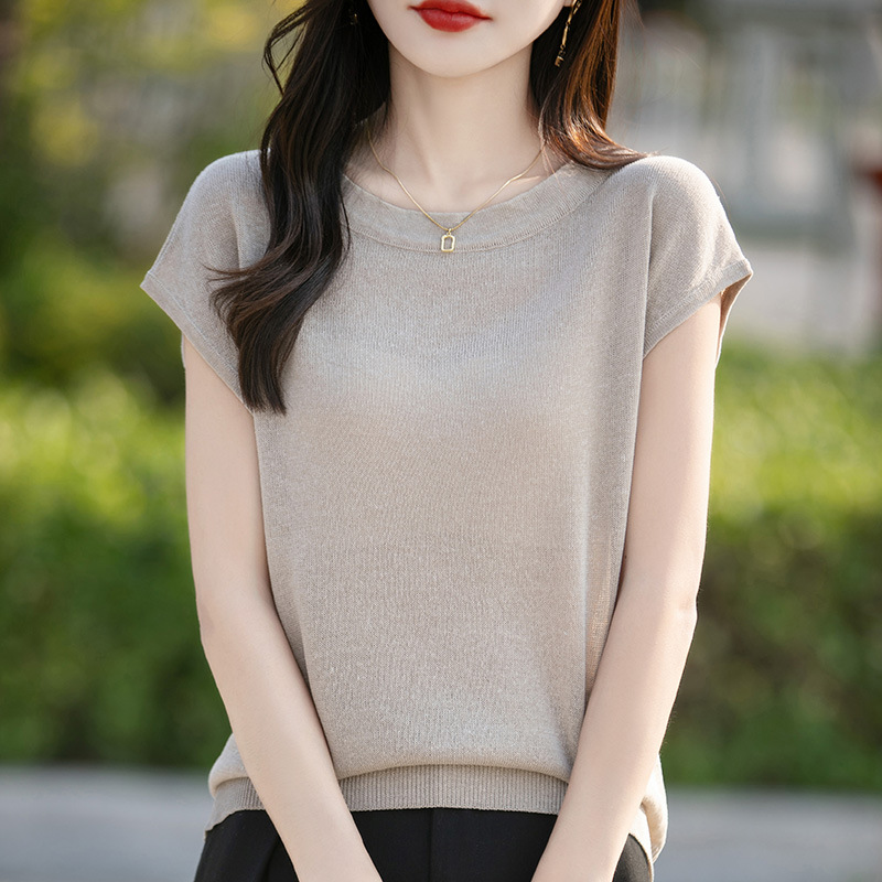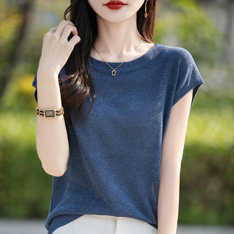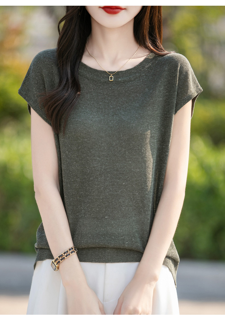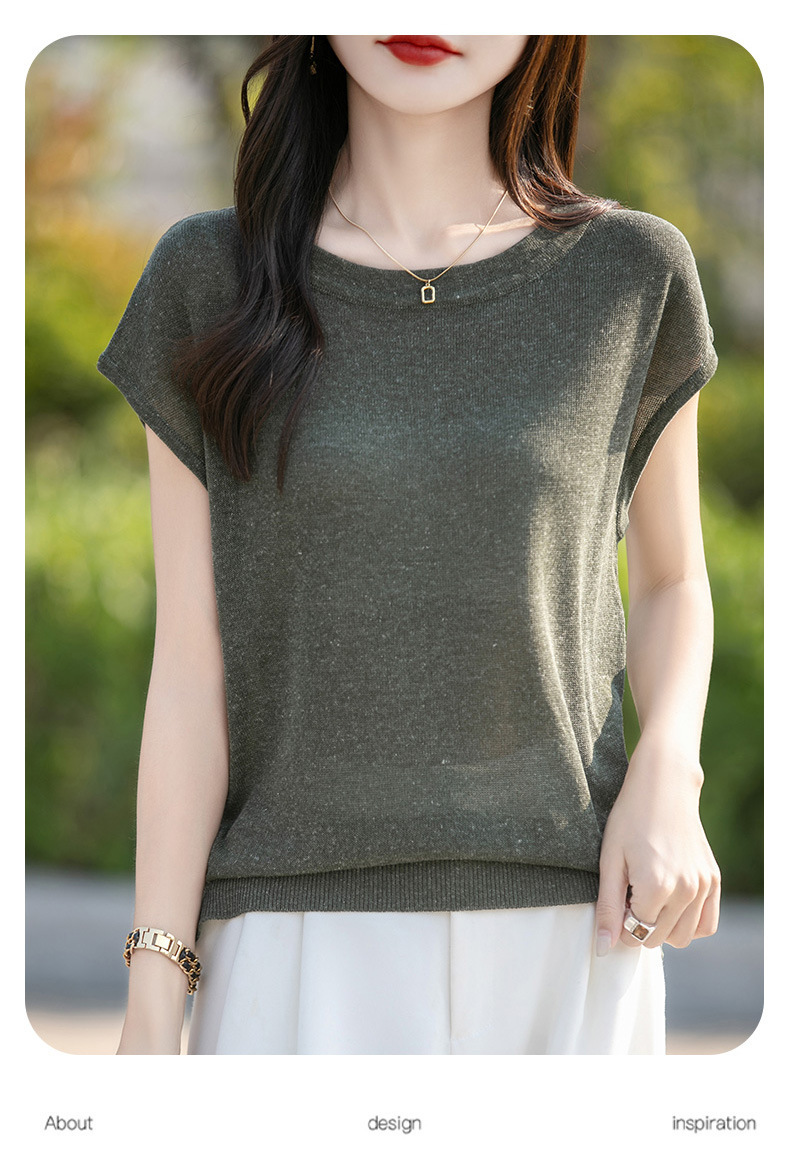 Новая летняя льняная трикотажная женская футболка с короткими рукавами и круглым вырезом из тенселя, тонкая простая свободная футболка для похудения