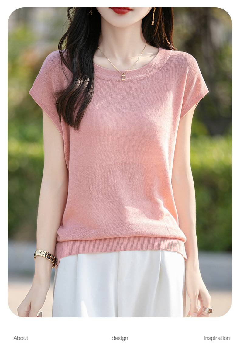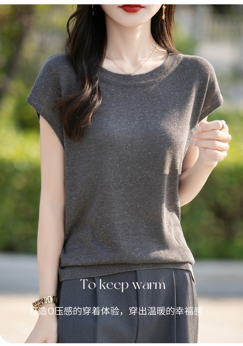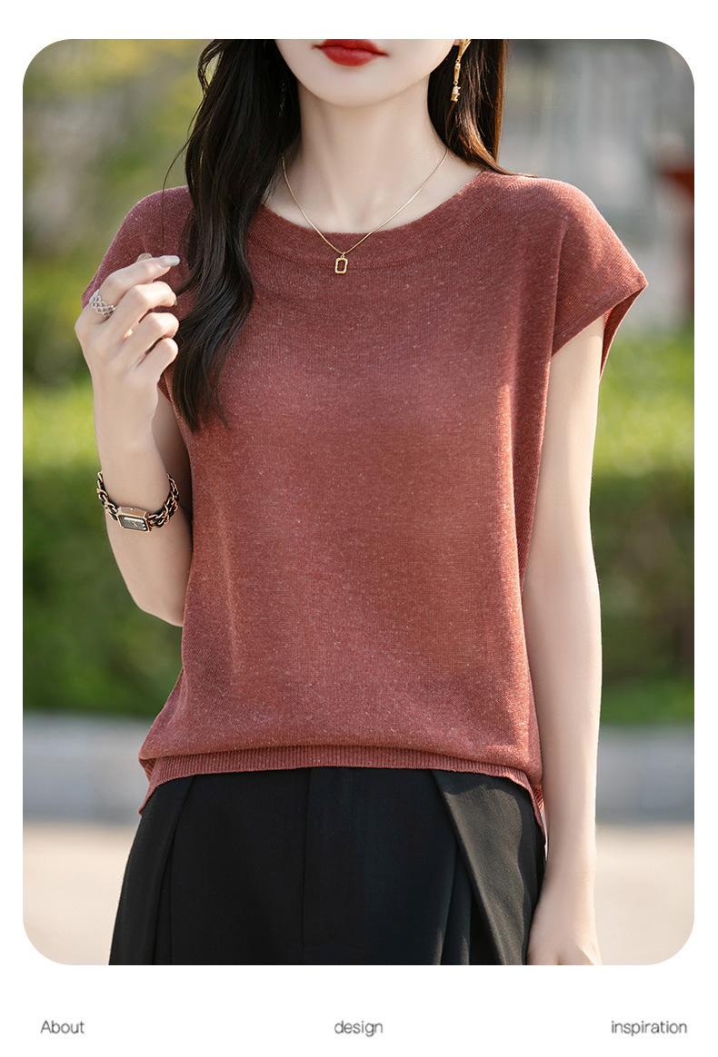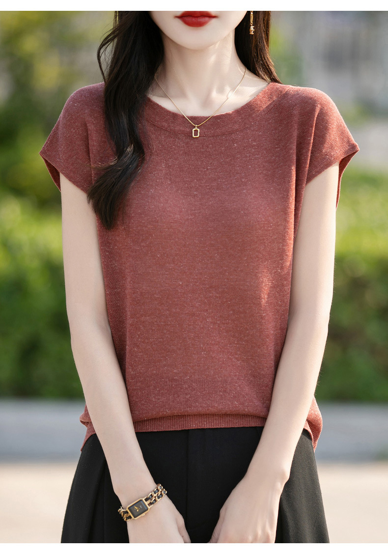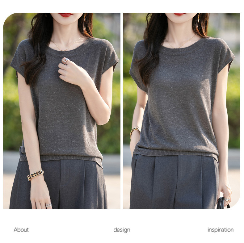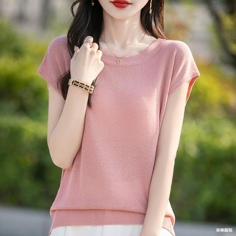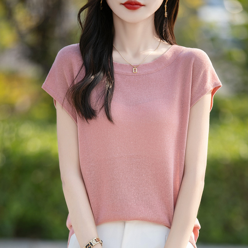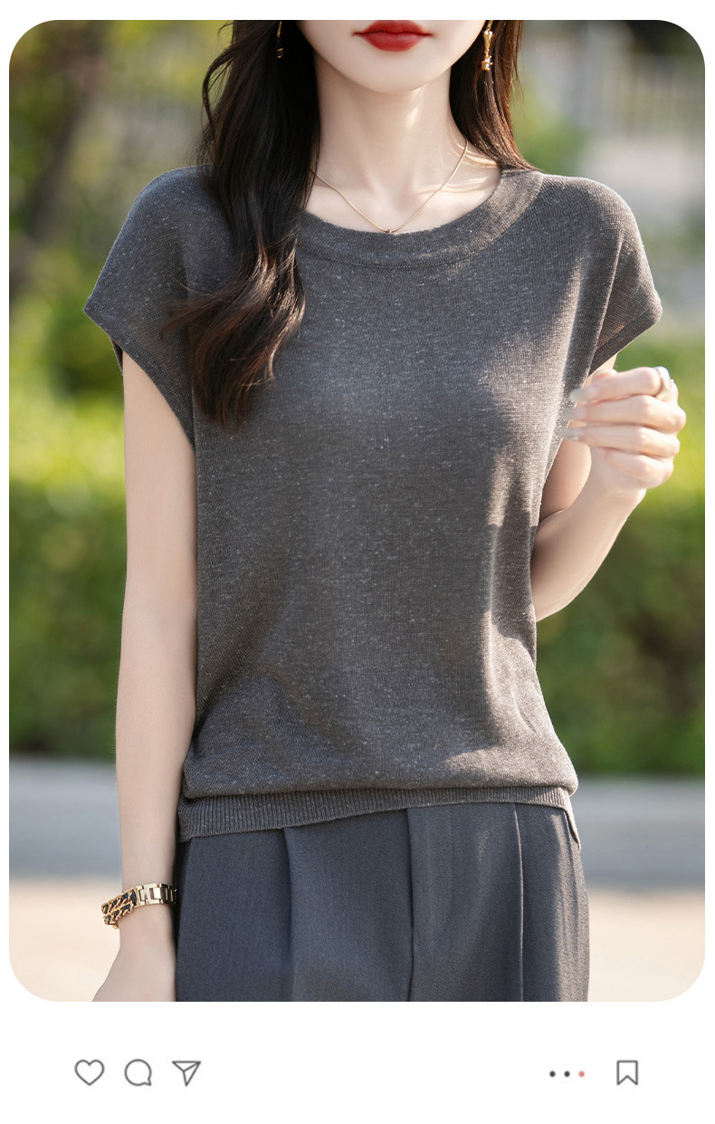 Новая летняя льняная трикотажная женская футболка с короткими рукавами и круглым вырезом из тенселя, тонкая простая свободная футболка для похудения