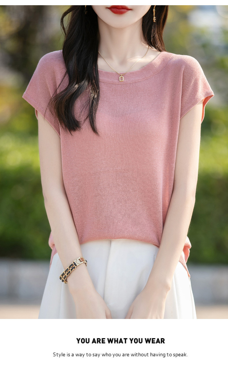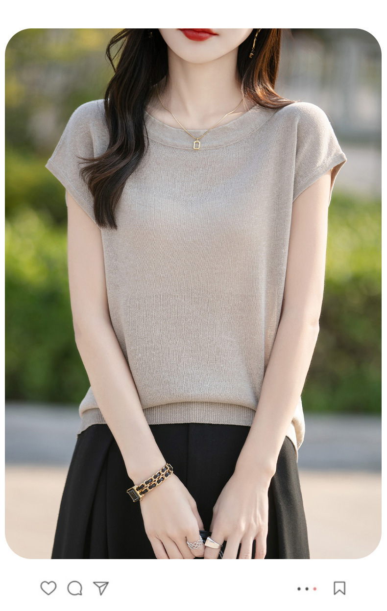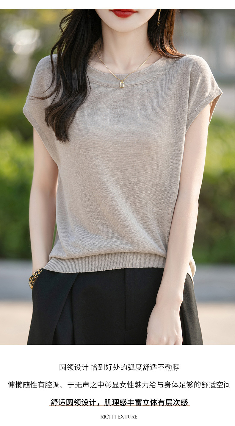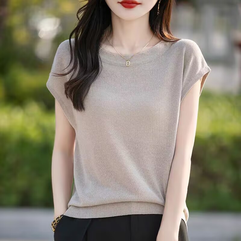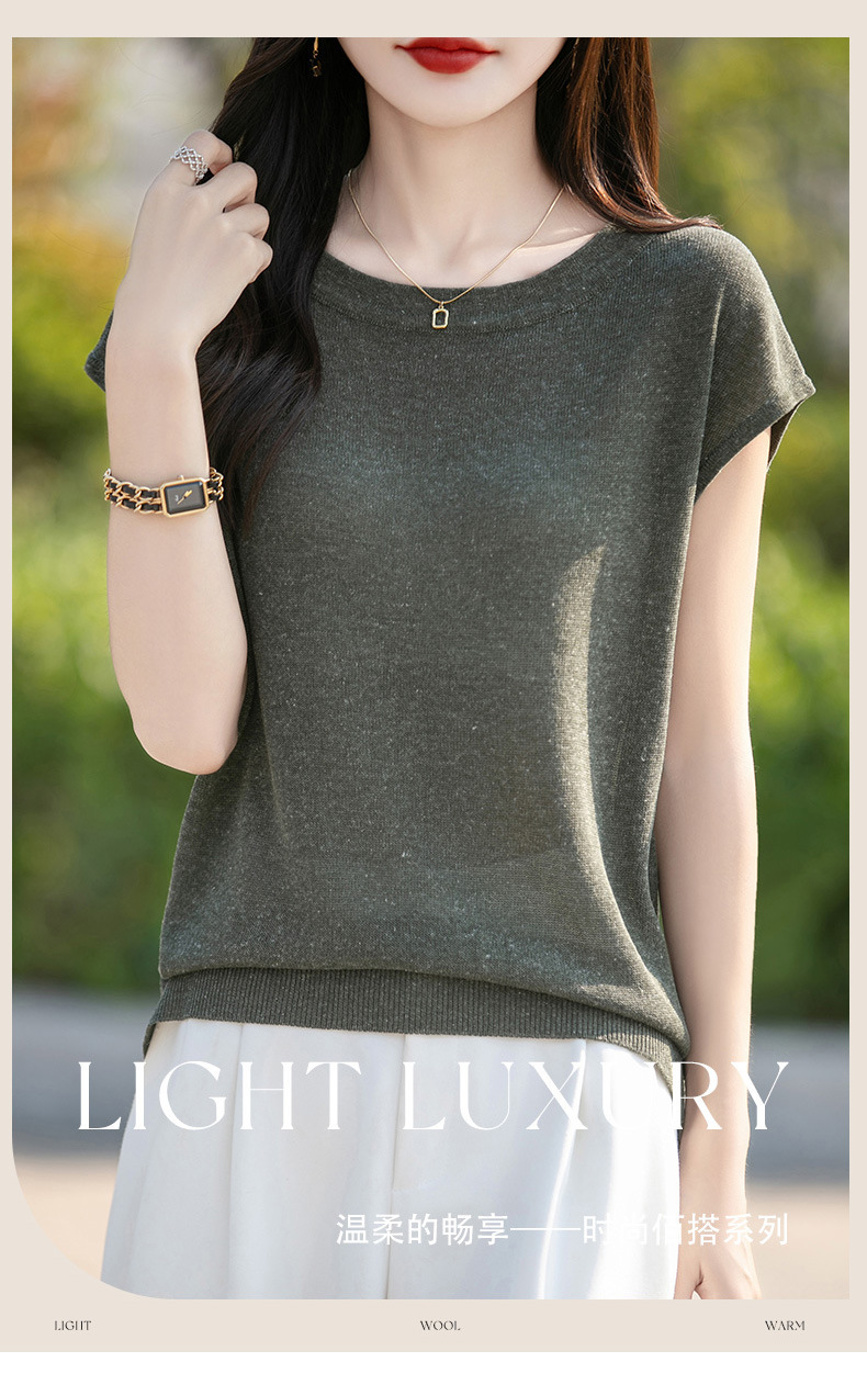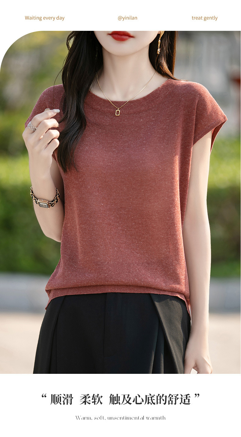 Новая летняя льняная трикотажная женская футболка с короткими рукавами и круглым вырезом из тенселя, тонкая простая свободная футболка для похудения