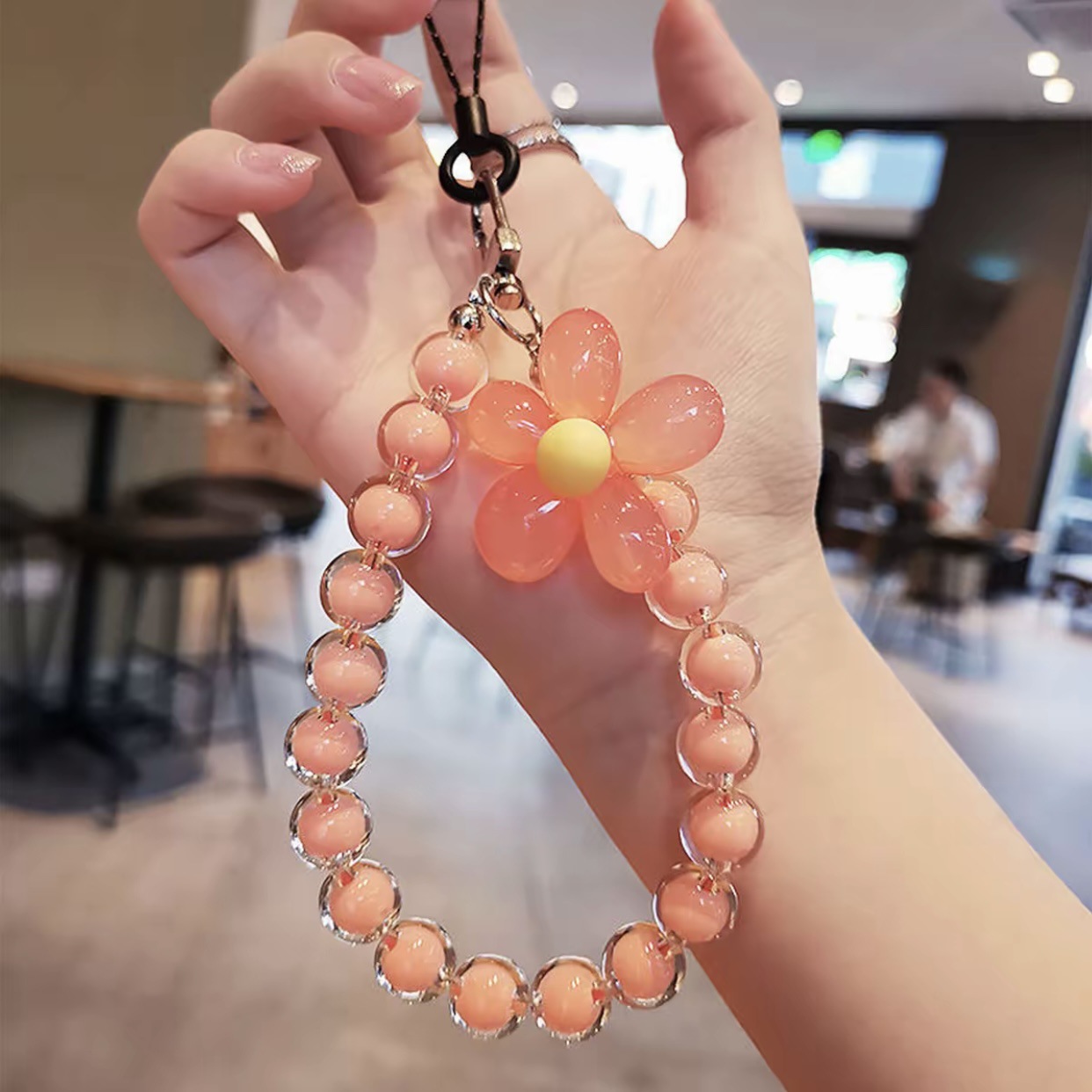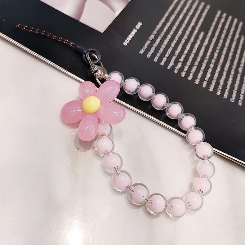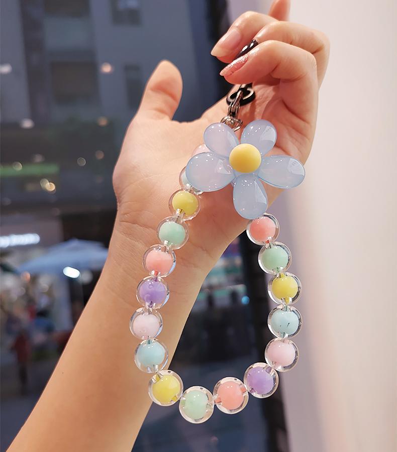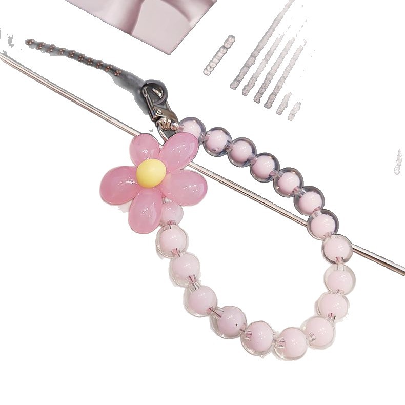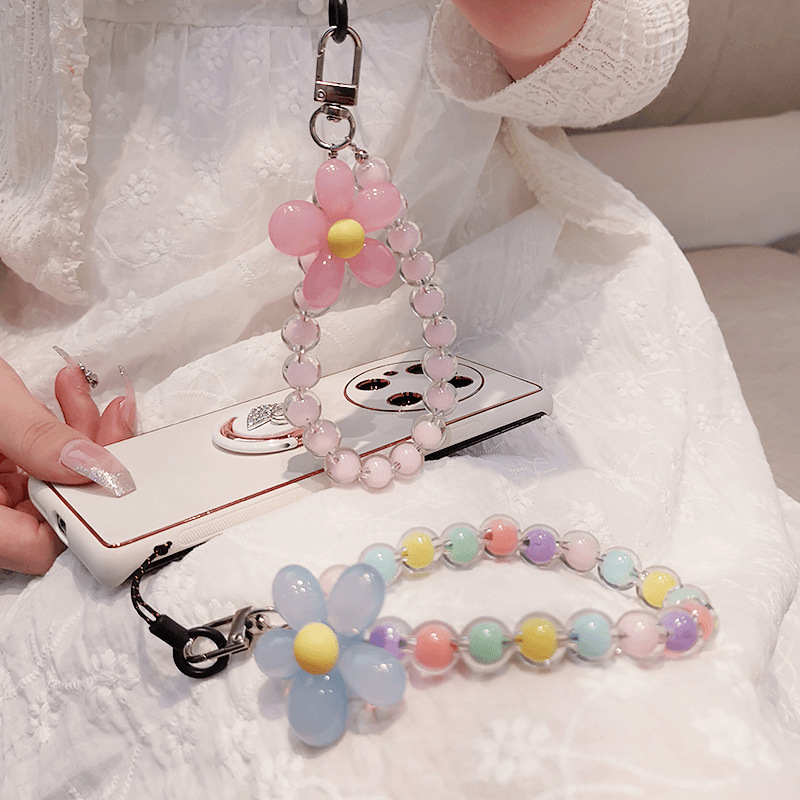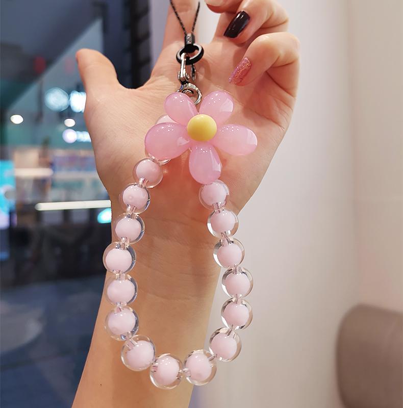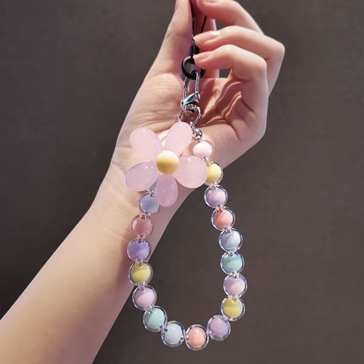 Ручной работы бисерный цветочный чехол для телефона с цепочкой на запястье, прозрачный макаронный цвет, шнурок для телефона, браслет