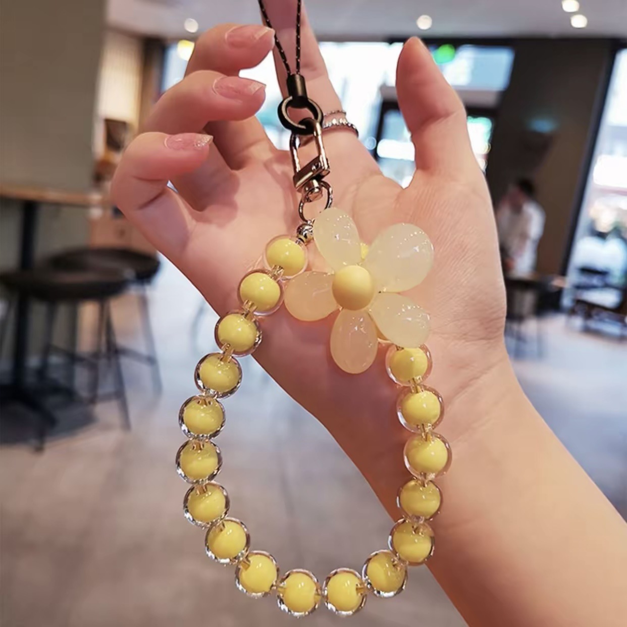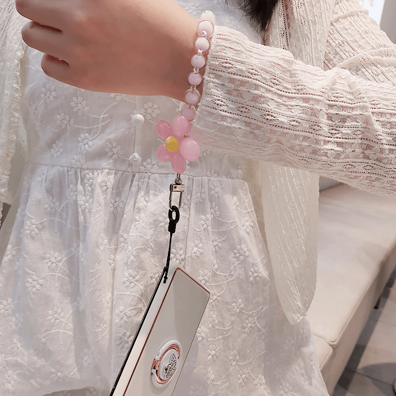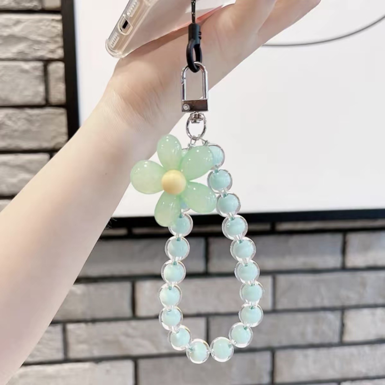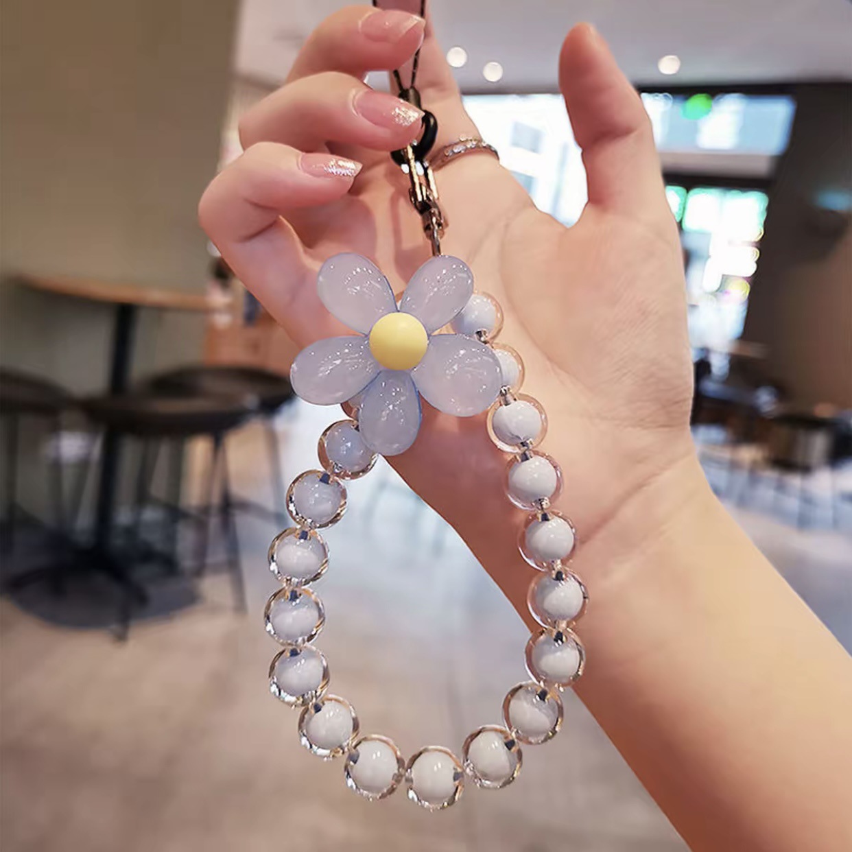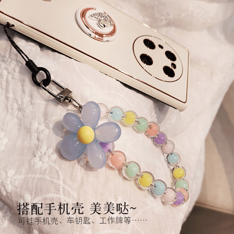 Ручной работы бисерный цветочный чехол для телефона с цепочкой на запястье, прозрачный макаронный цвет, шнурок для телефона, браслет