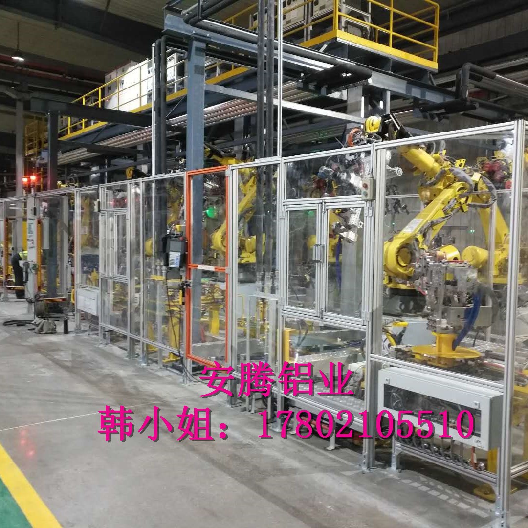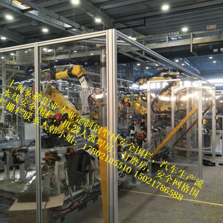 上海安腾铝业韩小姐 专业承接汽车生产流水线安全围栏,机器人弧焊房,机器人打磨房等工业防护项目::工业铝型材框架安全围栏,机器人弧焊房案例展示: