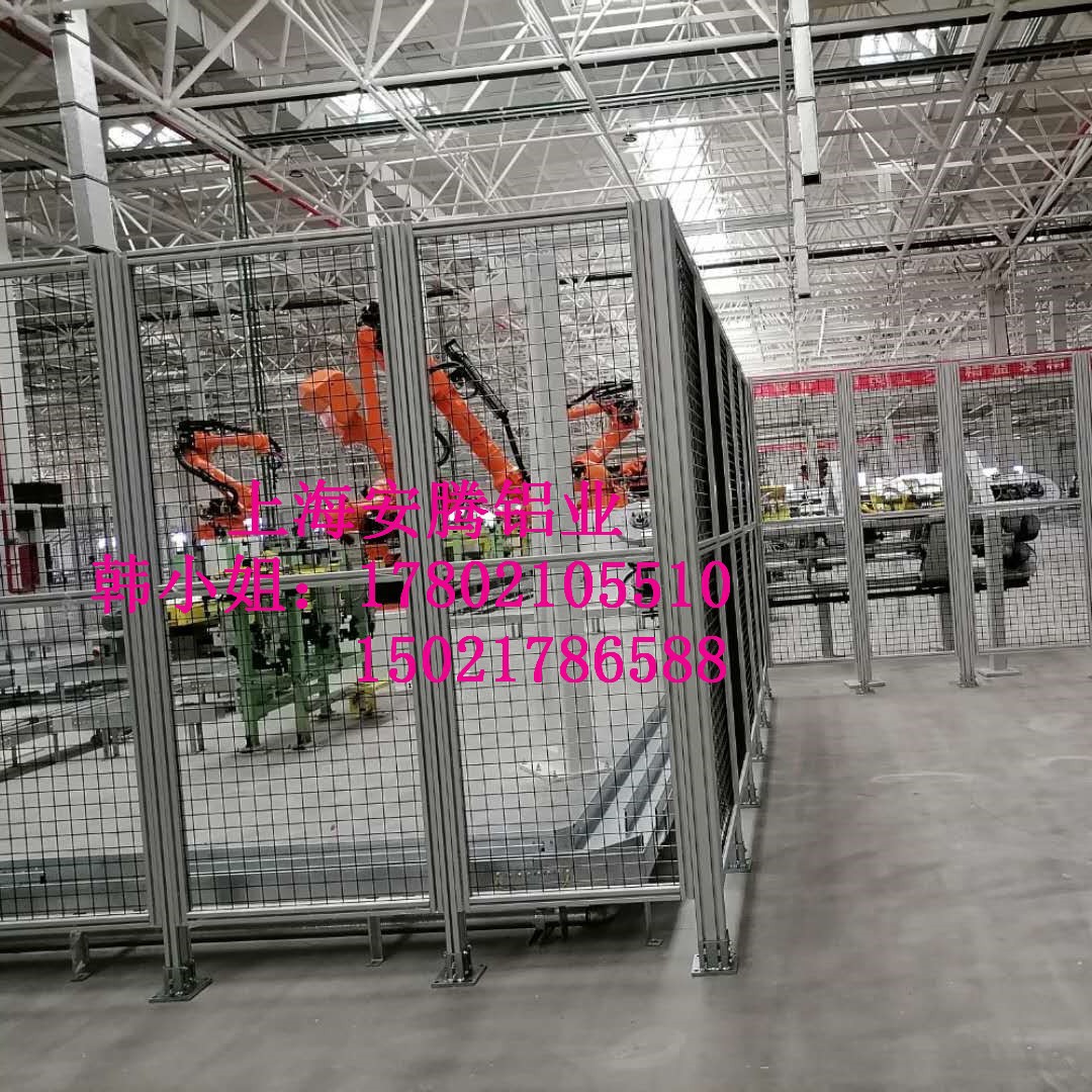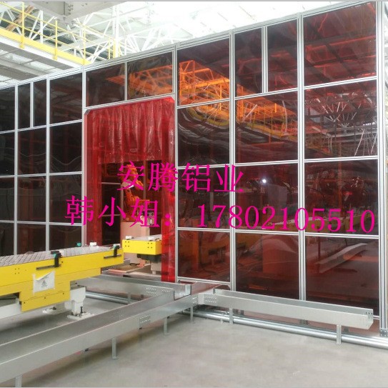 上海安腾铝业韩小姐 专业承接汽车生产流水线安全围栏,机器人弧焊房,机器人打磨房等工业防护项目::工业铝型材框架安全围栏,机器人弧焊房案例展示:
