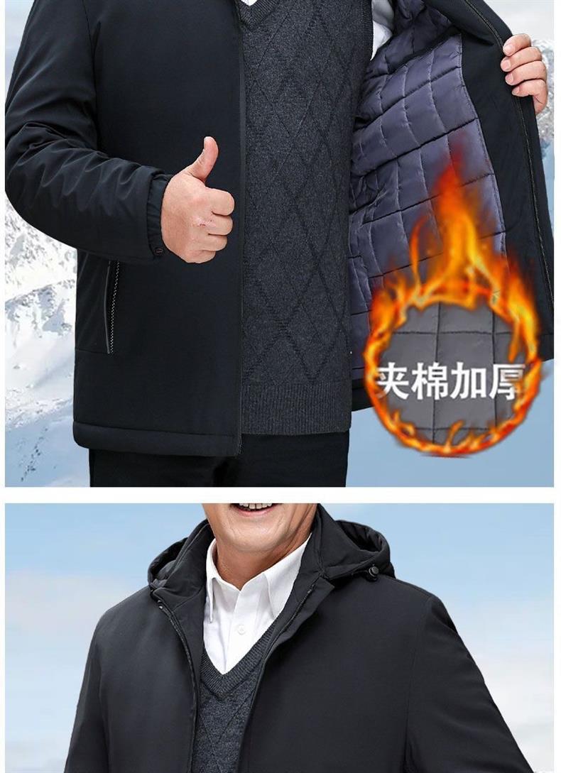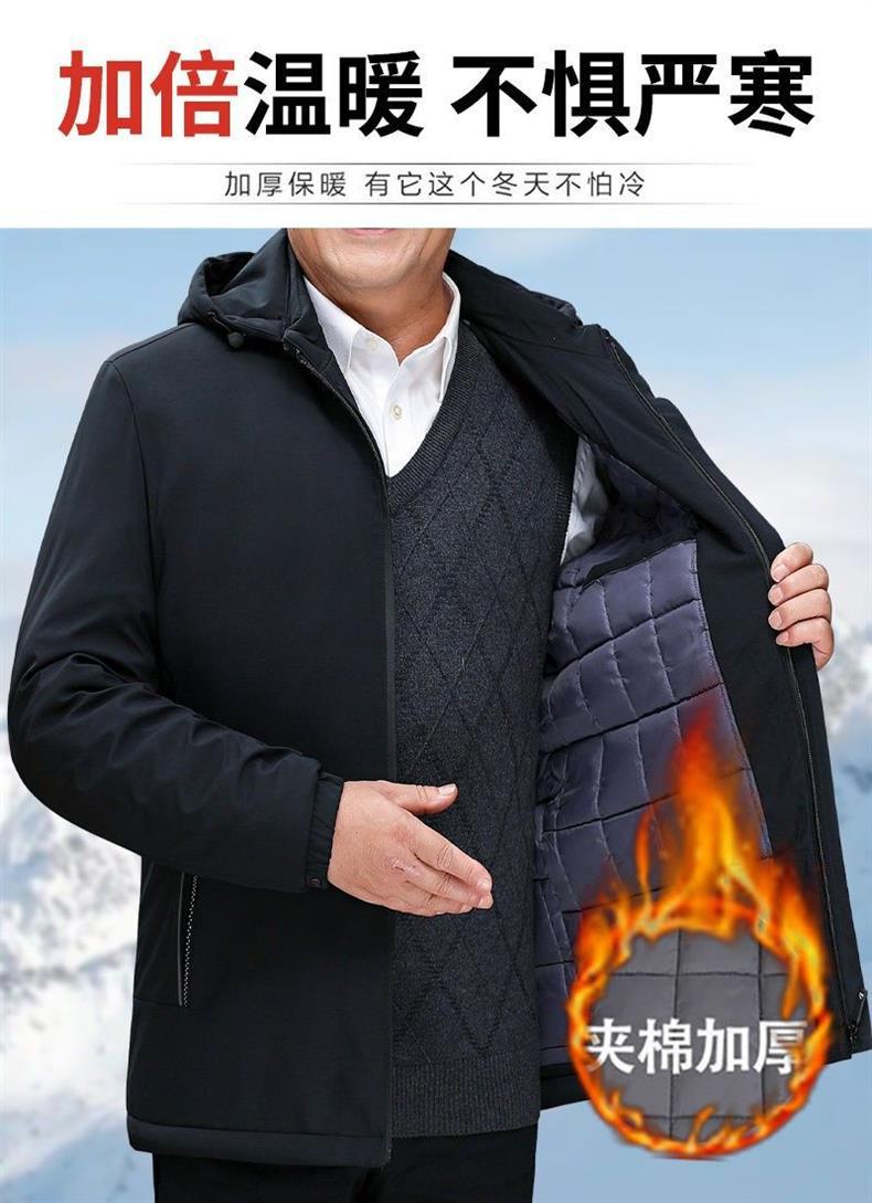 Мужская зимняя куртка с хлопковым утеплителем, повседневная и теплая, со съемным капюшоном, утолщенное хлопковое пальто для мужчин среднего возраста.