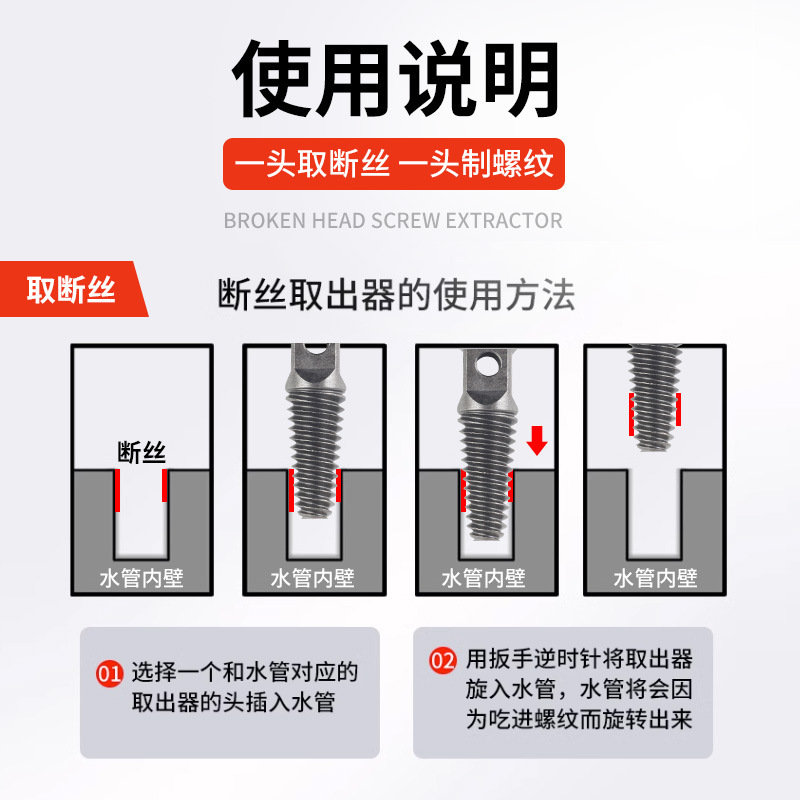 Изготовитель резьбы для ремонта углового клапана крана 1/2" и 3/4", извлекатель винтов с обратной резьбой.