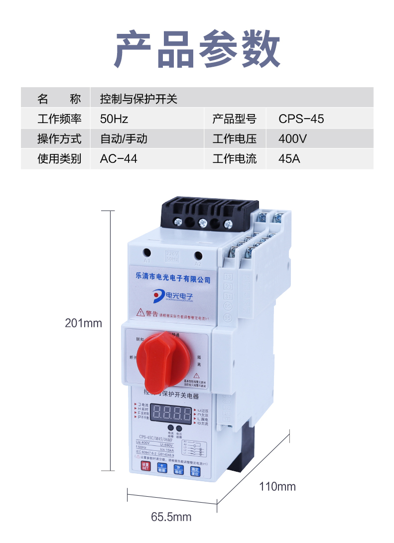 Переключатель управления и защиты CPS-45 63 электродвигатель, отсутствие фазы, перегрузка, утечка/базовый тип 12, тип устранения