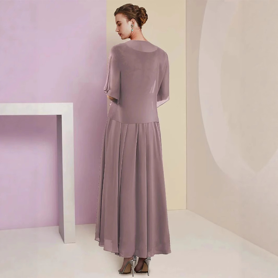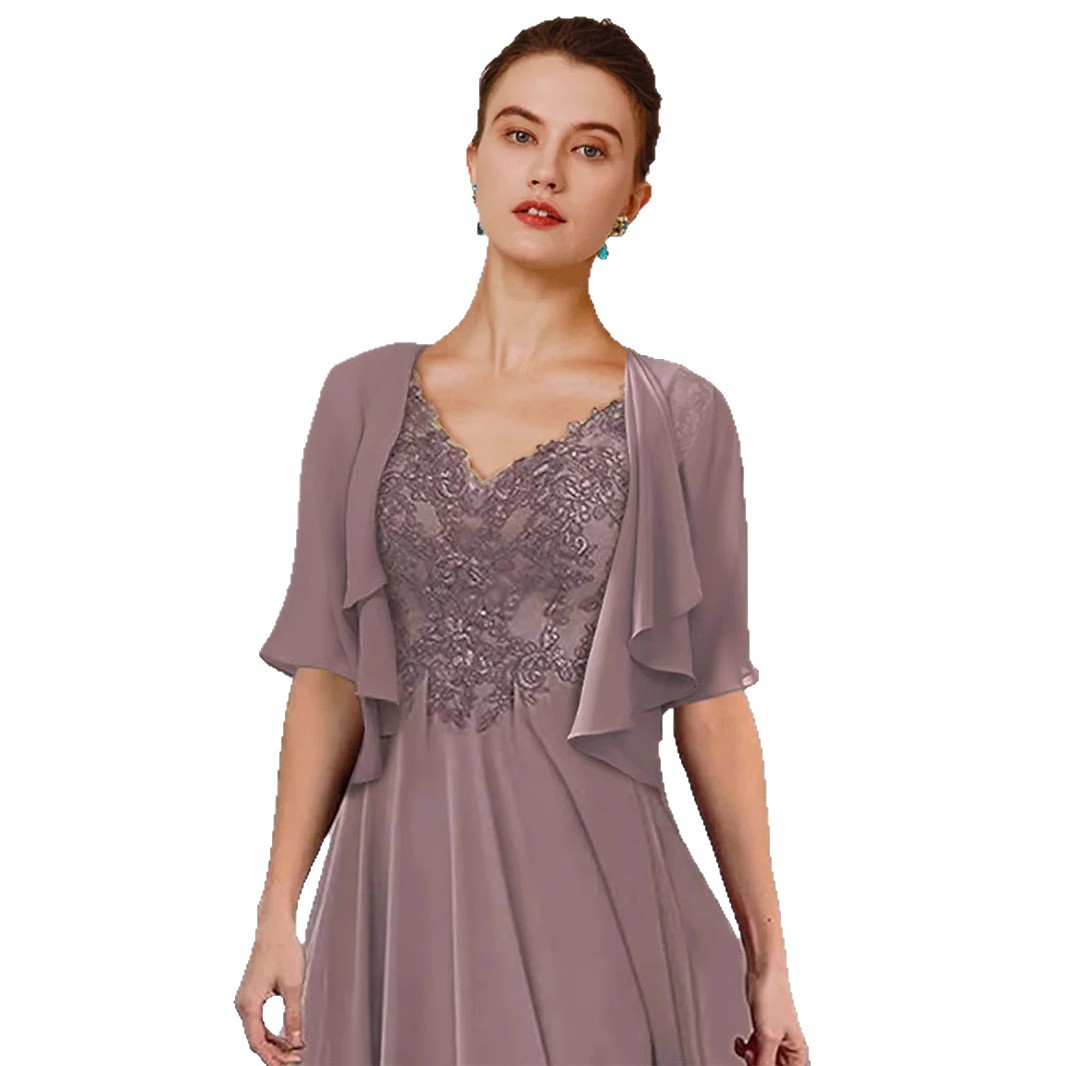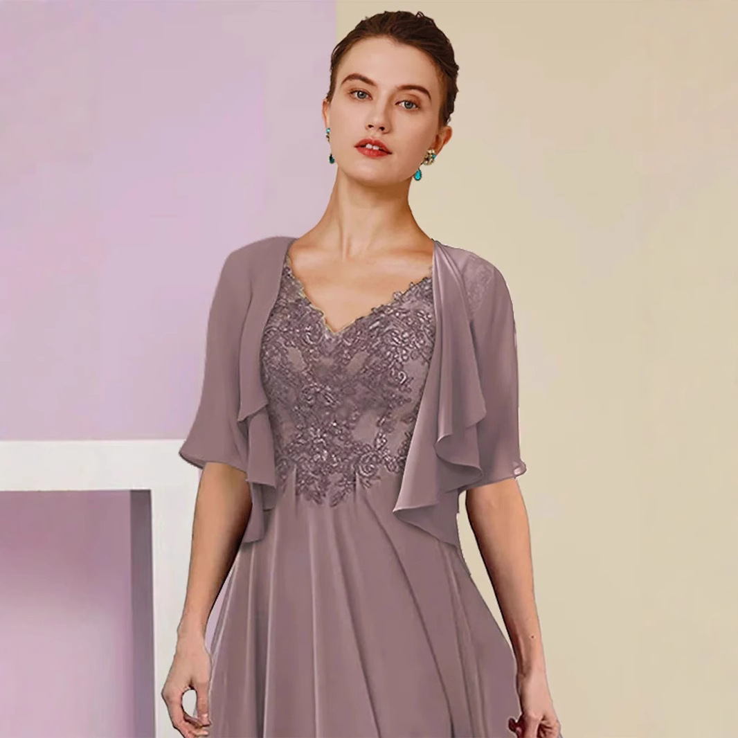 2025 новый экспортный комплект из 2 предметов: вечернее платье с шалью, кружевной аппликацией, V-образным вырезом и шифоном для свадьбы или матери