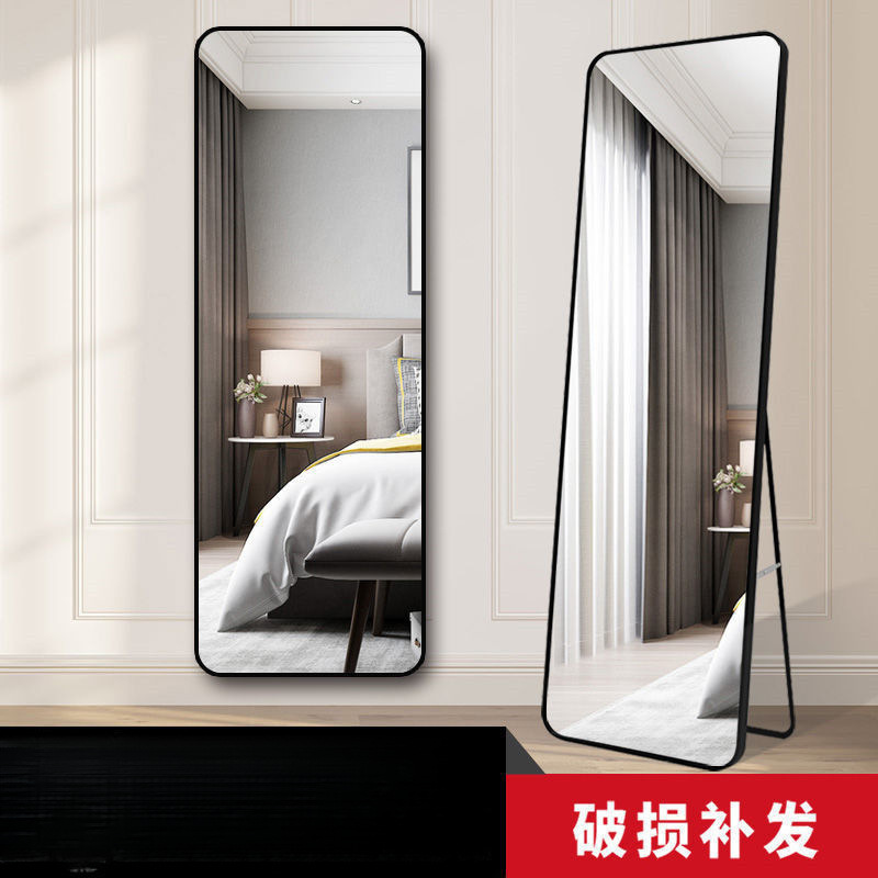 Напольное зеркало в полный рост, модное минималистское зеркало для дома с закругленными углами для девочек, горизонтальное зеркало для гардероба для студенческого общежития или магазина одежды.