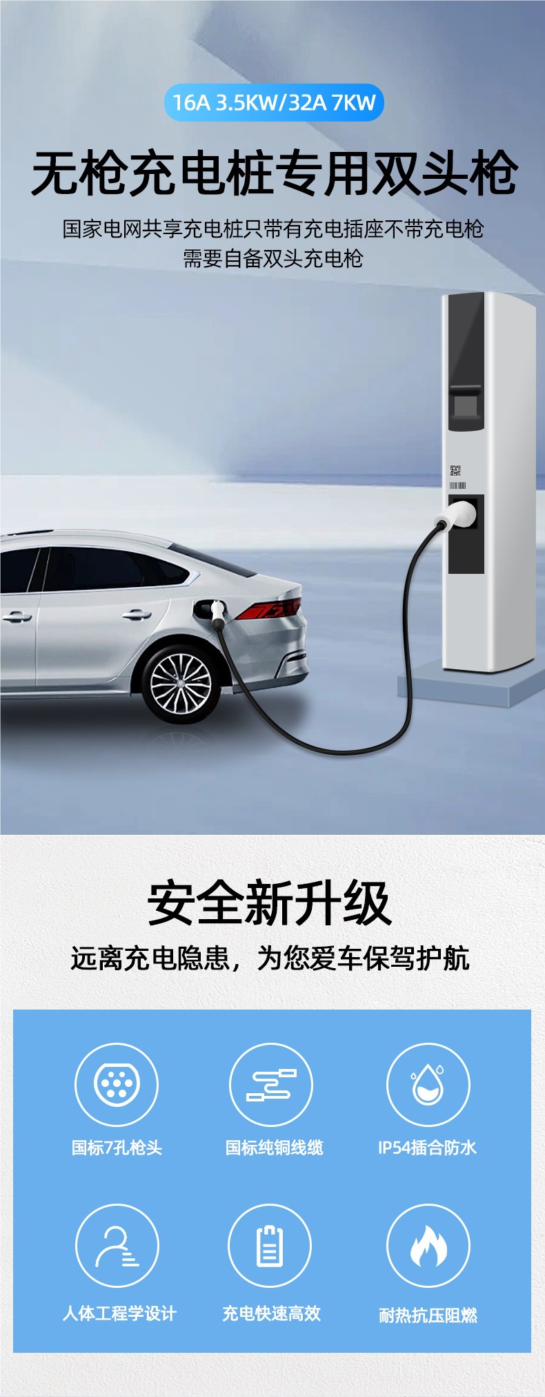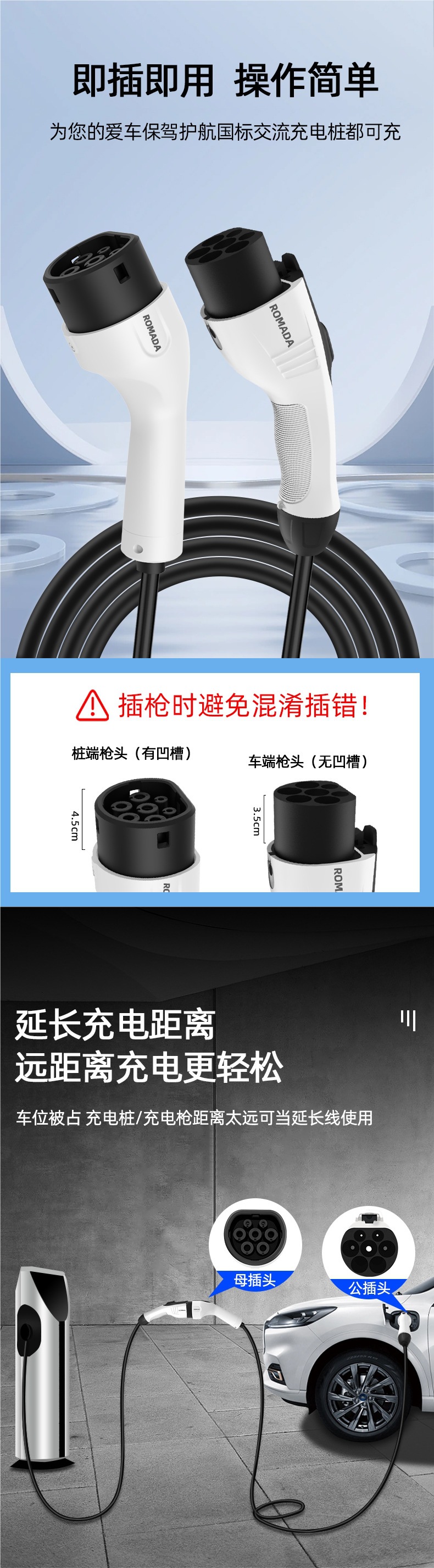 Удлинитель для зарядного устройства для автомобиля на новой энергии, 16/32A7 кВт, двойной штекер для зарядного устройства переменного тока, удлинитель для головки пистолета переменного тока
