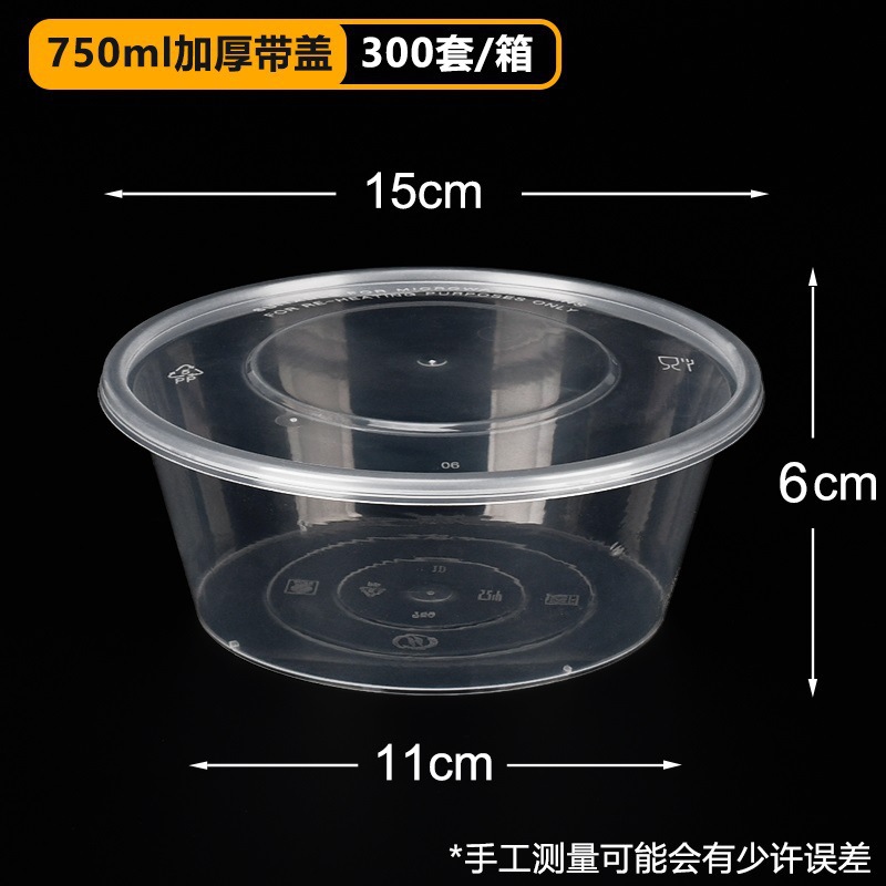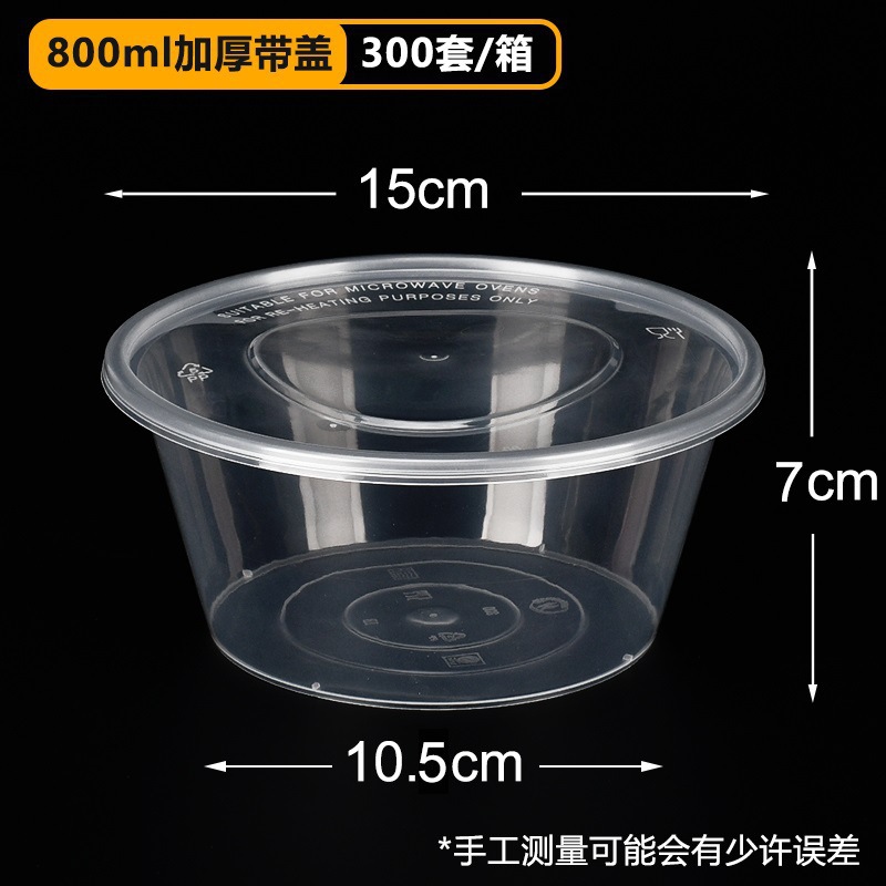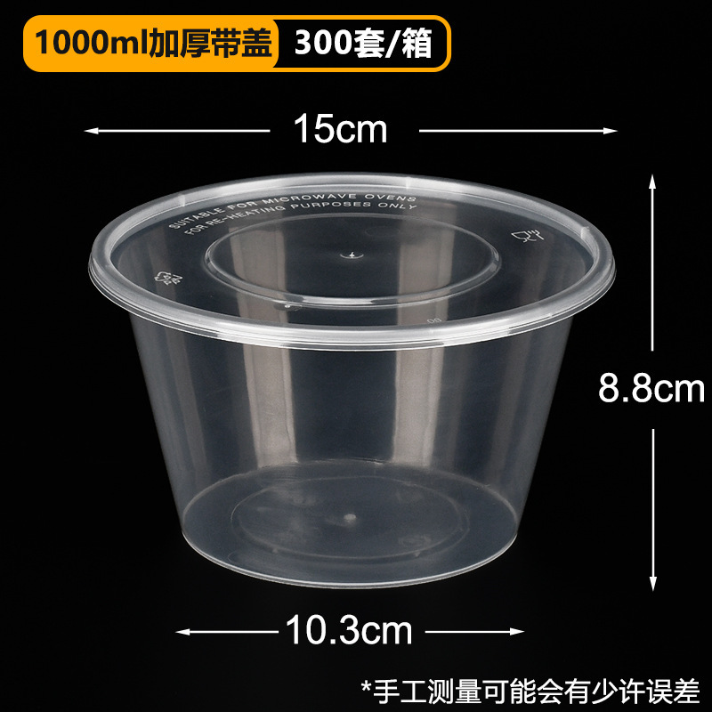 Прозрачный круглый одноразовый ланч-бокс на 1000 мл, утолщенный пластиковый упакованный ланч-бокс с крышкой, суповая миска для фаст-фуда