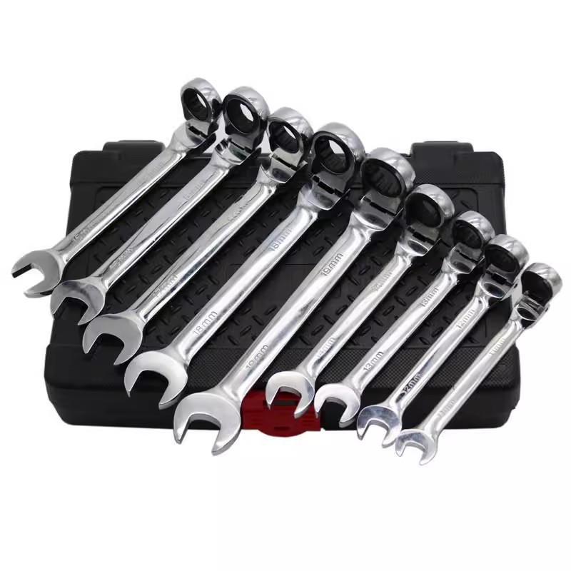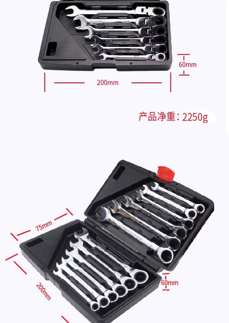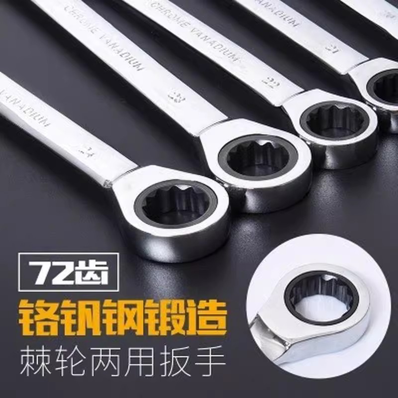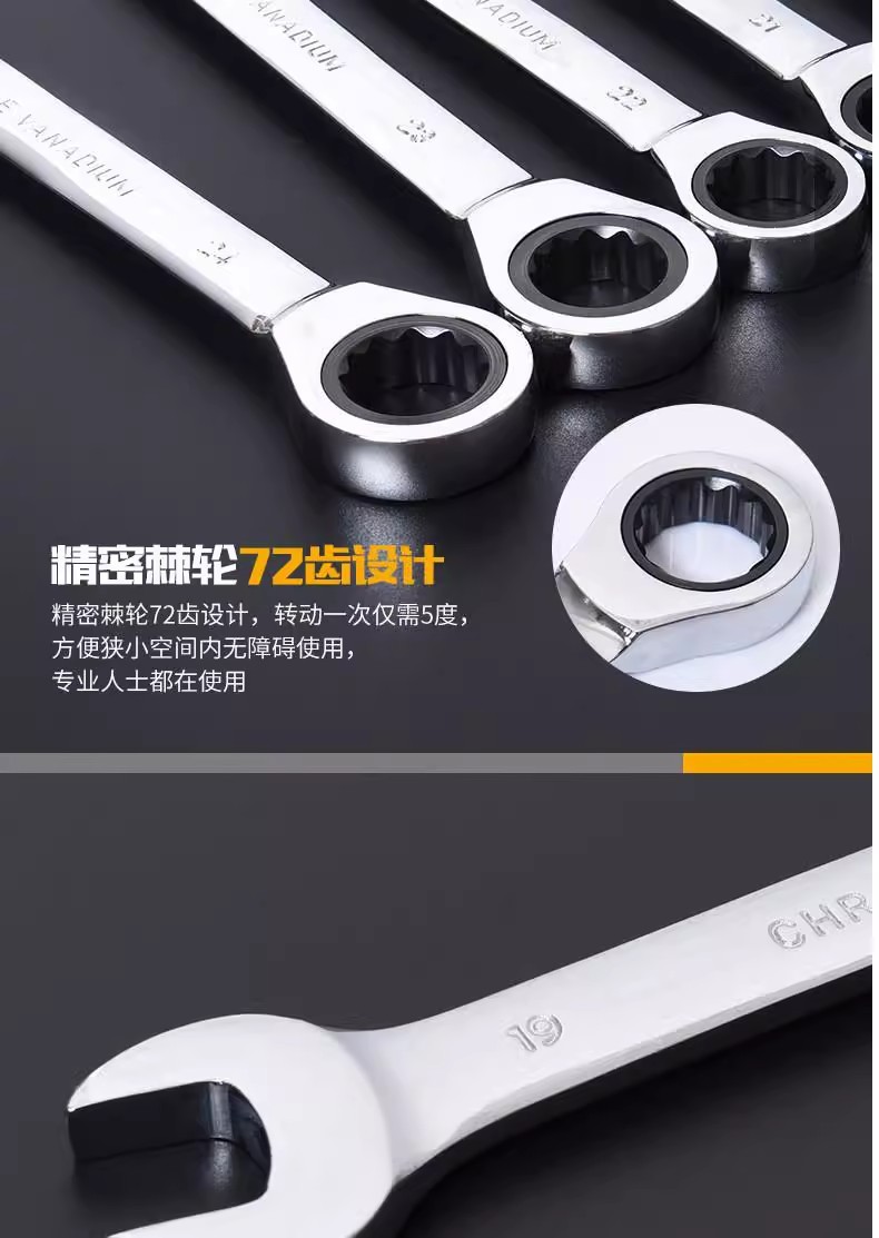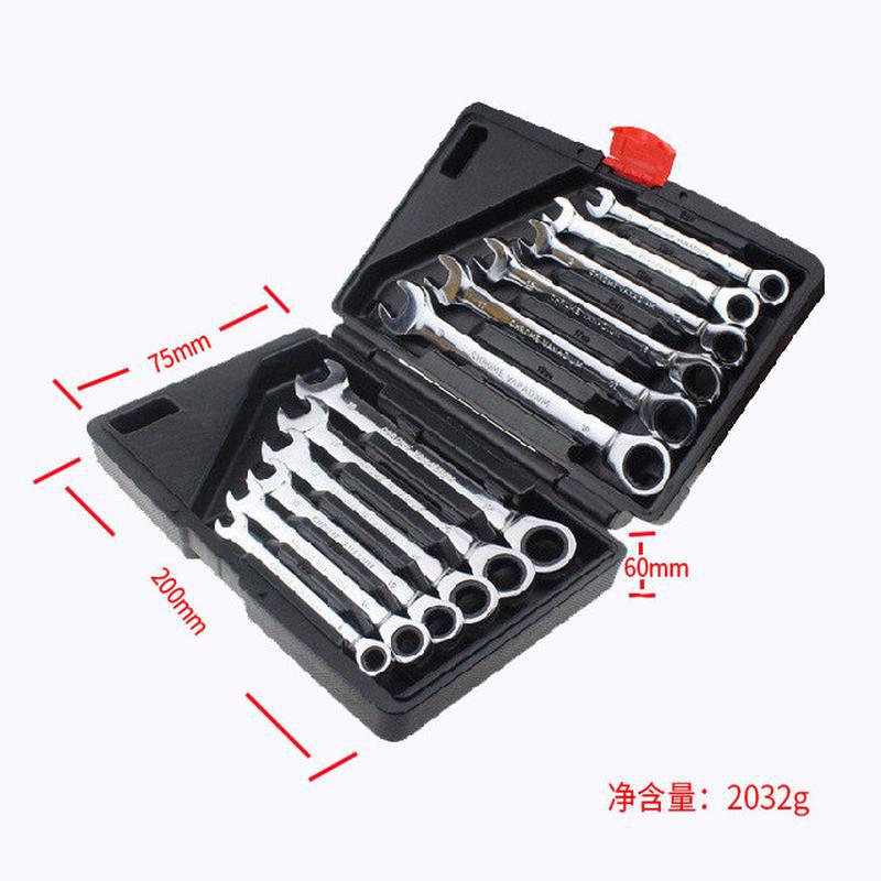 Набор из 12 регулируемых ключей с трещоткой, пластиковый ящик двойного назначения, набор из 72 зубьев, хромованадиевая сталь, глянцевый комбинированный инструмент с несколькими спецификациями.