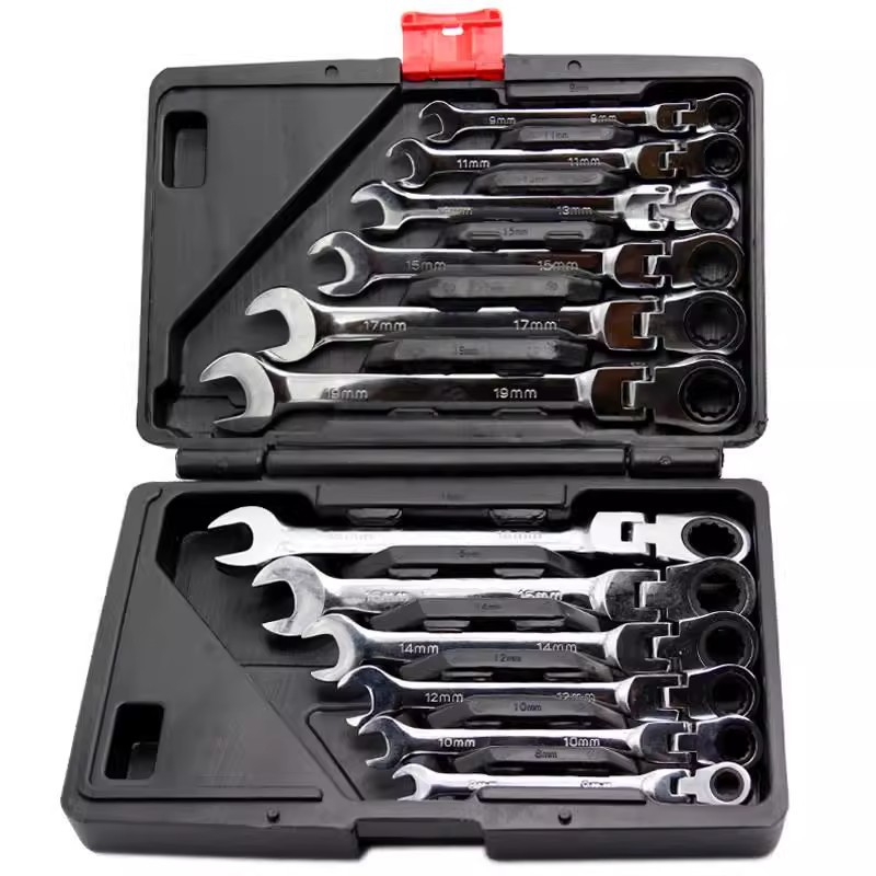 Передвижной набор ключей с храповым механизмом из 12 предметов; Набор ключей с храповым механизмом из 12 предметов.