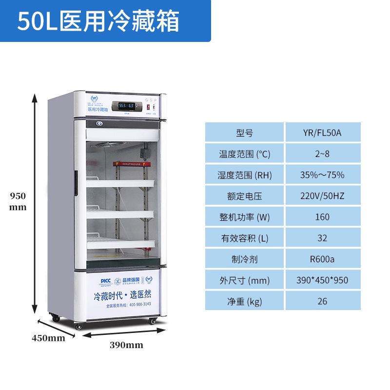 医然冷藏柜2-8℃一件代发支持分销 智能温控风冷无霜YR/FL50A立式