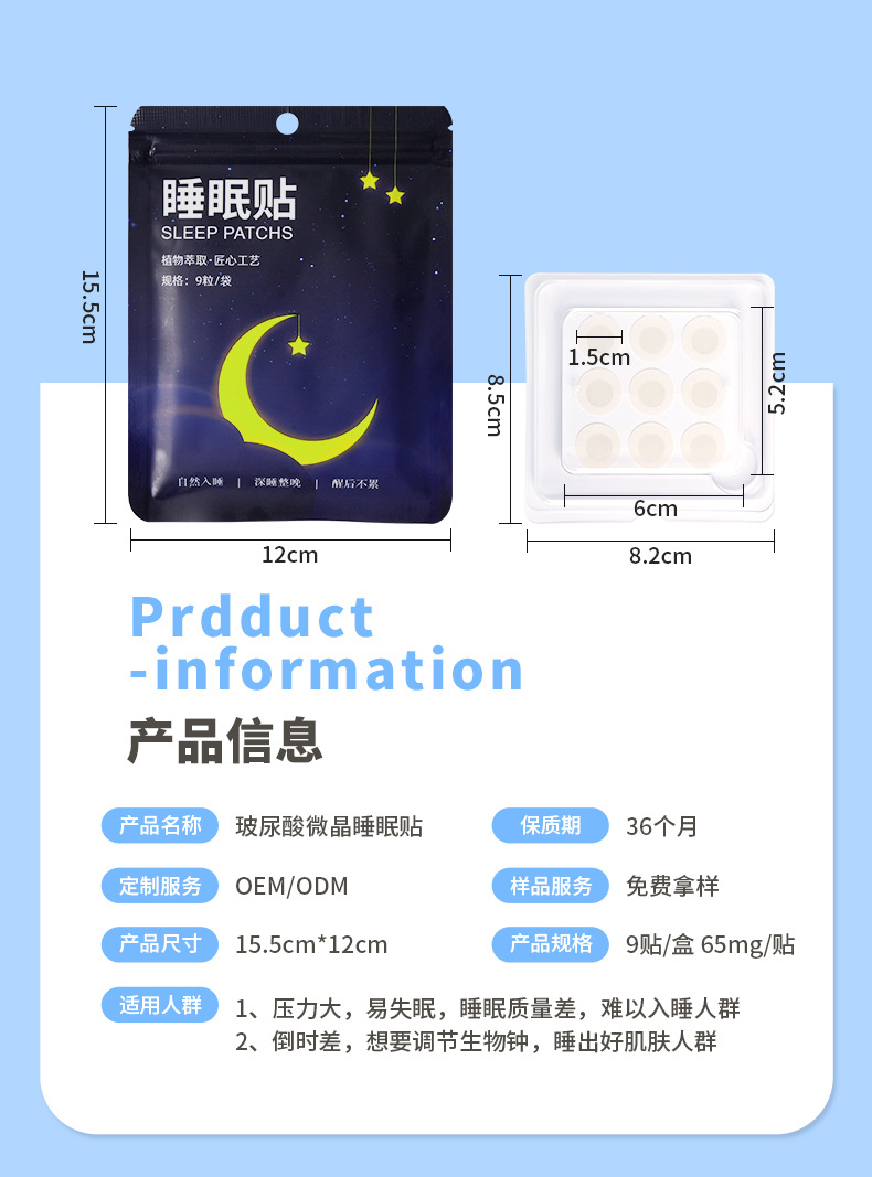 Трансграничный портативный микрокристаллический пластырь для сна с гиалуроновой кислотой для деловых поездок, ночной стресс, бессонница, пластырь для сна, микрокристаллический пластырь для сна