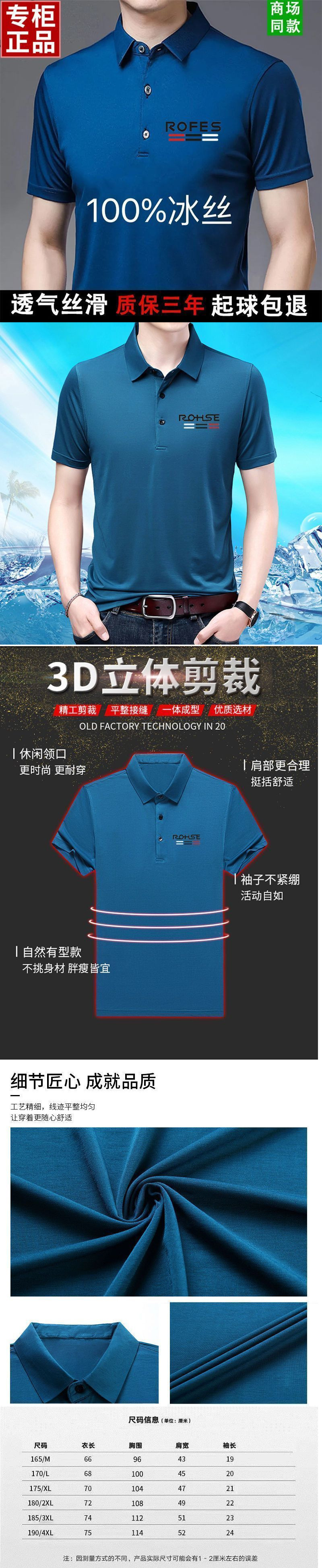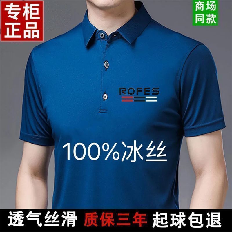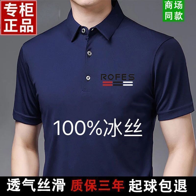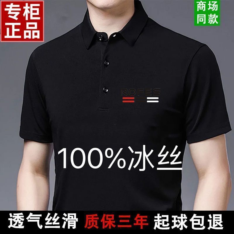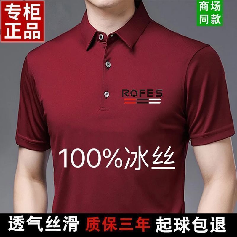 Распродажа. Мужская рубашка-поло из ледяного шелка с короткими рукавами и отложным воротником для отцов среднего и пожилого возраста. Высококачественная.