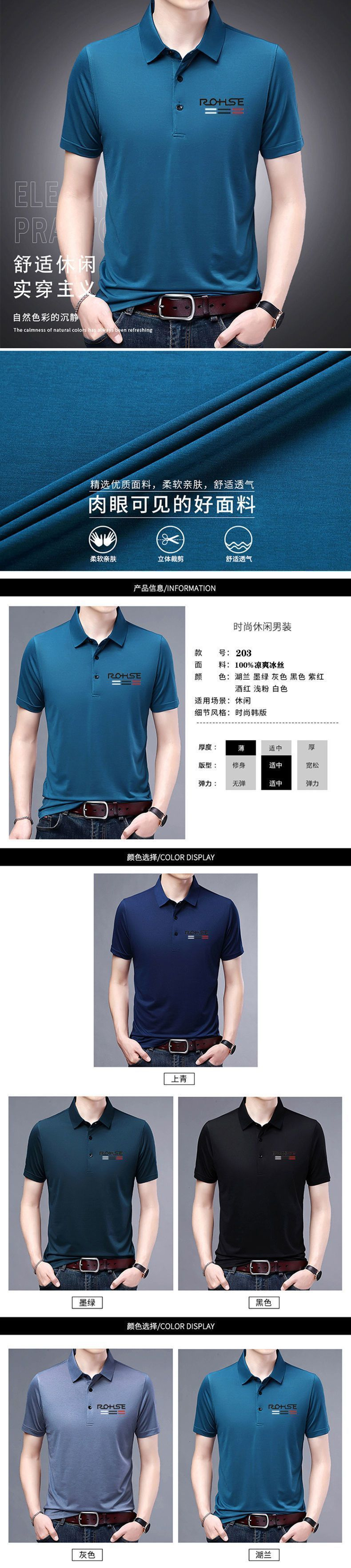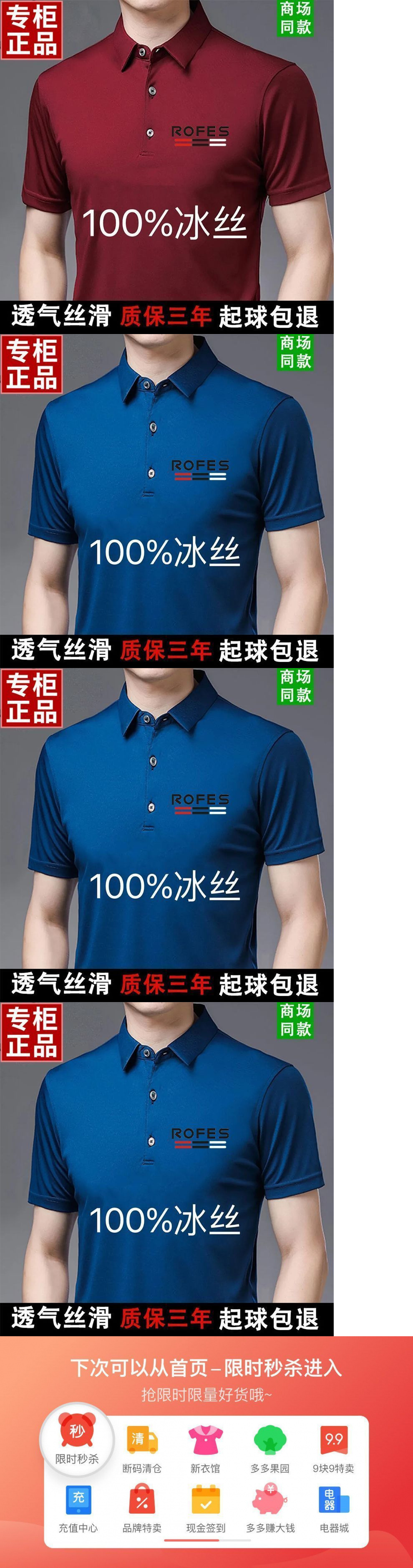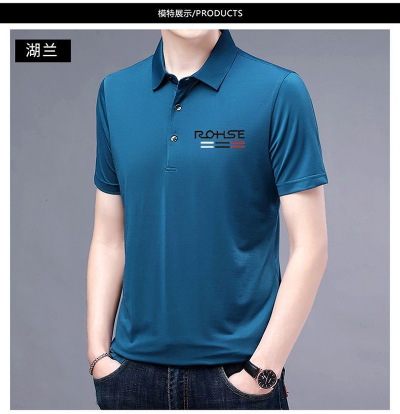 Распродажа. Мужская рубашка-поло из ледяного шелка с короткими рукавами и отложным воротником для отцов среднего и пожилого возраста. Высококачественная.