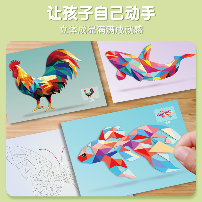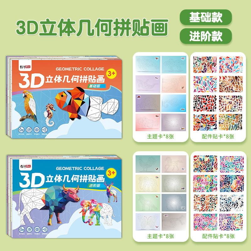 Детская 3D геометрическая ручная коллажная живопись, развивающие игрушки для малышей, наклейки «сделай сам», наклейки для раннего образования, просвещения, фокуса