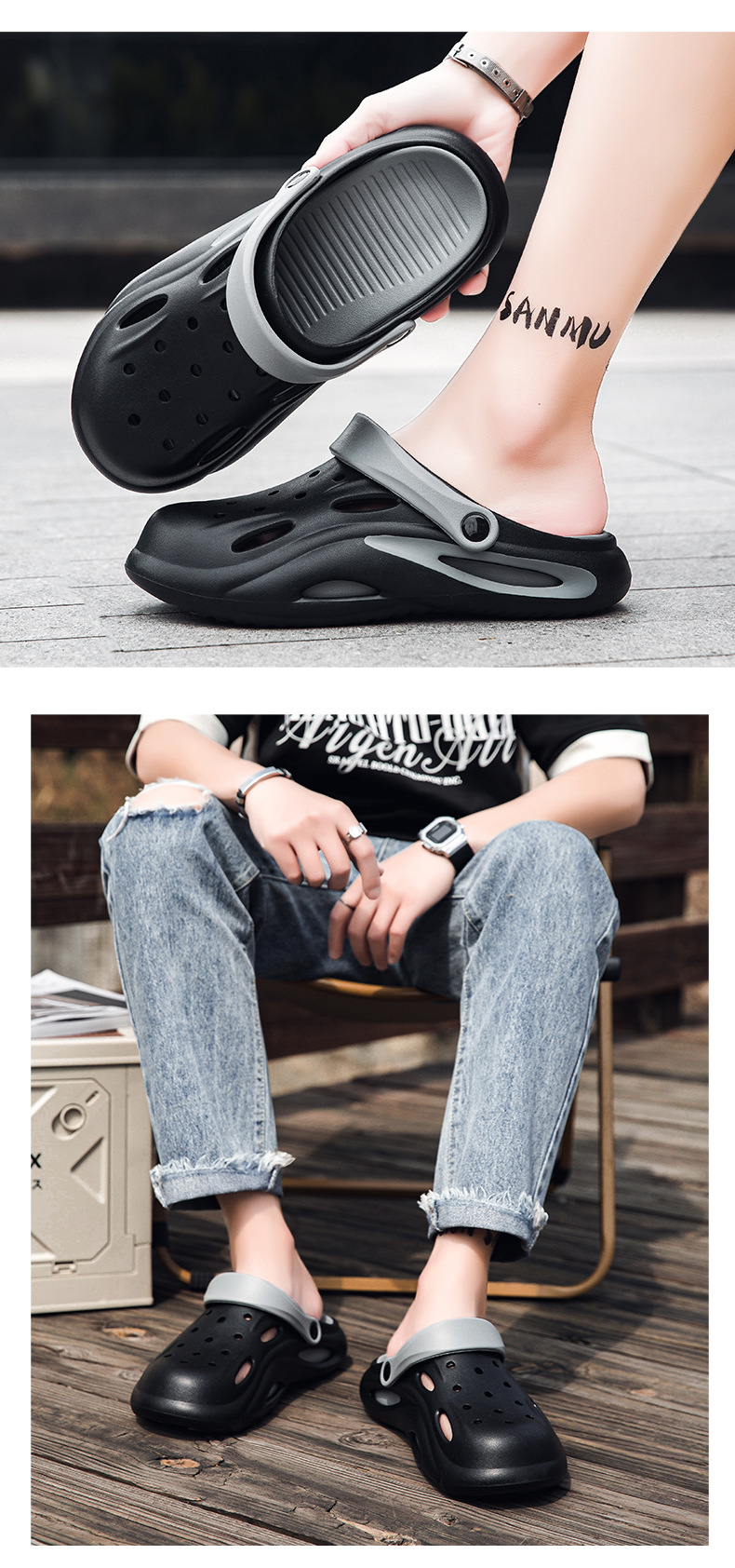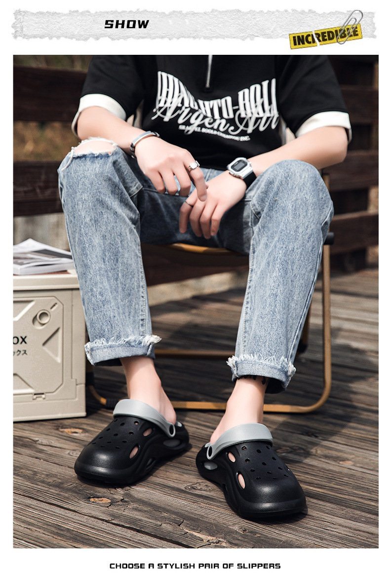 Мужские крокодиловые туфли 2025 Новые летние уличные тапочки с противоскользящей подошвой и толстой подошвой для вождения