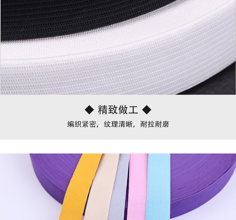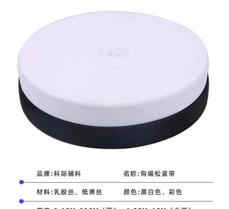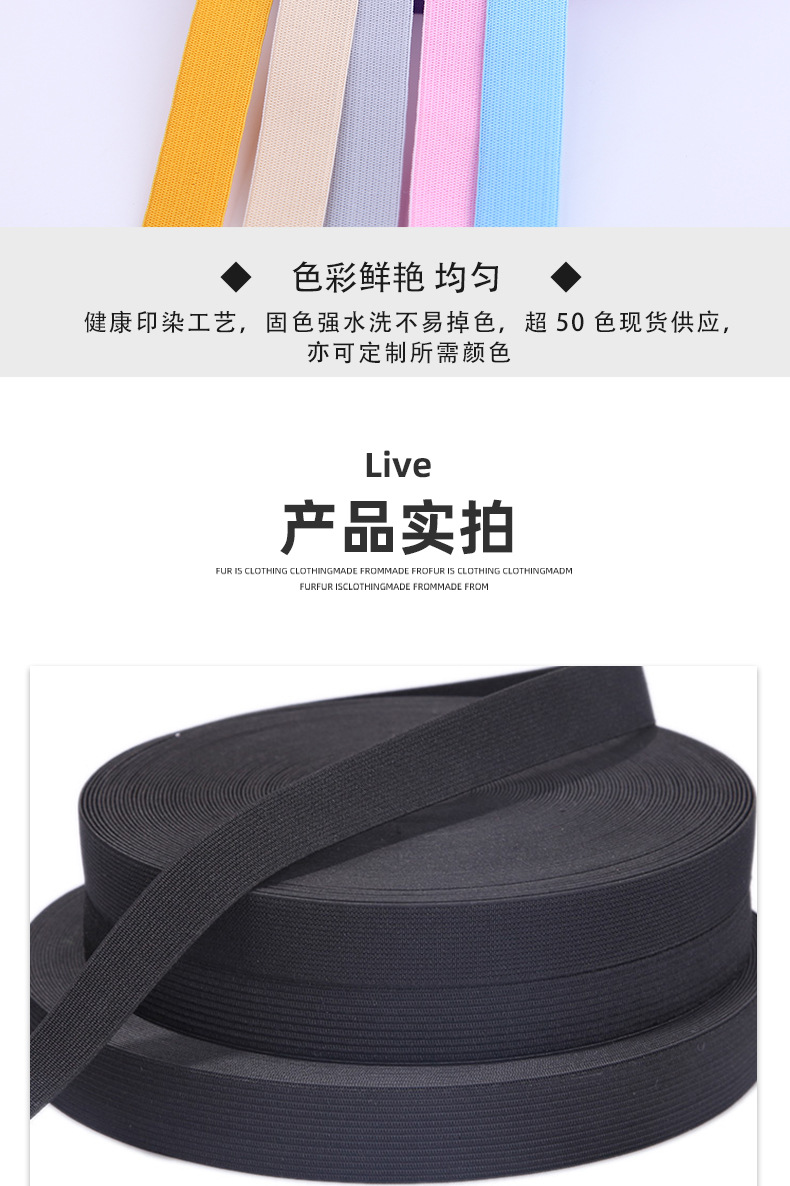 Оптовая продажа от производителя: черно-белая эластичная лента с крючковым краем, аксессуары, однотонная плоская широкая эластичная лента 2,5 см, огнестойкая эластичная лента для вязания крючком.
