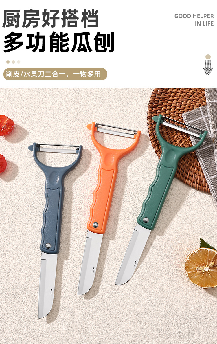 Многофункциональная овощечистка из нержавеющей стали с ножом, комбинация из овощечистки и слайсера, многофункциональный небольшой кухонный инструмент для домашнего использования.