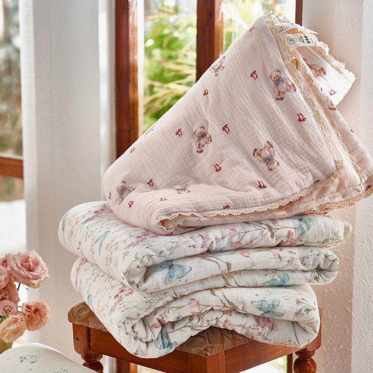 Летнее одеяло из хлопковой марли в пасторальном стиле, комплект из четырех предметов, 20% соевого волокна, одеяло с небольшим цветочным принтом, мягкое одеяло с кондиционером