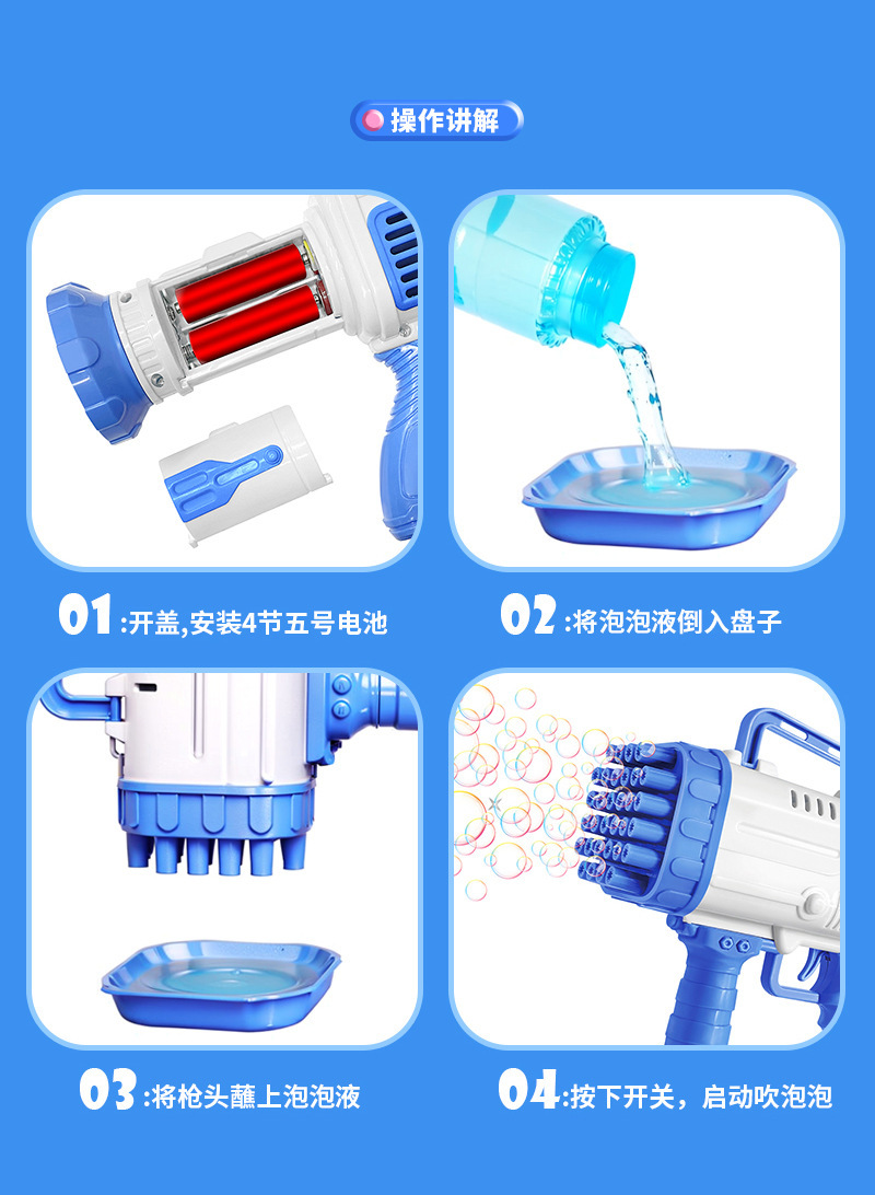 Инфлюенсер TikTok выбирает 32-х дырочную ракетницу-пузырьковую машину, ручной детский электрический пузырьковый пистолет, уличную игрушку оптом