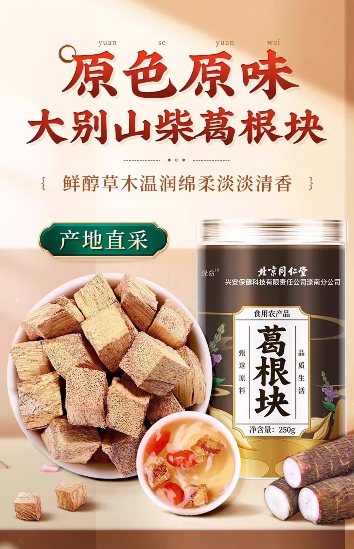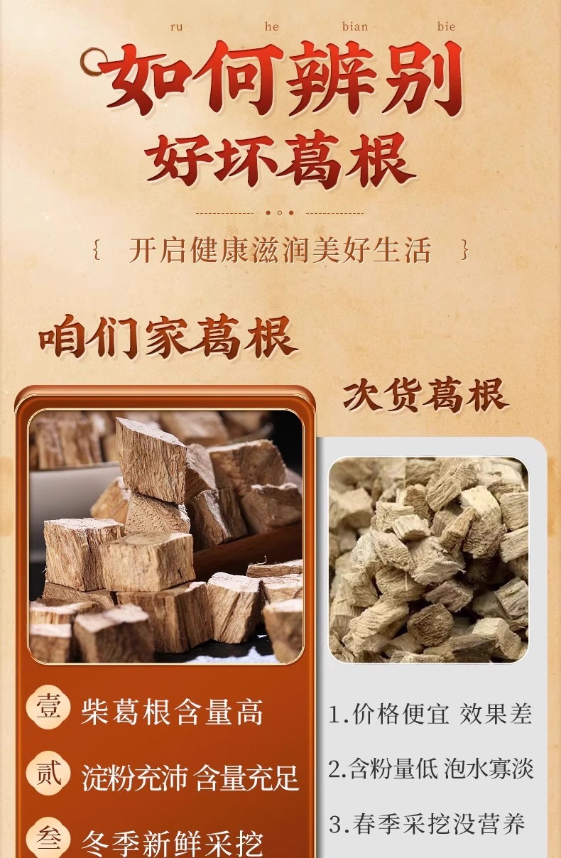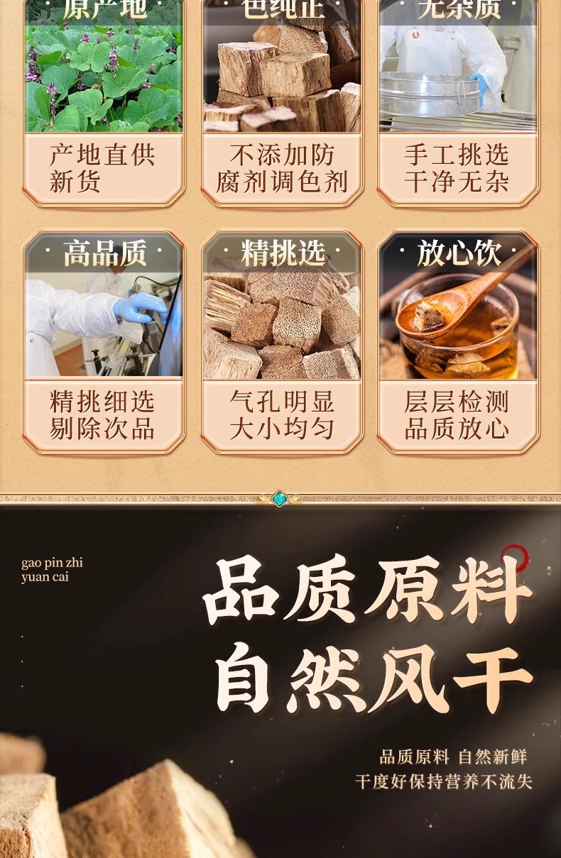 Пекин Тонгрентанг Пуэрария лобата Китайские лекарственные травы, настоящие специальные сорта, 500 г свежих диких ломтиков Пуэрарии лобата, замоченных в воде для здравоохранения
