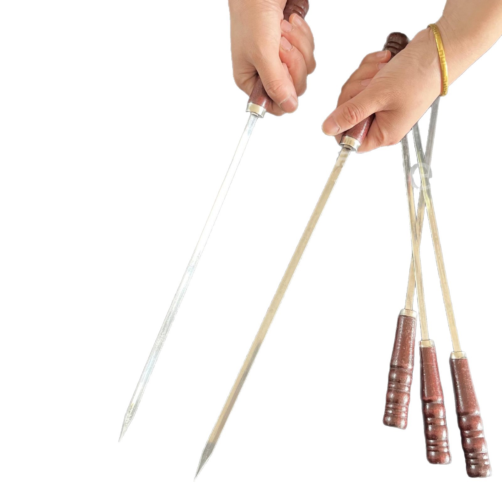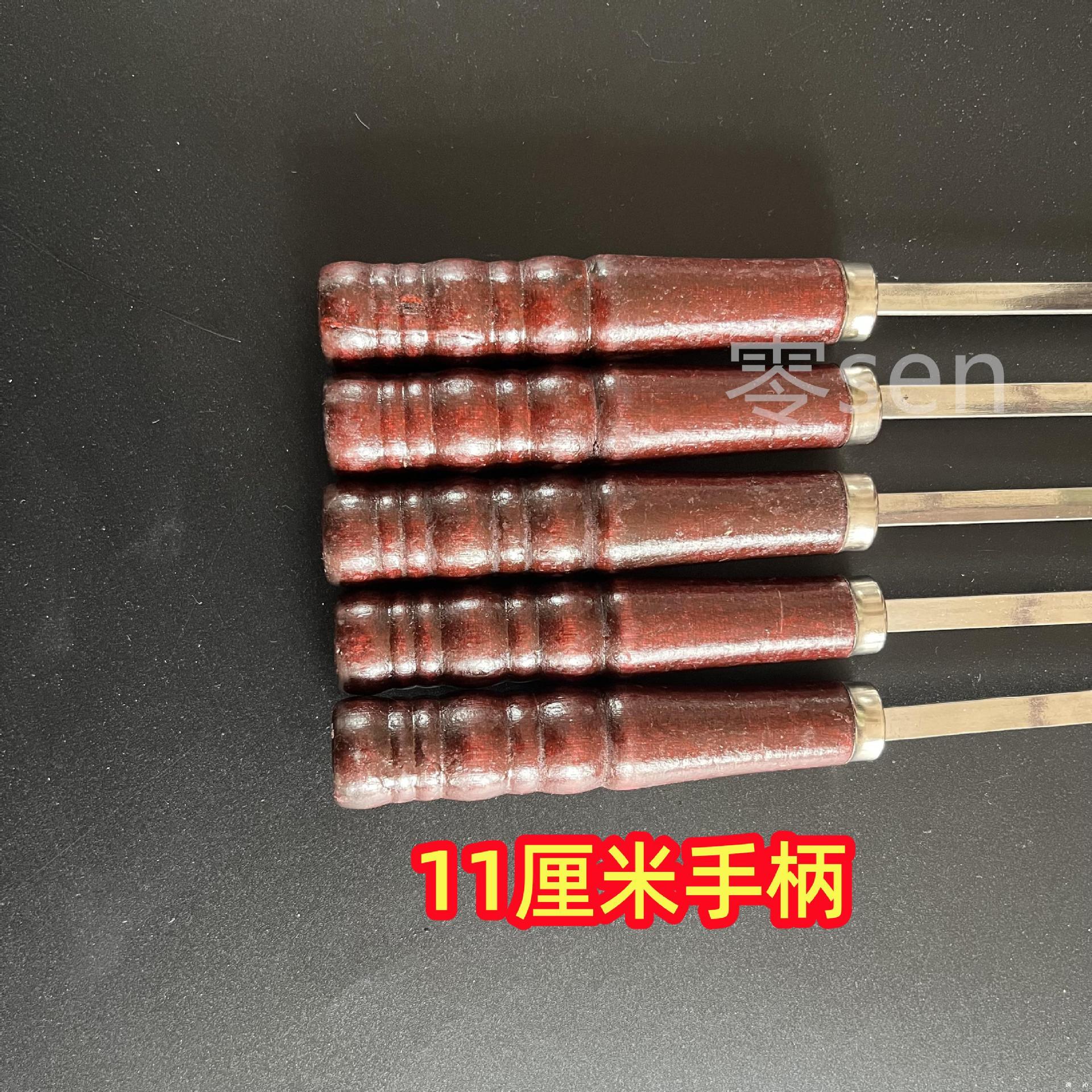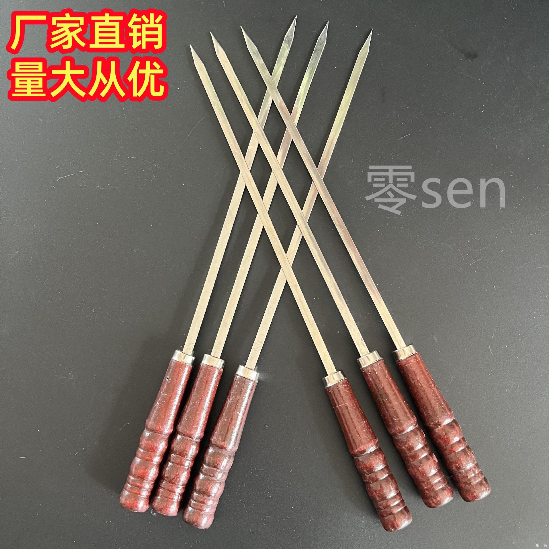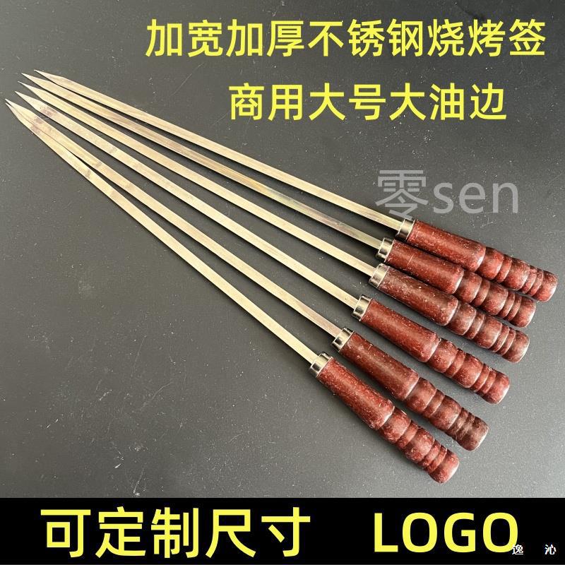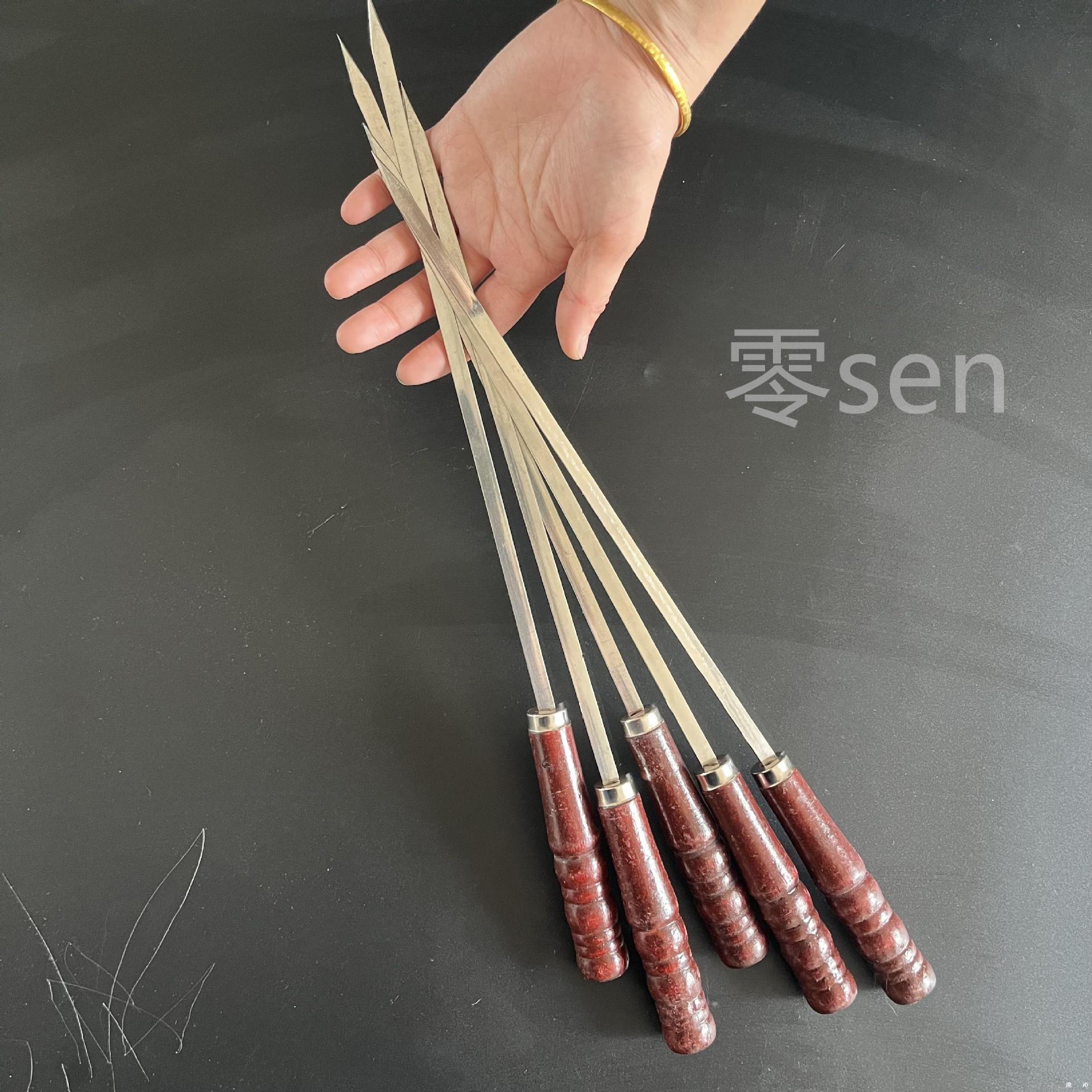 Коммерческие уличные шампуры для барбекю из нержавеющей стали с широкими и утолщенными масляными краями, плоские шампуры с деревянной ручкой для баранины.