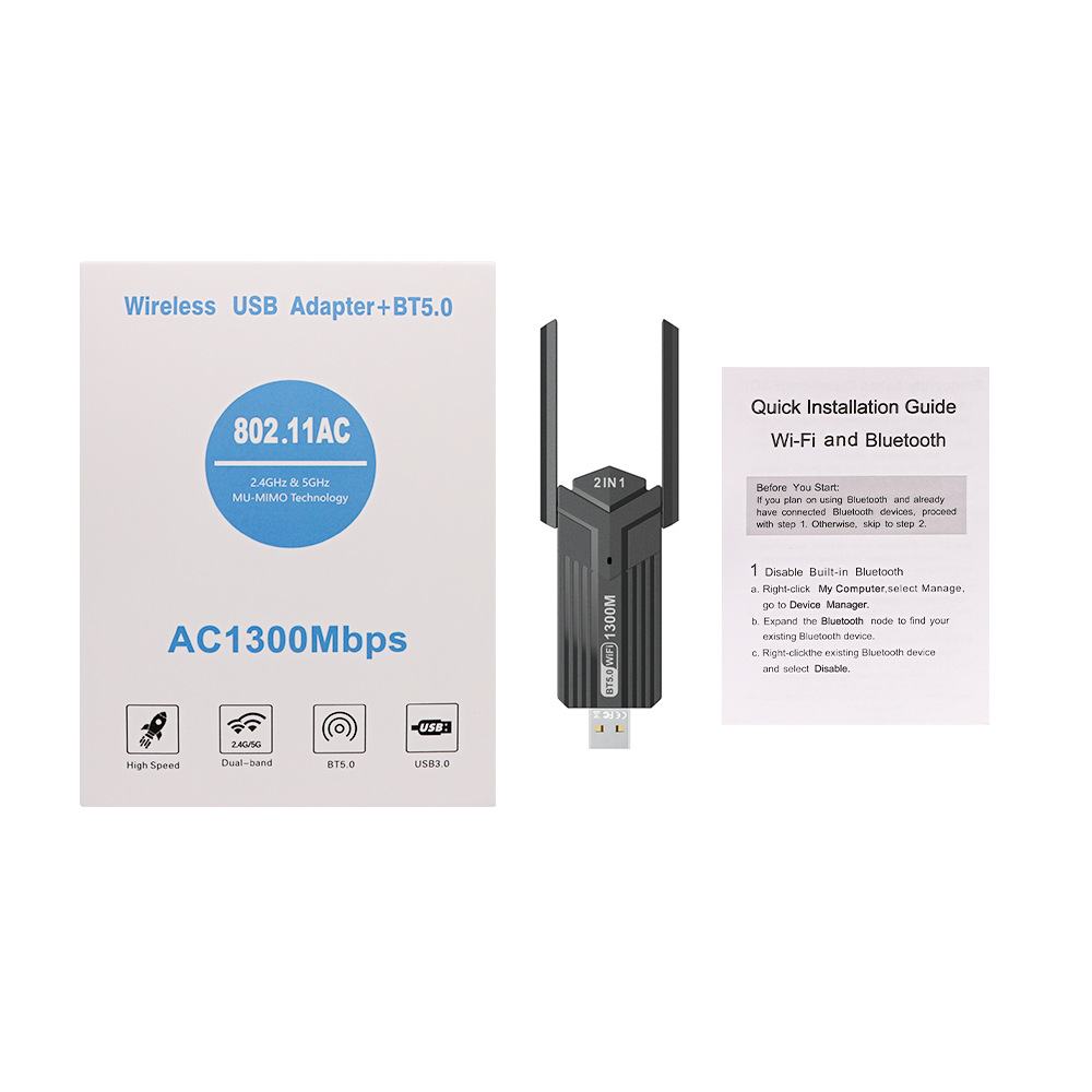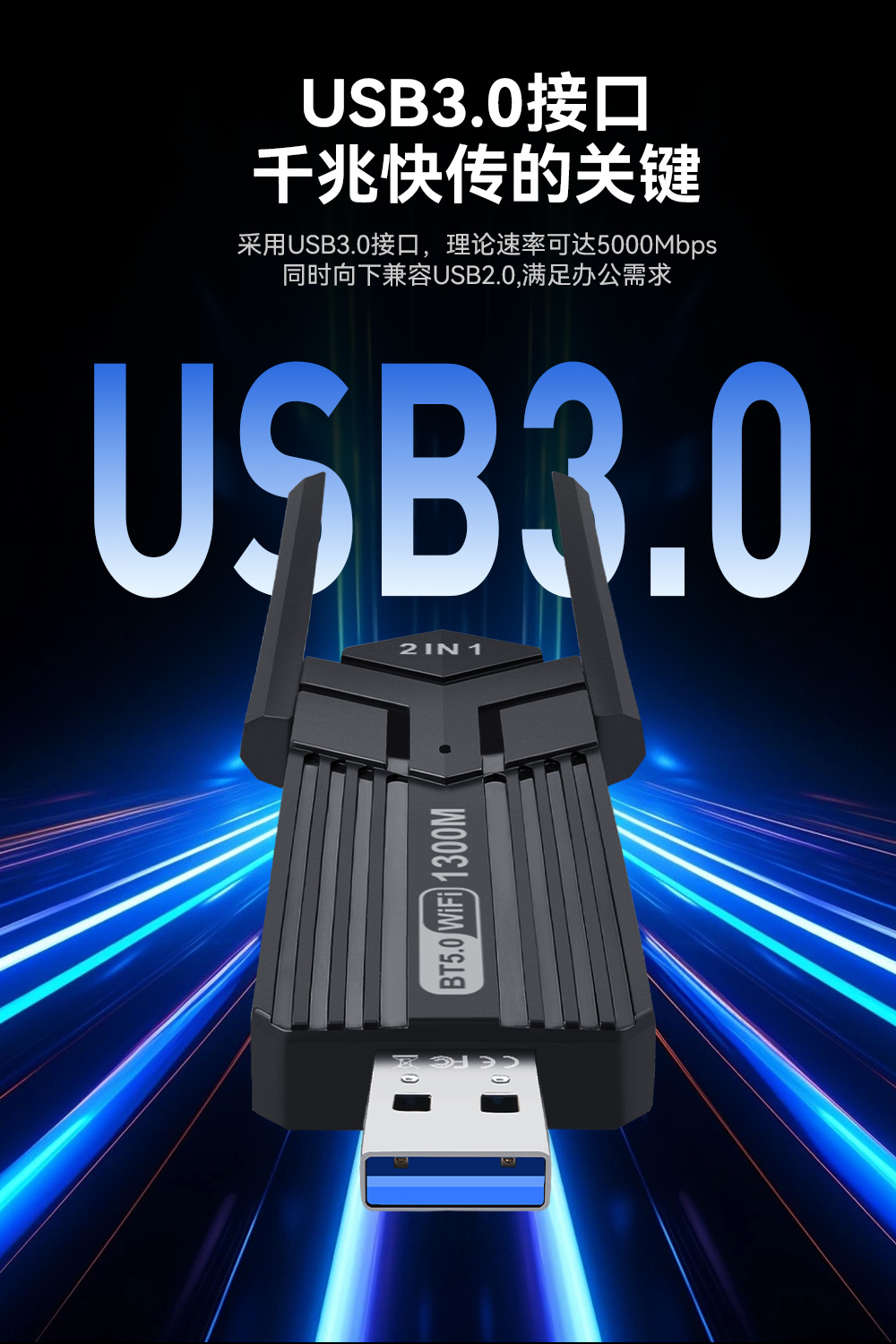Двухдиапазонная высокоскоростная сетевая карта USB3.0-1300M+Bluetooth 5.0