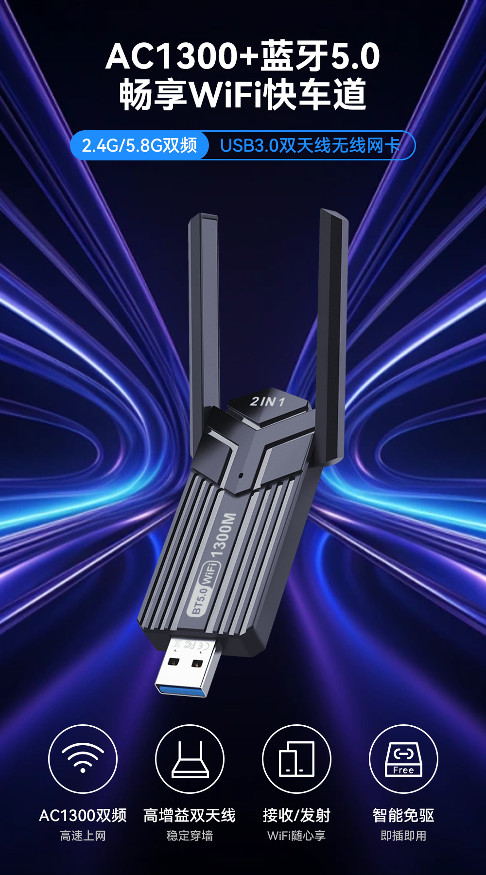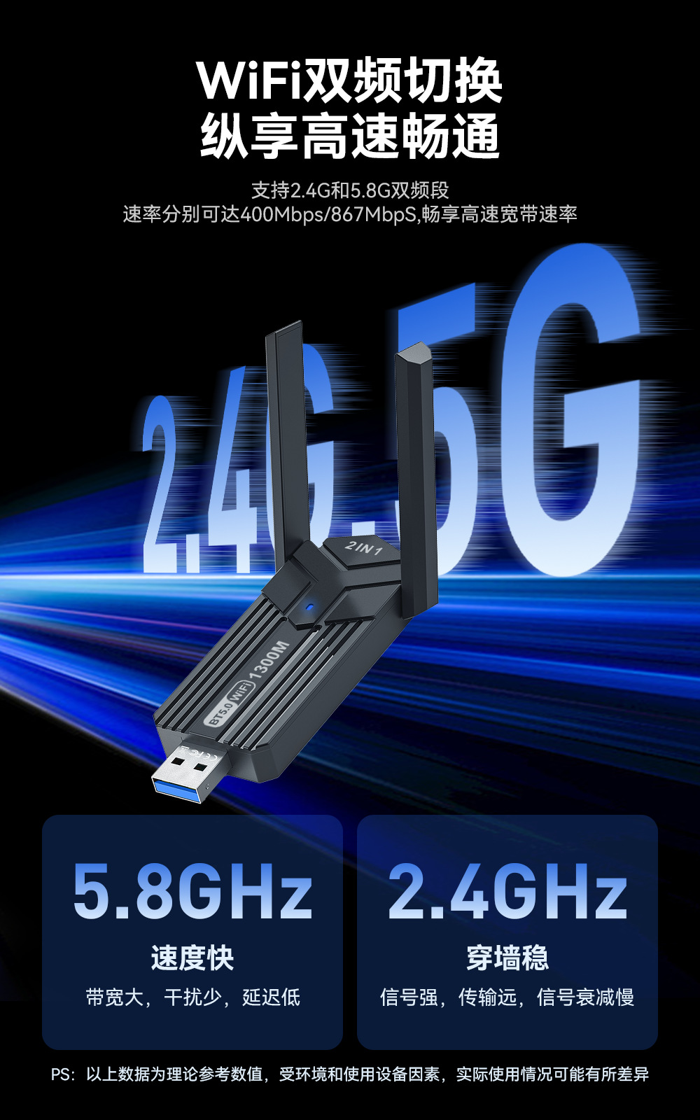 品名:AC1300M+蓝牙5.0双频无线网卡