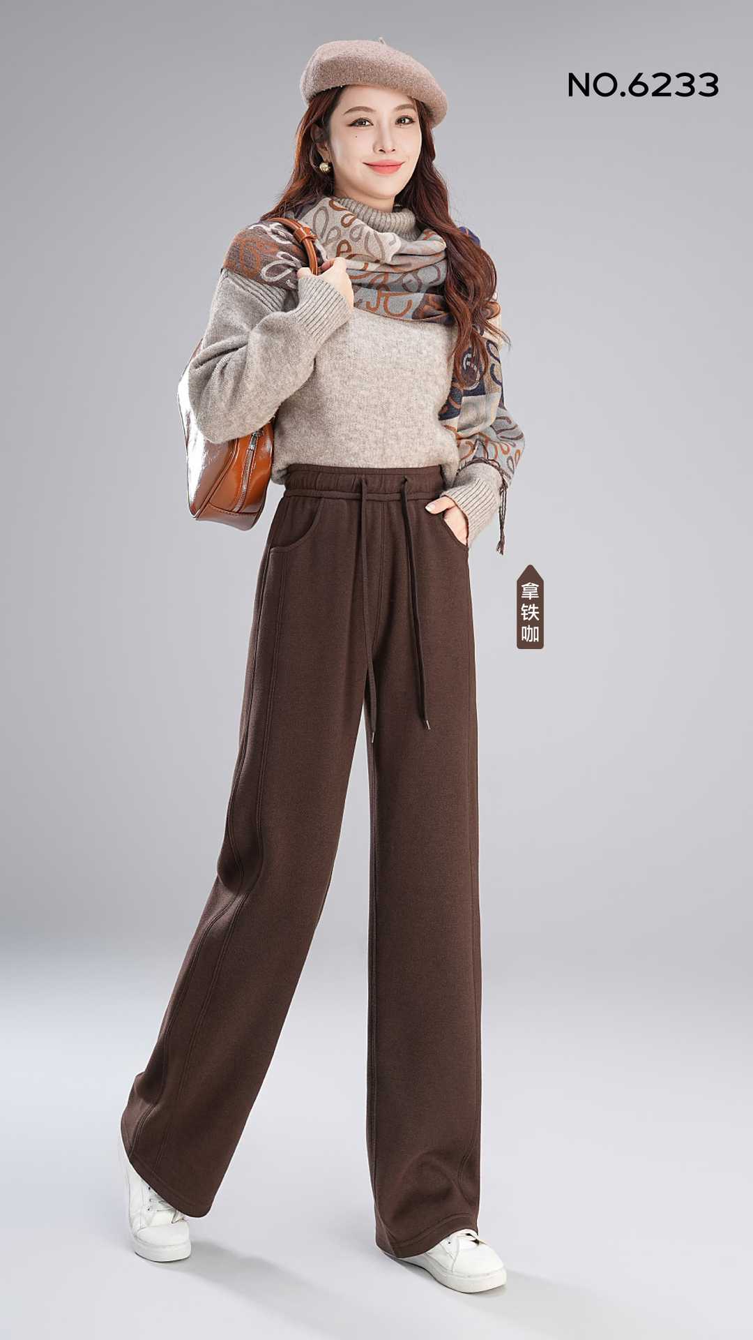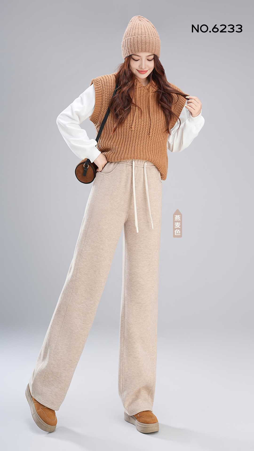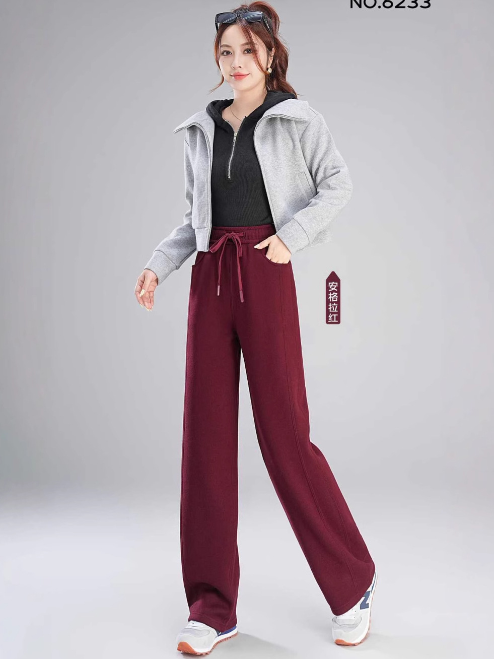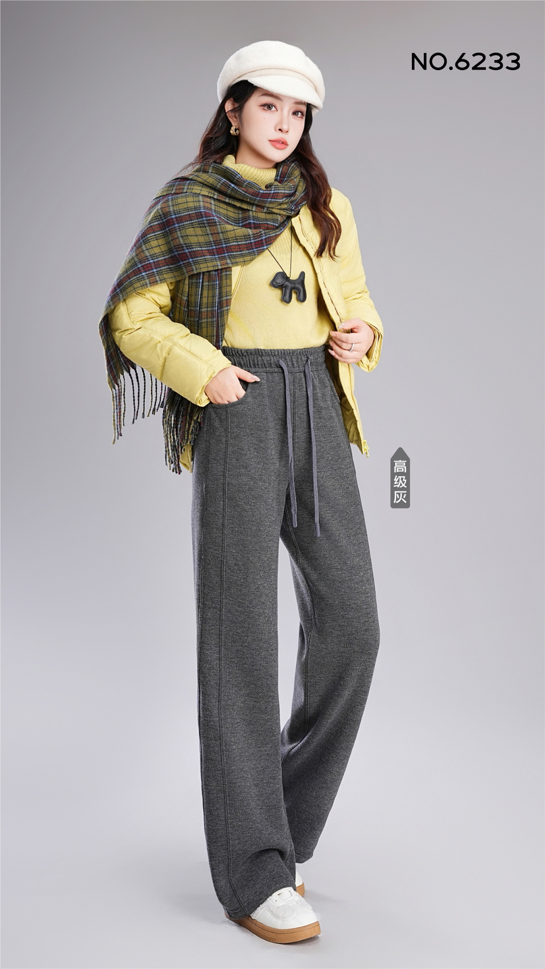 Брюки из шелка и гусиного пуха, с эффектом драпировки, прямого кроя, модель 6233, серые, осенне-зимние, утолщенные, широкие штанины, стройнящие и свободного кроя, для женщин.