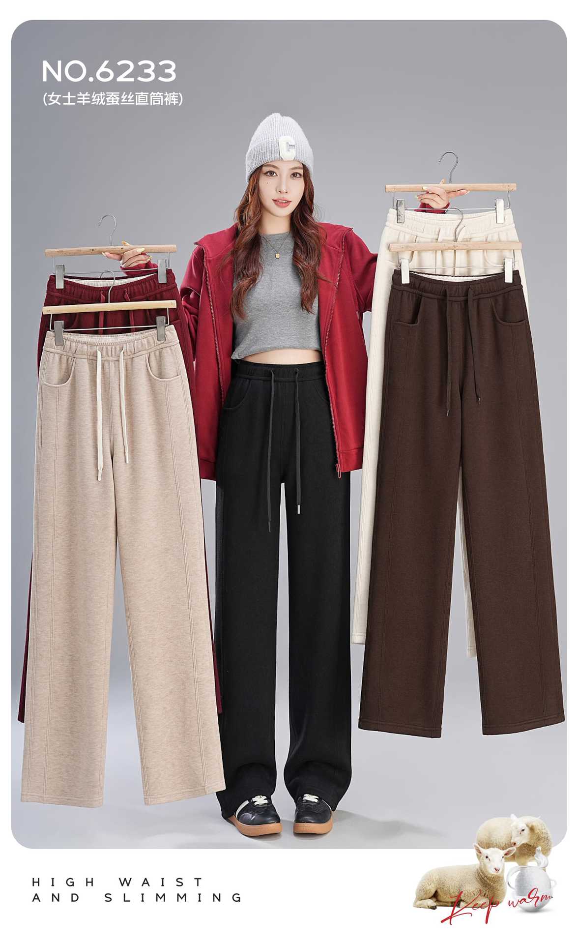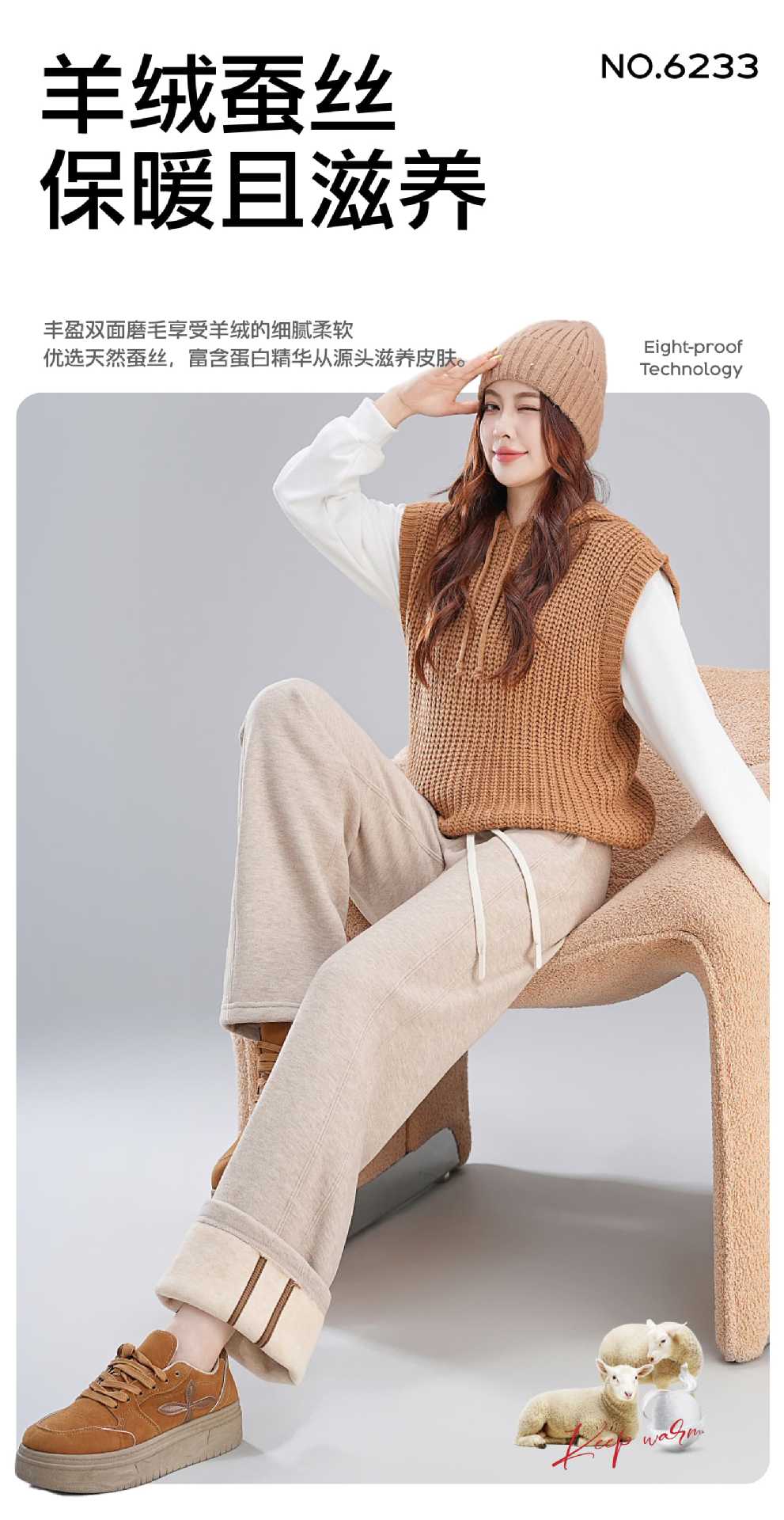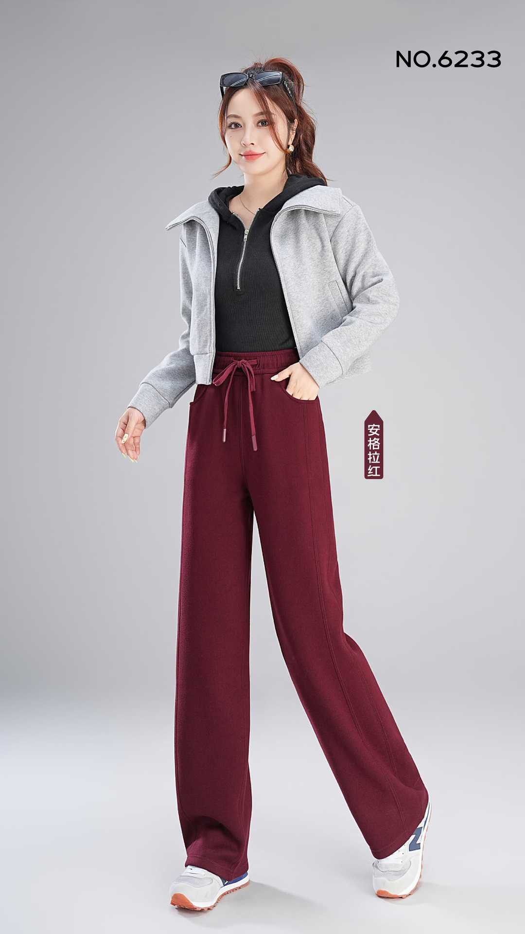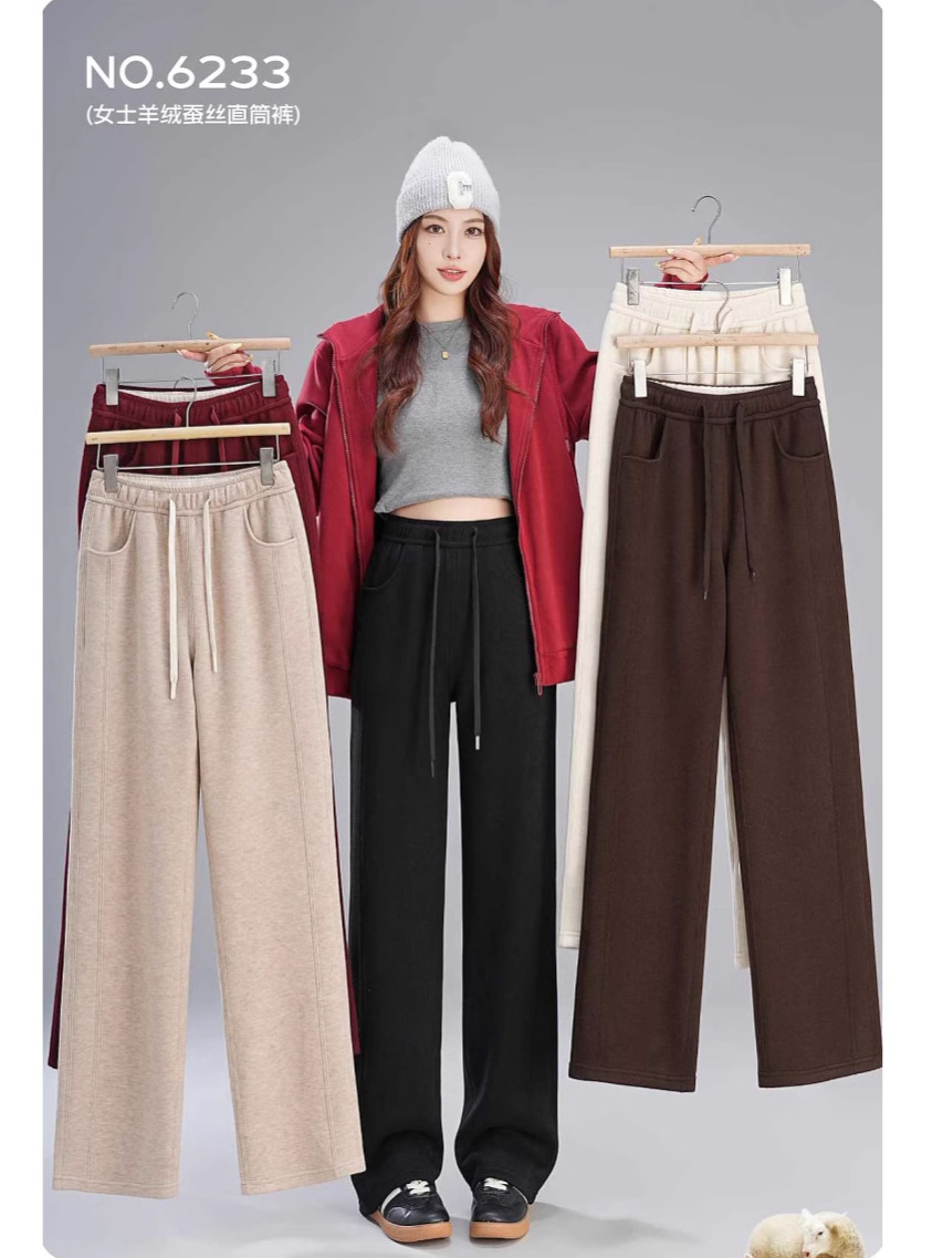 Брюки из шелка и гусиного пуха, с эффектом драпировки, прямого кроя, модель 6233, серые, осенне-зимние, утолщенные, широкие штанины, стройнящие и свободного кроя, для женщин.