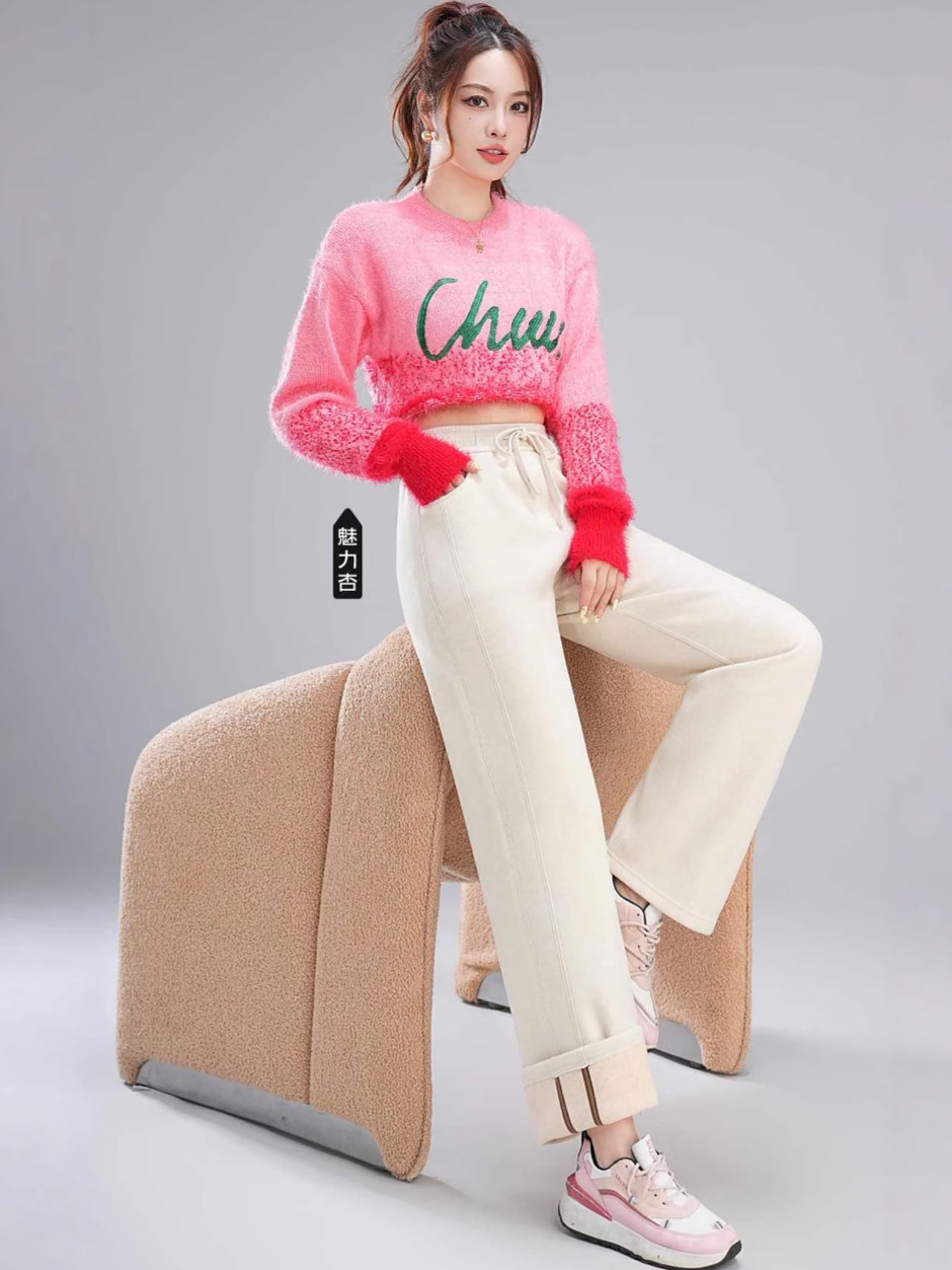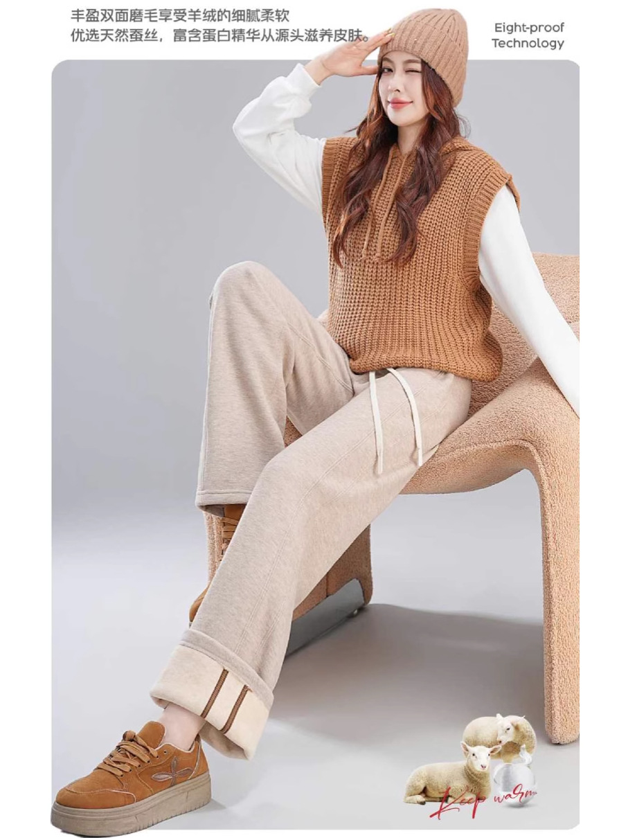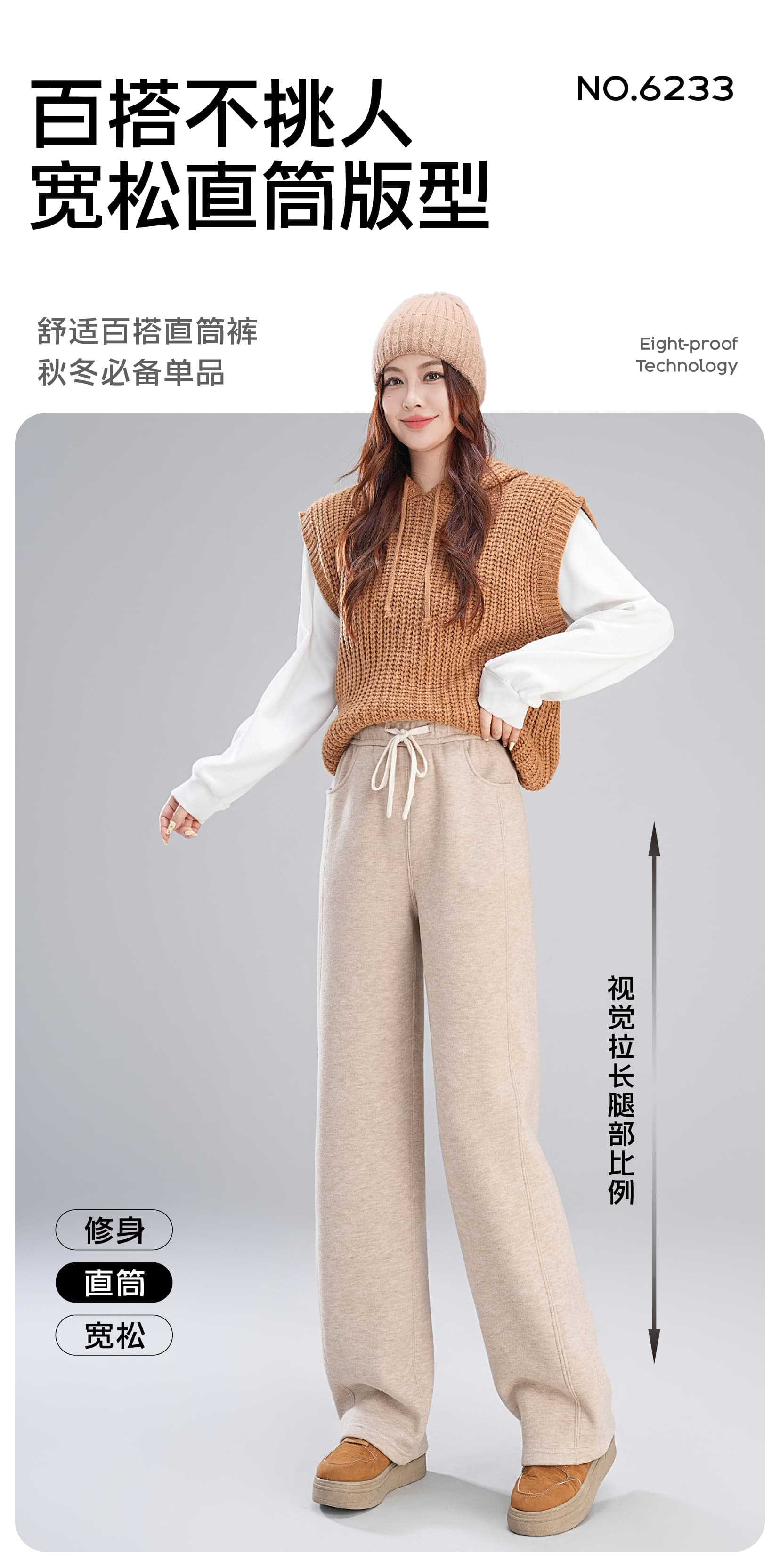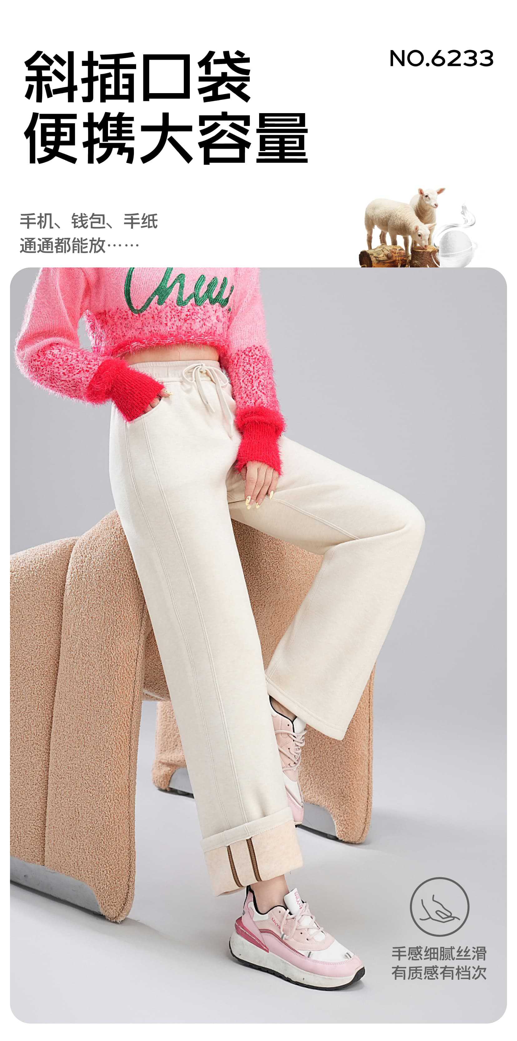 Брюки из шелка и гусиного пуха, с эффектом драпировки, прямого кроя, модель 6233, серые, осенне-зимние, утолщенные, широкие штанины, стройнящие и свободного кроя, для женщин.