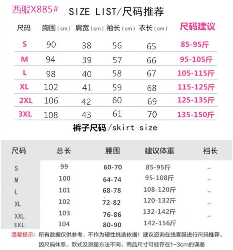 S; M; L; XL; XXL; XXXL