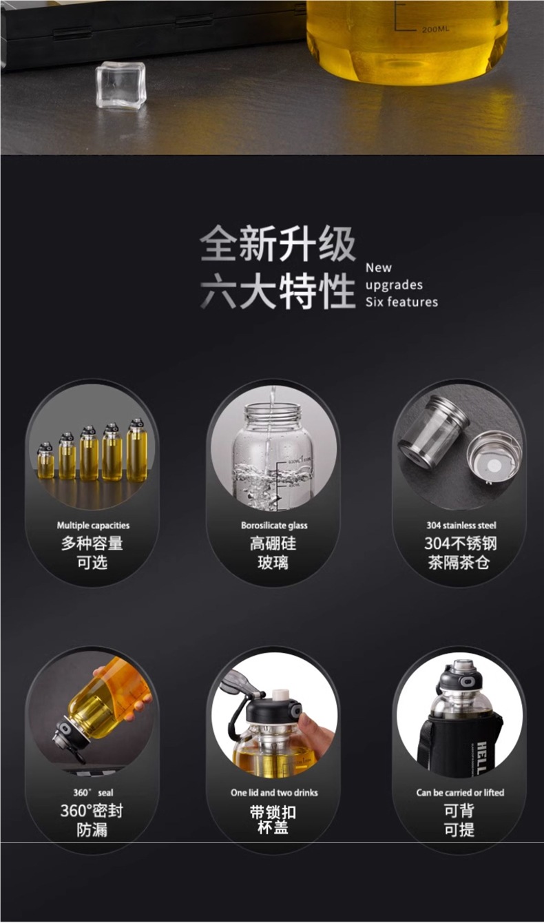 Большая стеклянная чашка для чая с разделением воды, новая мужская кружка для воды, летняя кружка
