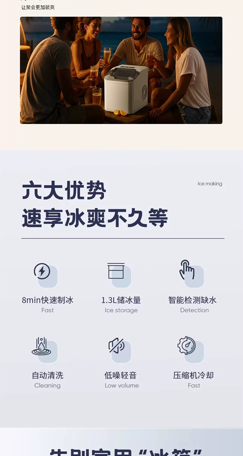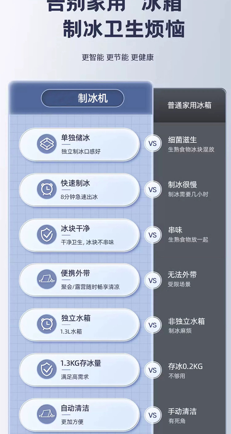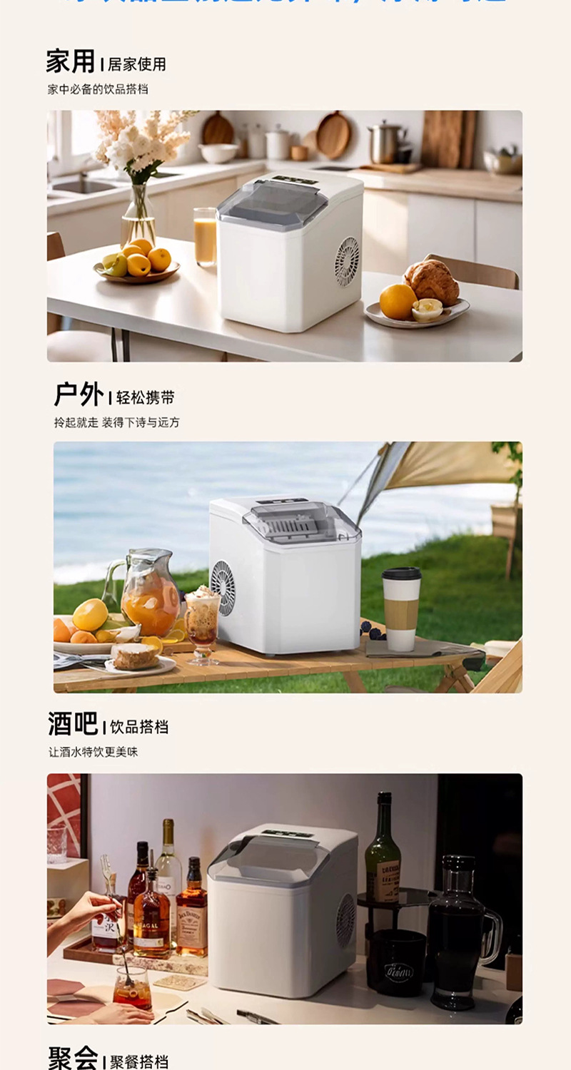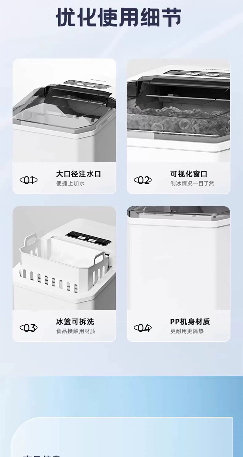 (Базовая модель) Приготовление льда в один клик, быстрое приготовление льда за 6 минут.; (Модель Luxury) Автоматическая очистка, регулируемый размер пули льда.; (Модель премиум-класса) Теплоизоляция, инфракрасное обнаружение полного льда