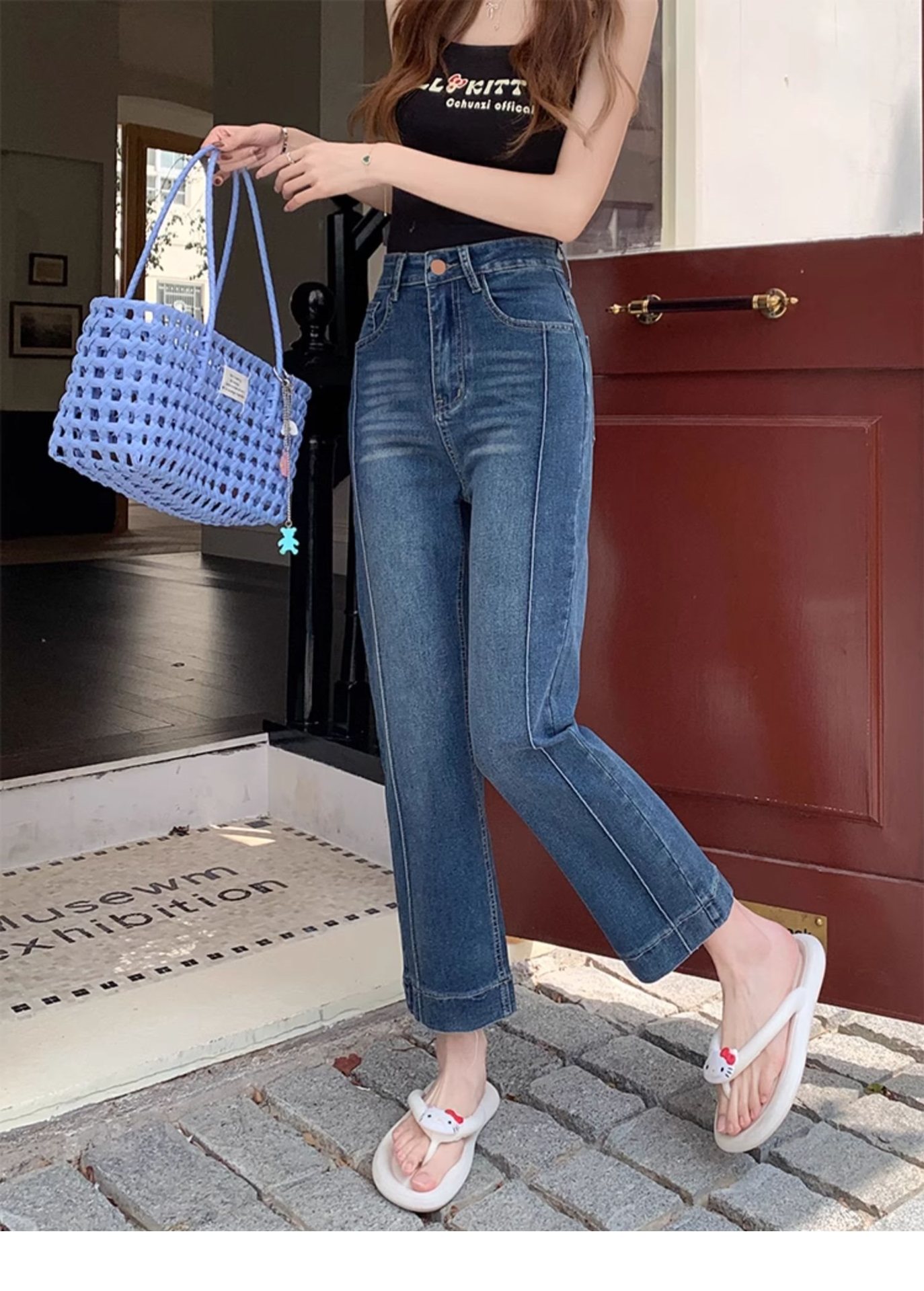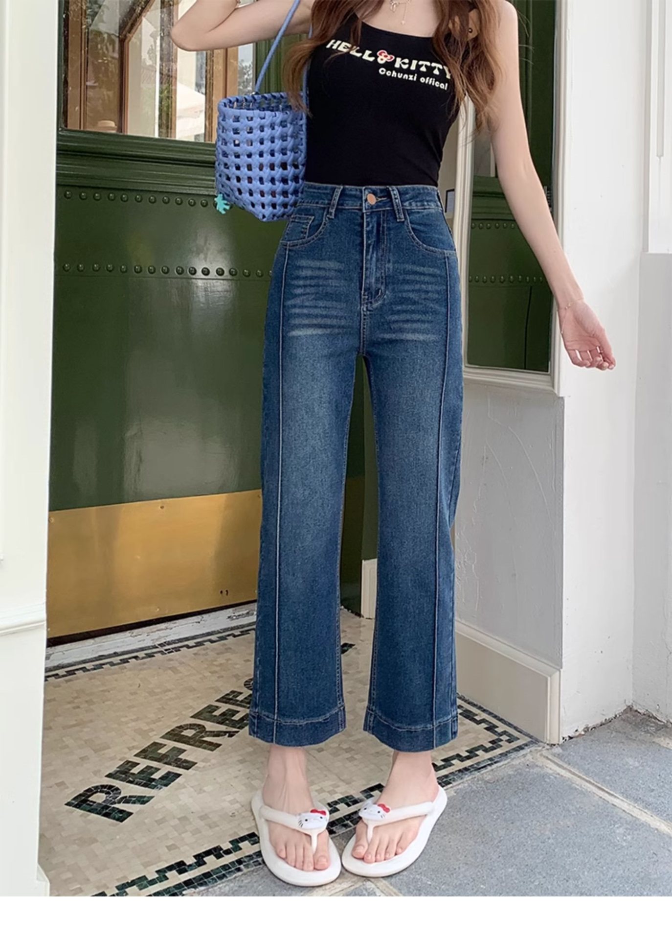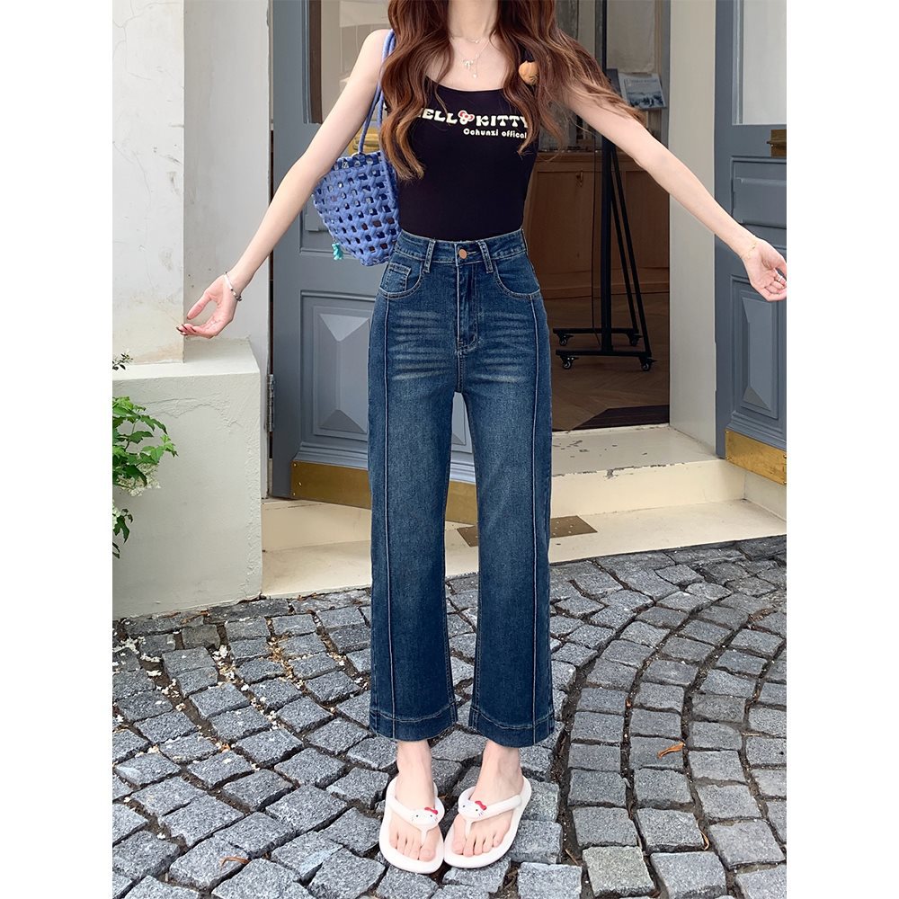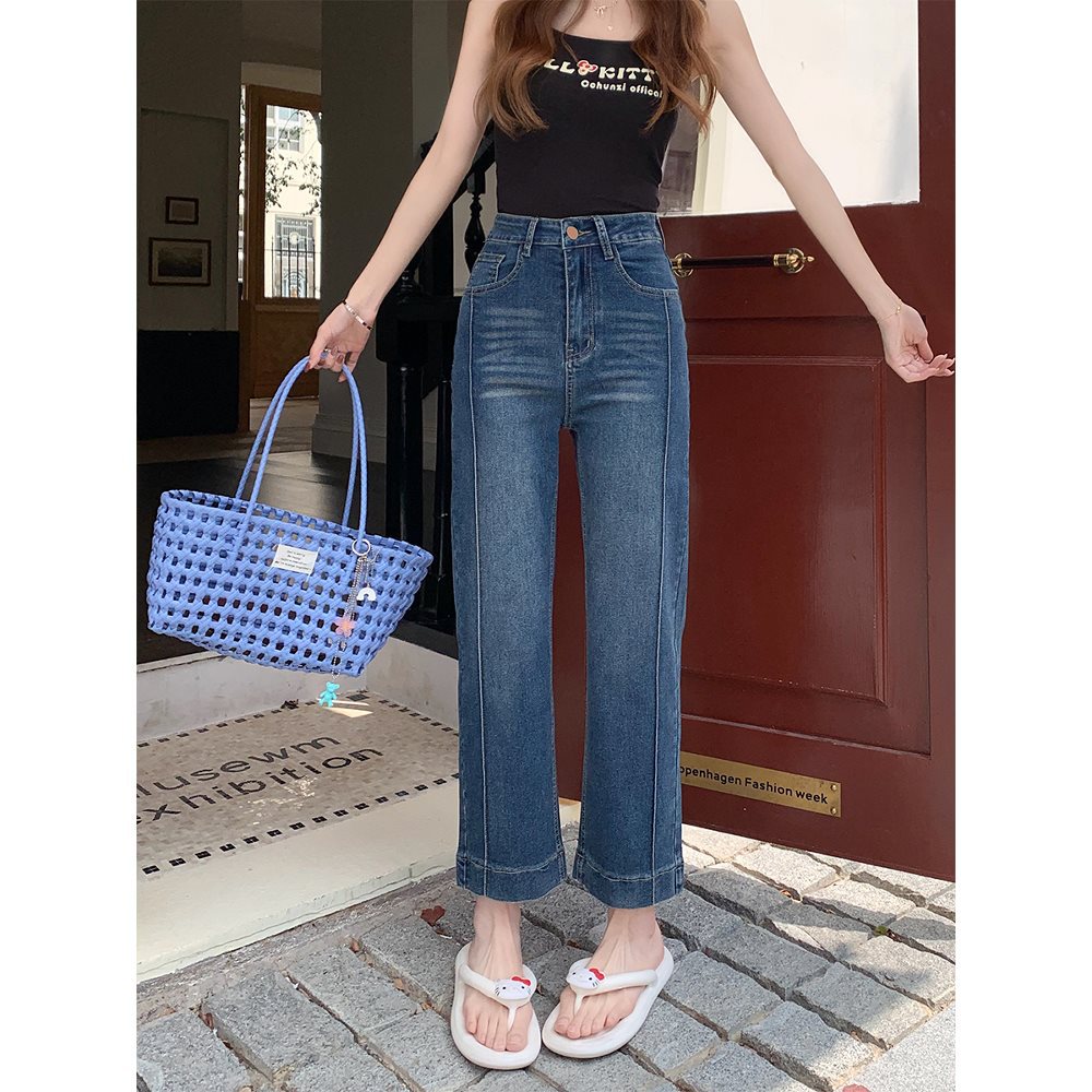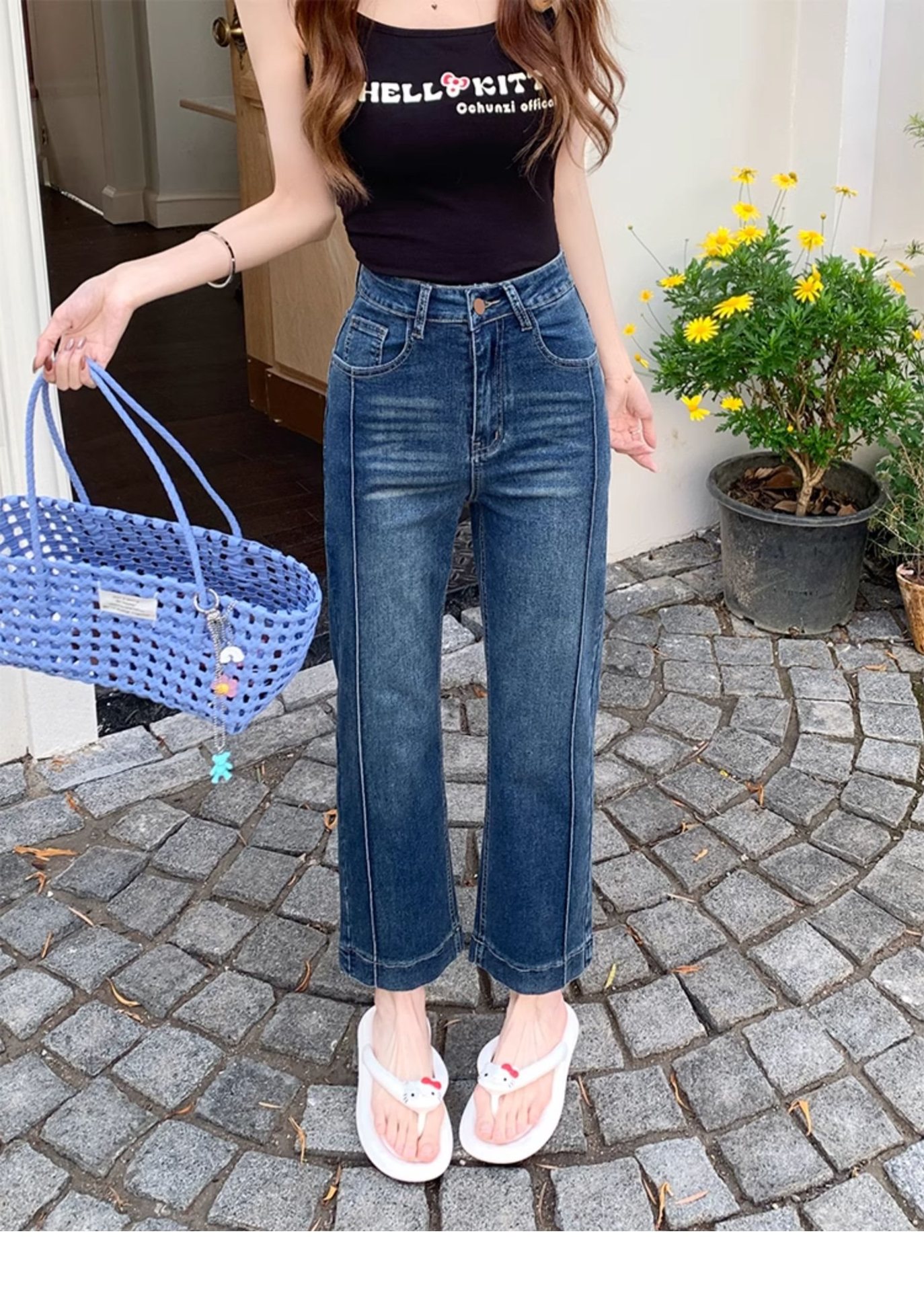 Эластичные укороченные джинсы больших размеров для женщин, лето, фигура груши, свободные утягивающие прямые широкие брюки с высокой талией.