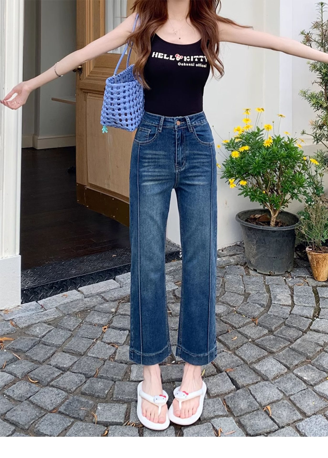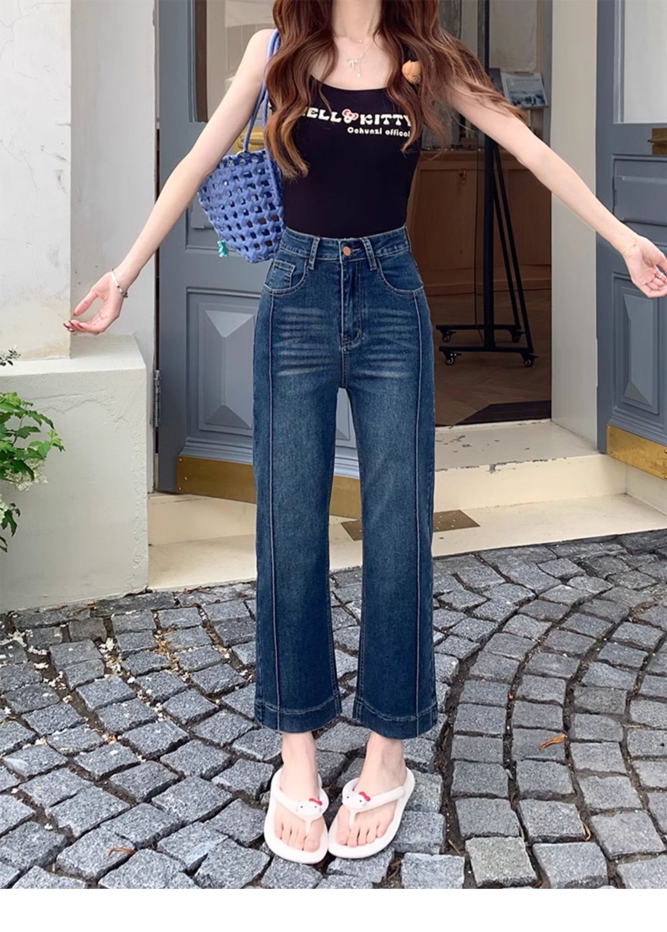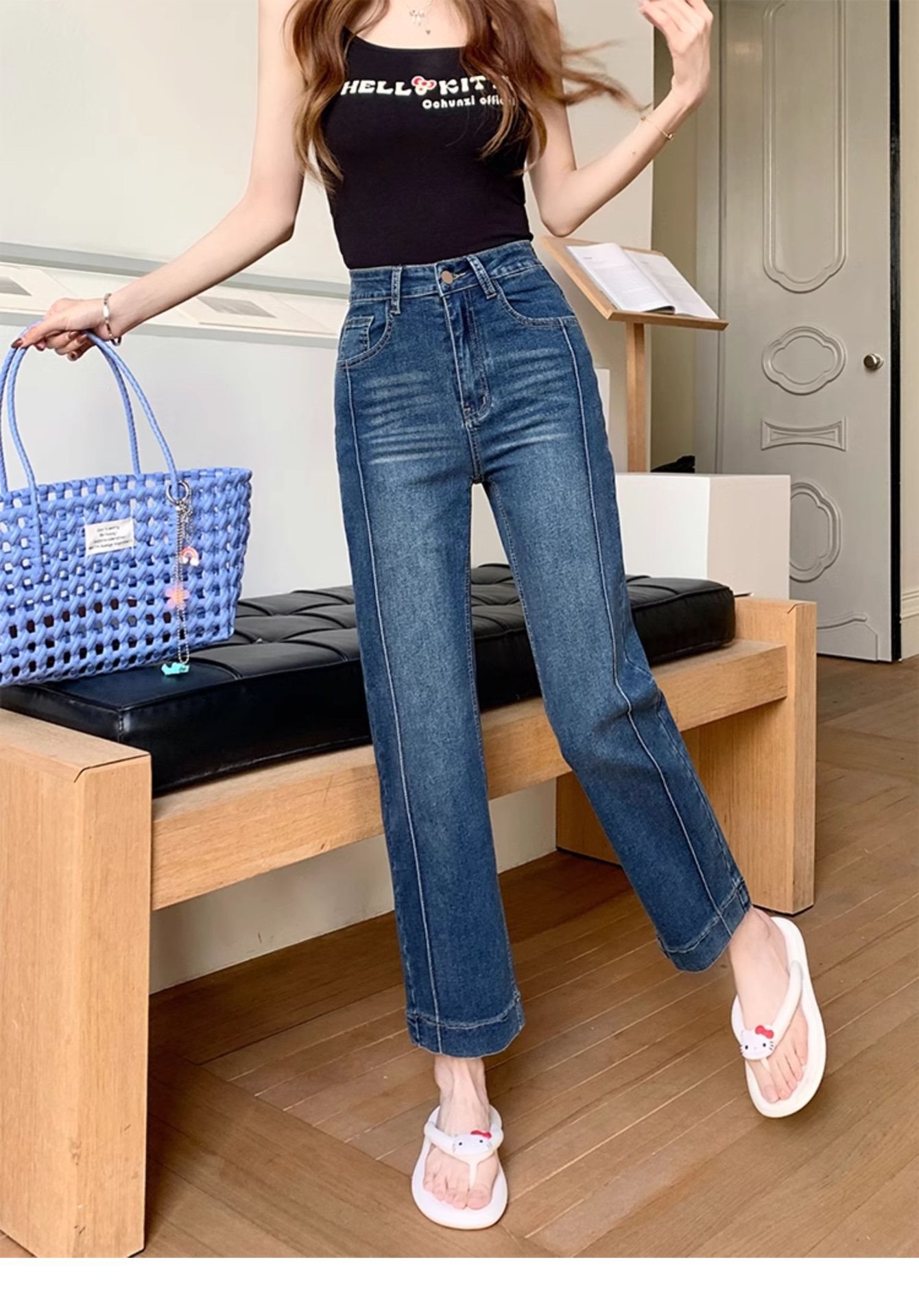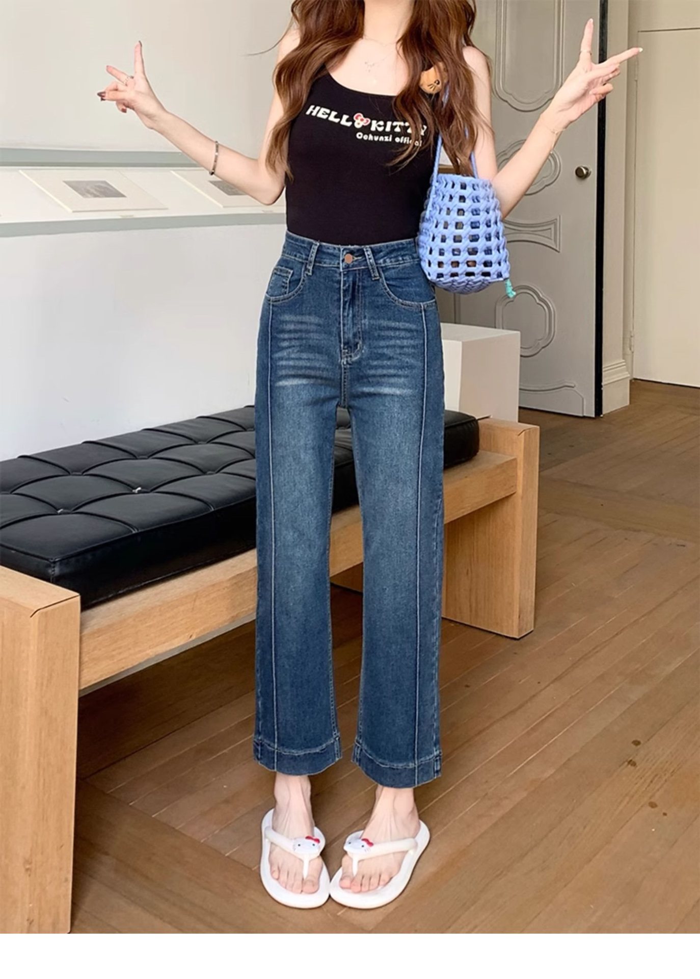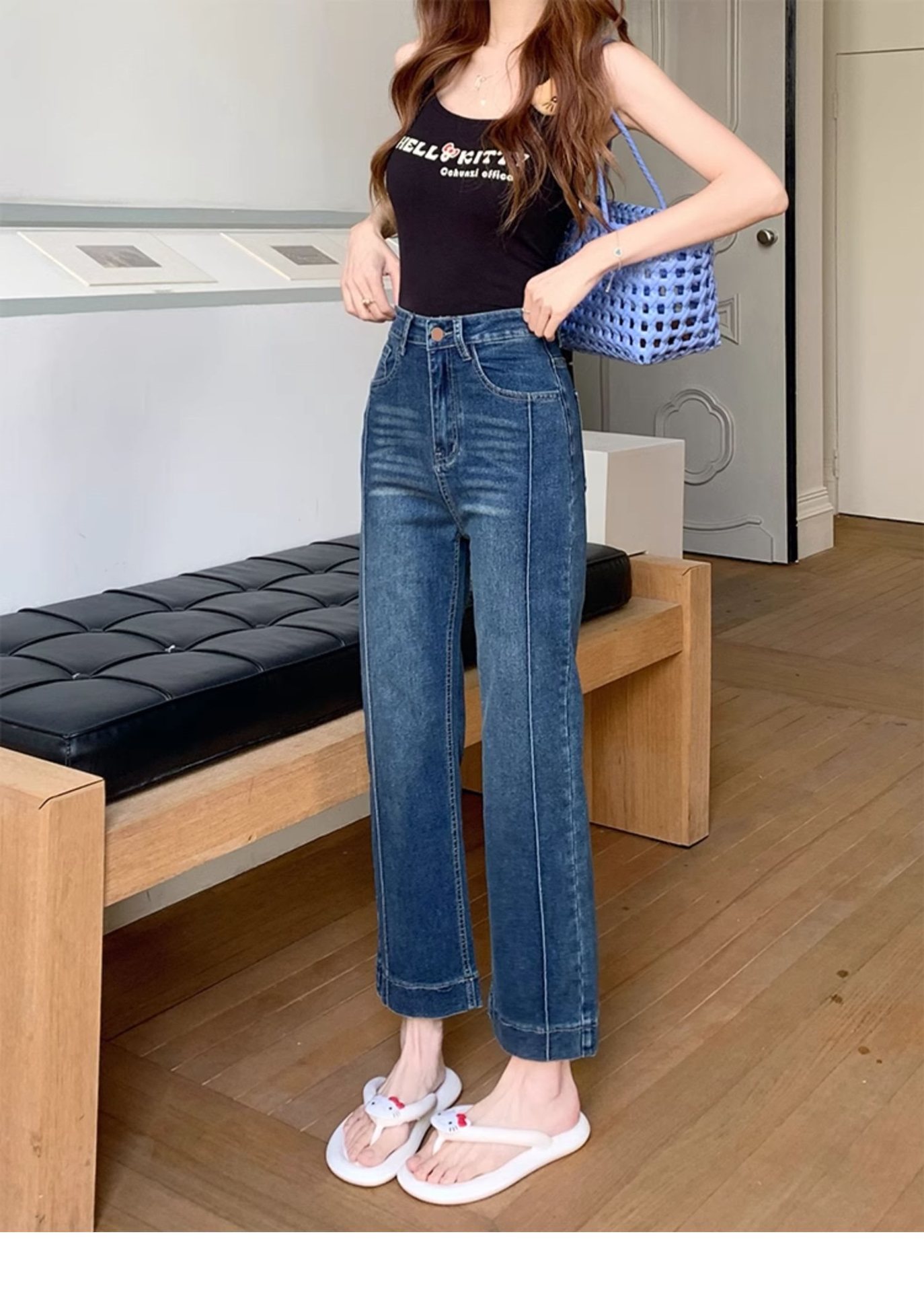 Эластичные укороченные джинсы больших размеров для женщин, лето, фигура груши, свободные утягивающие прямые широкие брюки с высокой талией.
