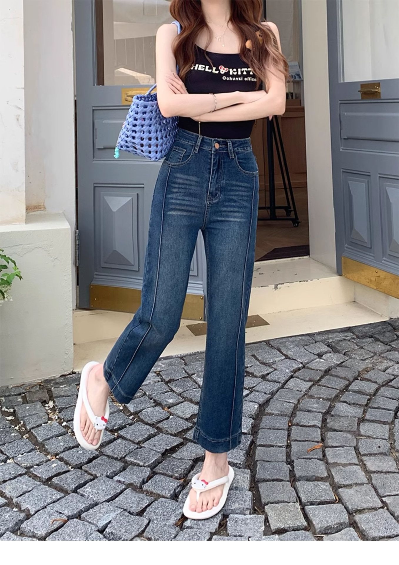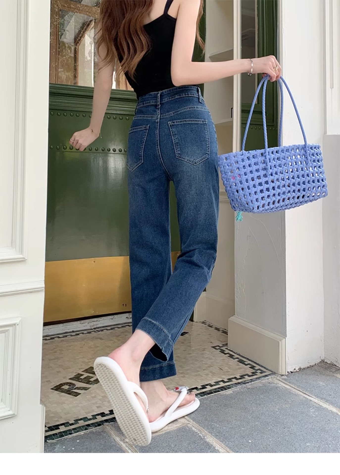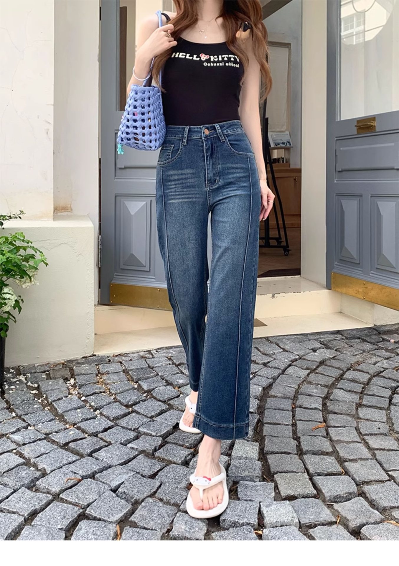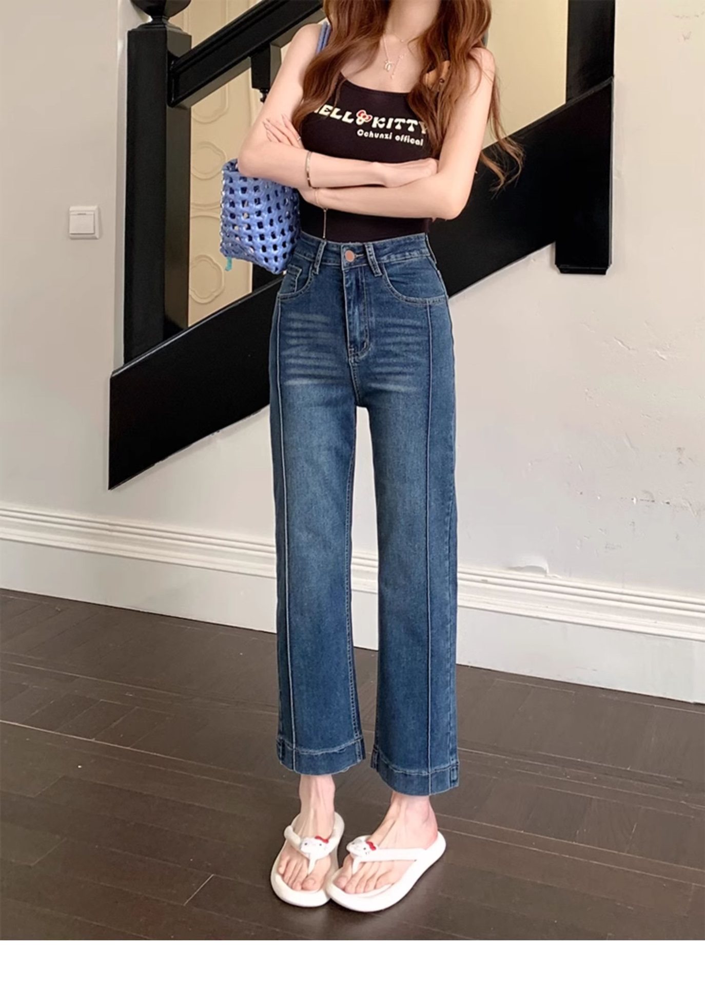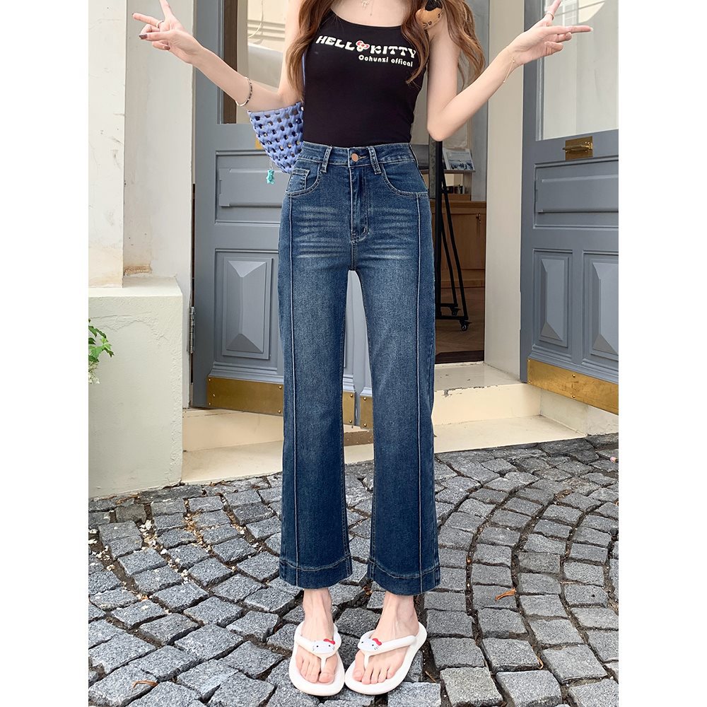 Эластичные укороченные джинсы больших размеров для женщин, лето, фигура груши, свободные утягивающие прямые широкие брюки с высокой талией.